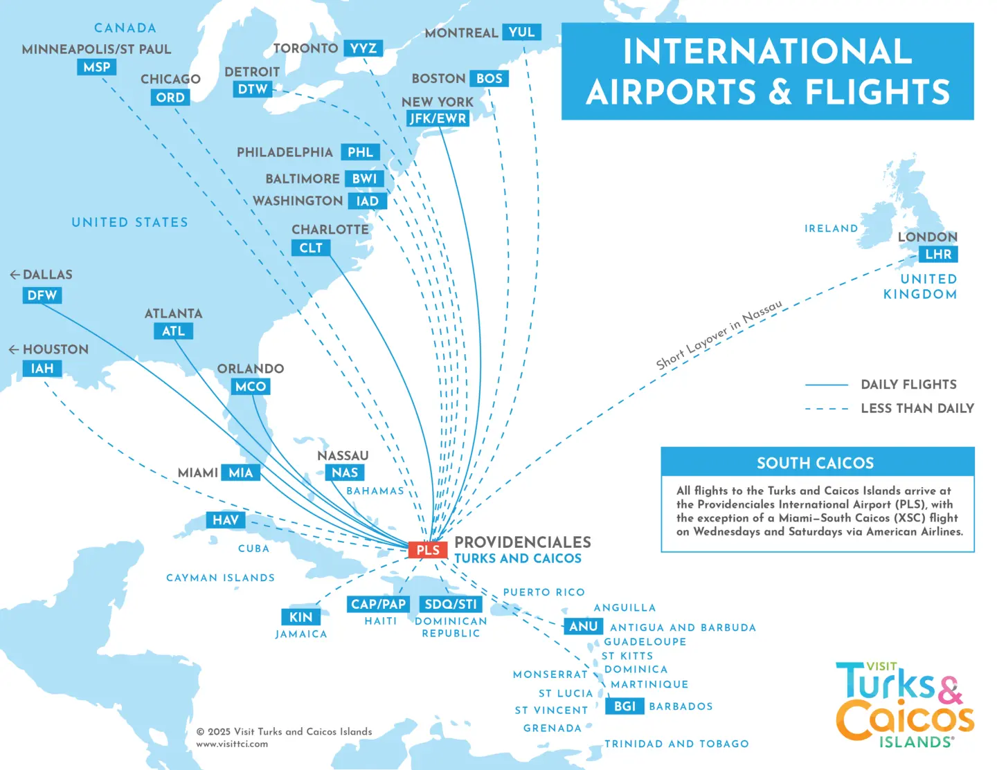 One of the most appealing aspects of Turks & Caicos is how simple it is to get there, especially from the United States. Providenciales is served by direct flights from major U.S. gateways including New York, Boston, Miami, Charlotte, Dallas, Atlanta, and Chicago, among others.