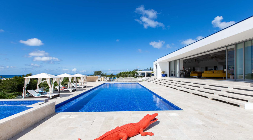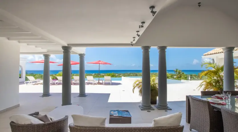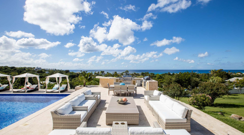 Exquisite villa perched on the hillside, a 3-min drive from Orient Bay beach