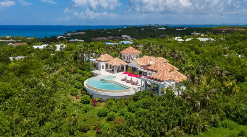 A 13-bedroom villa that sits high on the cliff in Terres Basses on 5 acres