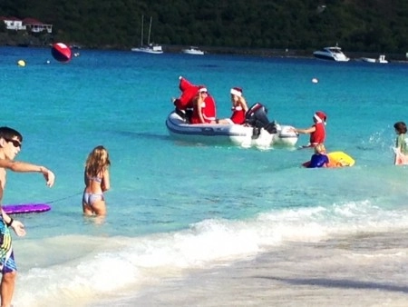 Everyone rushes to see Santa and his helpers arrive on St. Jean Beach on Christmas Day