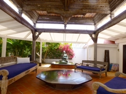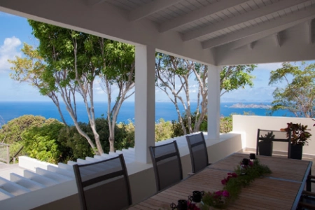 I stayed at two amazing villas this time. My colleague, our US concierge Julia Hurd, was with me all 8 nights, and the St Barth Properties President, Peg Walsh, for the first 4 nights. First stop – Villa Valentina, located on the windward side of Pointe Milou you can always count on a really nice breeze. We left the sliders open when we were there, three of us sitting around on our computers – if you have to work the breeze is very welcome. Valentina has the most interesting entrance, an amazing Balinese wooden door opens into a lobby with an ornate antique ceiling and both door and ceiling were shipped from Bali when the villa was built – the sound of a fountain and a Buddha complete the feeling of serenity! Very unique – very cool. The house was comfortable and the view is amazing.