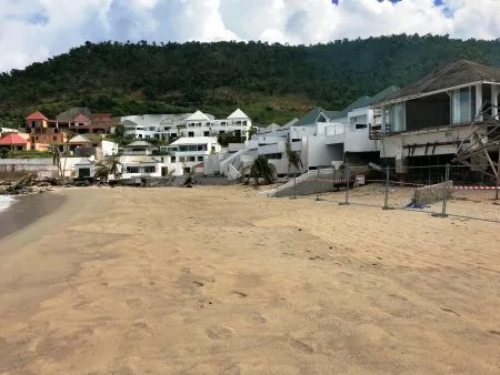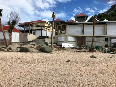 Today brings us to Flamands Beach. The beach front buildings really took a hit from Irma. To get onto the beach at this time, you need to take the entrance at the far end of the beach. We started our reconnaissance from there and walked all the way down to the hotel Cheval Blanc St. Barth Isle de France. The hotel’s beach front restaurant, pool and rooms need lots of repairs. Some of our villas suffered less damage than others and will be ready for guests in a few weeks.