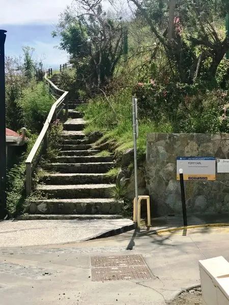 Our walk took me to the stairway up to Fort Karl. I had expected the steps that are built into the hillside would have been totally washed away, so I was happy to see them intact and waiting for you to use them.