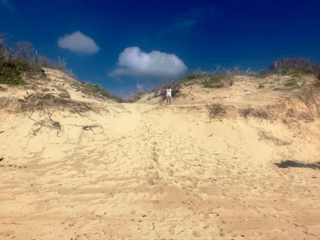 I knew you would be asking me about Saline Beach, so off we went to check it out. The salt pond was full, the path from the parking lot was nice and wide and we began our hike. The rocky access up seemed a bit tougher and steeper to me, but that might be because I have not climbed it recently. When we reached the top, the view was as breathtaking as ever and was incredibly expansive. There was quite a steep slope to get down to the beach itself. Good exercise for you! It has not yet been approved for swimming due to the high level