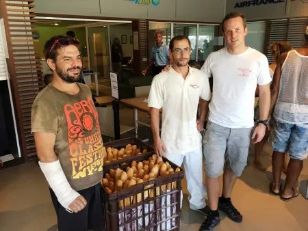 La Petite Colombe bakery gracioulsy handed out free baguettes to eveyone! Makes our mouths water.
