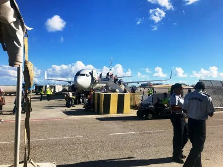 I had heard that the terminal at Princess Juliana Airport was not open and was badly damaged. Make-shift arrangements had been made. That bit of news meant that I was clueless as to how to transit through to St. Barth. We had four heavy checked bags because we packed knowing that we would be here until May. I relied upon my fabulous concierge in our US office, Julia Hurd to arrange VIP services for us. What a smart move!