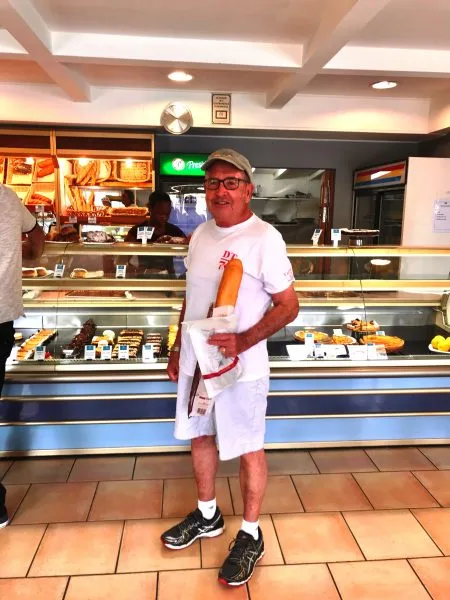 Today is Sunday. The day of rest is taken seriously by the islanders, so most places are closed. I put on my sneakers, put my Fitbit on my wrist and we headed off to Gustavia for a combination power walk and reconnaissance trip. The bakery in Lorient was open and a coveted parking space was free, so we parked and went in to buy our baguette for sandwich-making, so we could head to the beach with them later.