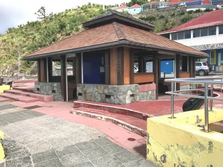 Reversing our steps, we walked down the other side of the harbor past the ferry dock and fish market. Everything seemed normal. The Voyager ferry had just arrived from St. Martin, taxi drivers were offering island tours to the cruise ship passengers, Le Repaire was open for breakfast and the fish market was intact but not open because it was Sunday. I did see a piece of plywood on the window at Longchamp’s but not much more. Further up the Bar de L’Oubli was open, too.