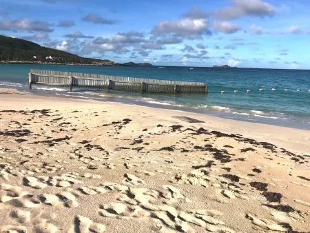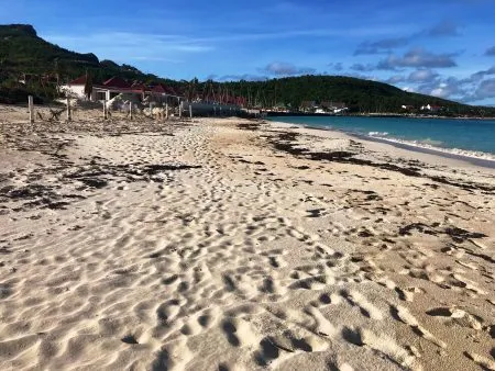 I tried to look at the surroundings as I drove. Yup, definitely, a hurricane had hit, the most obvious indication being the almost-naked palm trees. Otherwise, there were many signs of repairs and recovery that impressed me. Even the palms’ fronds had sprouted new growth showing that they were well on their way back to their stately beauty. We unpacked, showered and headed out to dinner. I had vowed that we would frequent every restaurant whose staff had busted their tails to reopen as soon as possible and show my support by dining there. We are always a bit tired on our first night and chose the casual Le Grain de Sel by Saline Beach; it was busy; they had blackboard specials, and we enjoyed the food, the friendly staff as well as the nice breeze.