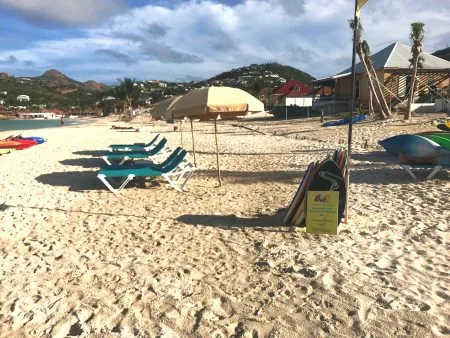 I noticed a few chaise lounges with umbrellas at the spot where Carib Water Play’s booth used to be and stopped to chat with Lucas, Jean Michel’s son. He was open for business! Good to know – 15 euros for a lounge chair and 10 euros for an umbrella – well worth it.