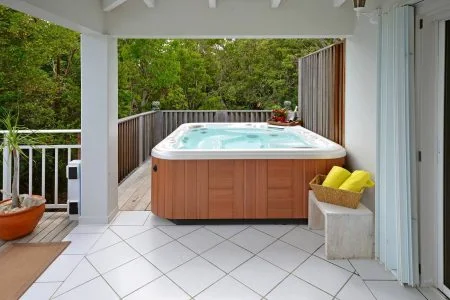 The living room opens up to a nice covered terrace where guest can dine by the pretty edge pool while watching the sunset. To my surprise the owner has added a Jacuzzi which was perfect for me to relax after longs days of visits and standing on my feet.