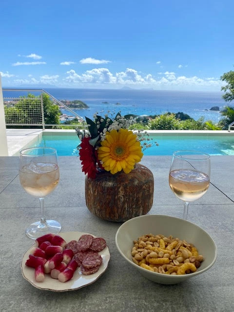 I checked into villa Wish located in Colombier for the first half of my stay. What a treat that was! The villa offers splendid views of the harbor, ships and planes coming and going and the sunsets from this villa are magical. Villa Wish is nicely decorated in a contemporary style with 2 equal bedrooms, a lovely pool and a jacuzzi to relax at the end of a hard working day. I enjoyed strolling down to the bakery every morning to get croissants and all sort of French goodies. For first night dinner, I recommend “Les Bananiers” restaurant within walking distance from the villa. Their menu is diversified and it is a good place to get pizza. They also offer a daily special for lunch.