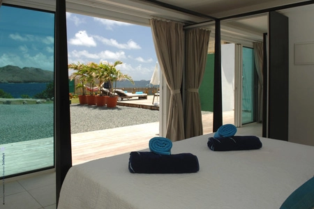 I am staying in the king bedroom with bath en suite and Connie is staying in the king/twin bedroom that also has an en suite bath. The villa is fully air conditioned and I especially love the outdoor speakers so that we can listen to music while taking a swim. The villa is very private and we can walk to gorgeous Flamands Beach in about 3 minutes.