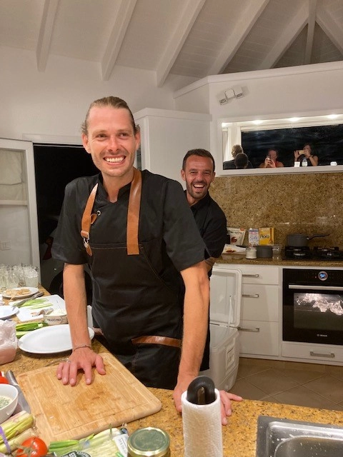 After our visits that afternoon, we had a private trainer come to the villa for a workout on the pool deck with 4 of the ladies from our office on the island. Being on St. Jean Beach, we had an audience cheering us along. After the workout, we enjoyed a dinner prepared by a private chef team for the whole office. This was a nice time to meet the new employees and spend some time catching up about the past couple of years.