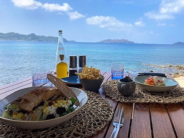 Crystal Dream is our most popular villa, so I was thrilled to be able to enjoy it first-hand and see why our clients love it so much. The location really cannot be beaten – ON St Jean Beach, three bedrooms under the same roof and a pool. What more could you ask for? Once we got the “lay of the land,” we ran out to the new grocery in St Jean – the Super U and WOW, what a nice shopping experience that was! We got our essentials and returned to the villa to get ready for dinner. As I do each time on the island, my first dinner is always at Les Bananiers in Colombier– I love the escargot! Tess had never had escargot, and she is now converted. It’s a nice place to help one ease into the island vibe and let go of the New England weather. We were tired from the long day of travel, so we went back to the villa to take a dip, have some rose and crash, plus I had an early morning the next day.