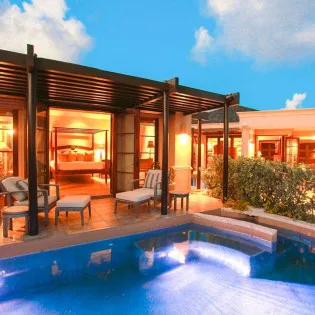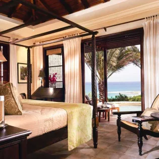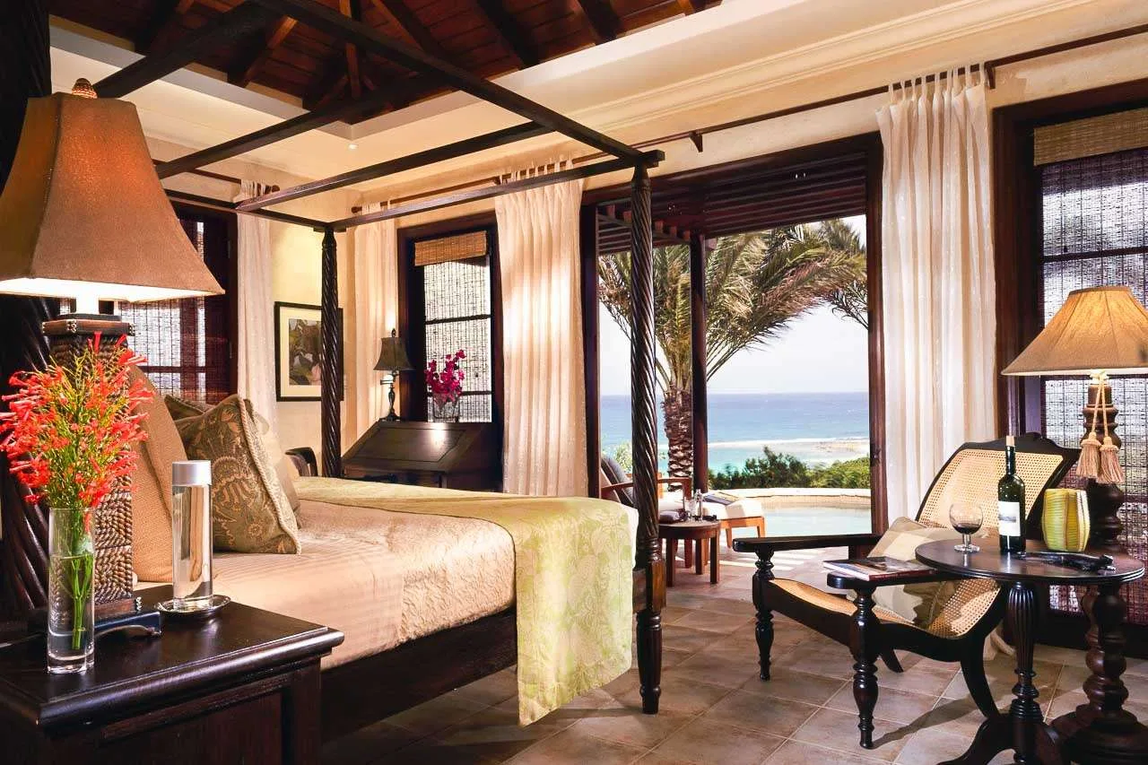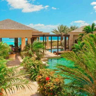 Villa Bird of Paradise (villa code: AXA BOP) is a striking cliffside 4-bedroom villa overlooking Anguilla’s serene Sandy Hill Bay, designed by the acclaimed architectural firm Wilson & Associates—known for their work on world-renowned resorts such as Amandari in Bali, Las Ventanas in Cabo San Lucas, and The Peninsula in Beverly Hills. Drawing influence from the tropics of Southeast Asia, the villa features a unique layout of four interconnected pavilions surrounded by lagoon-style pools, creating a sense of serene immersion in nature.