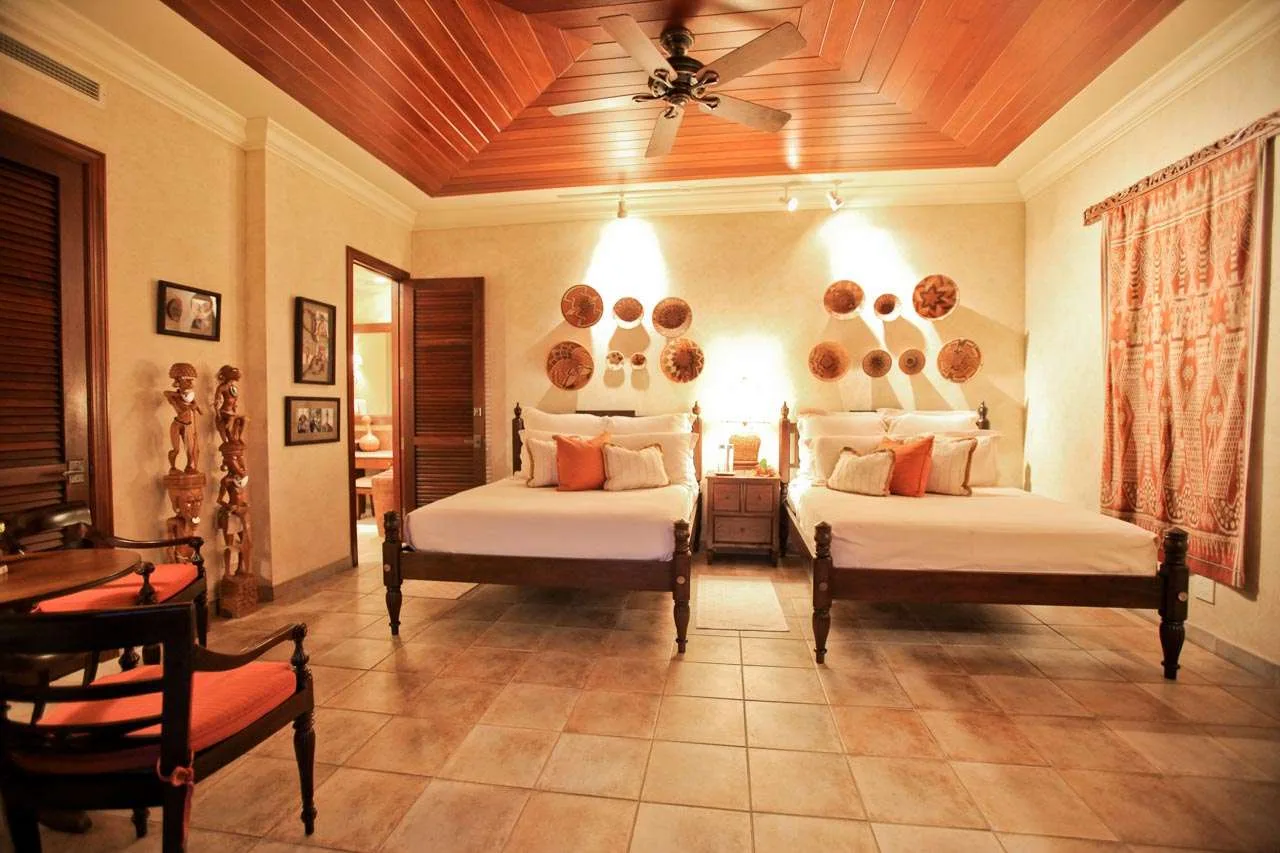 Accommodations include four beautifully appointed suites and a convertible office space that serves as a fifth bedroom. Each suite is equipped with an ensuite bathroom, private balcony, air conditioning, television, refrigerator, and coffee service—offering guests a high level of privacy and personal comfort.