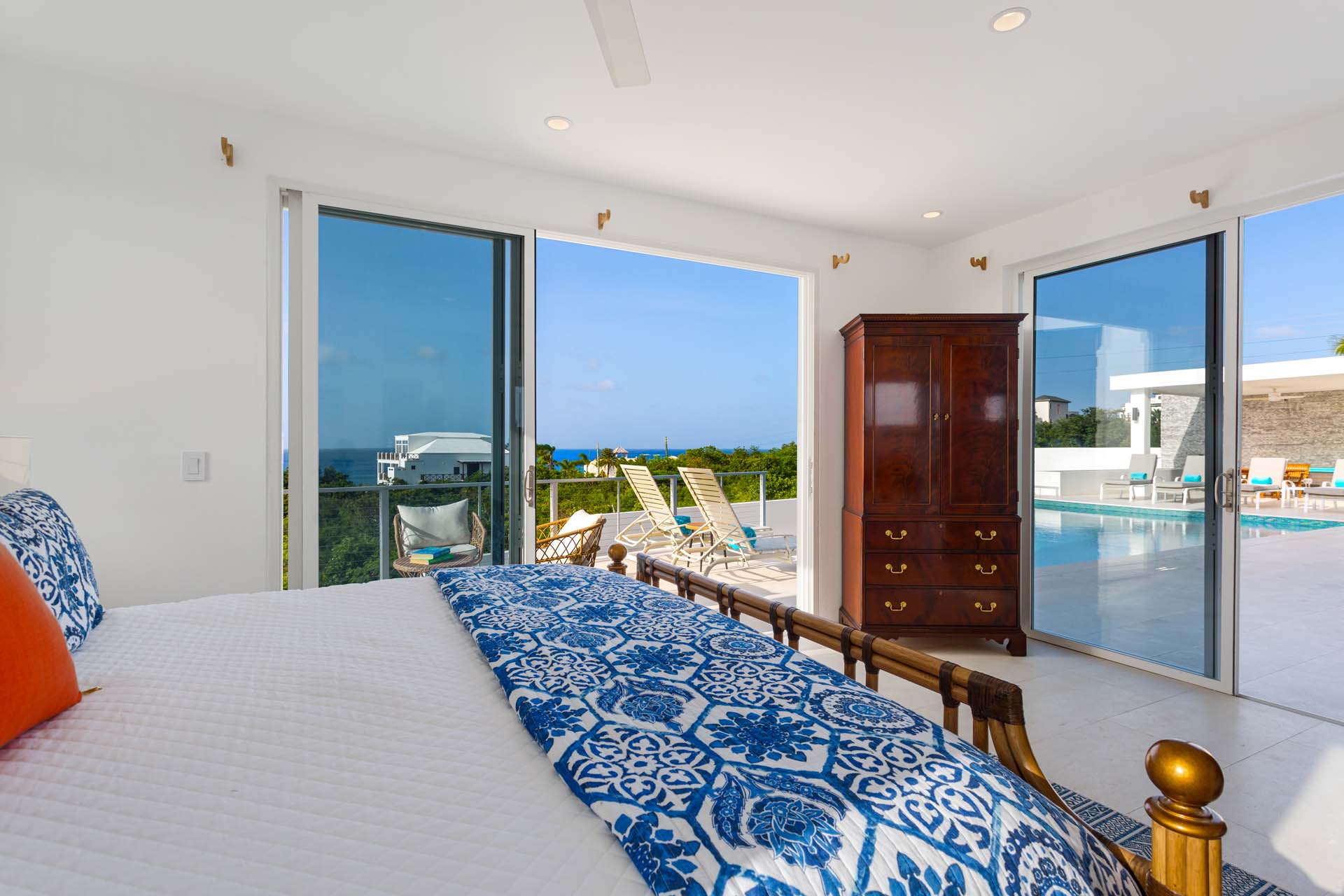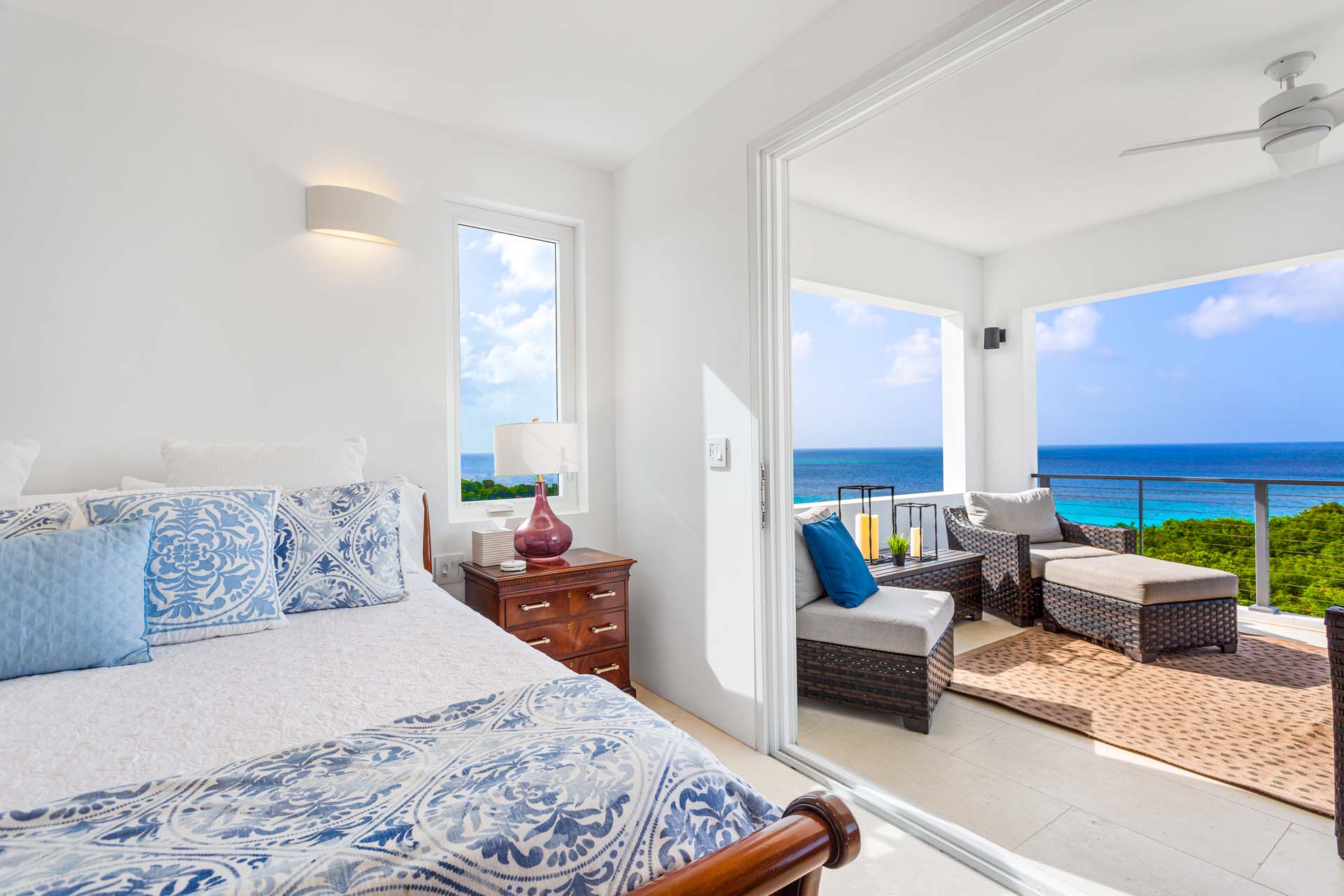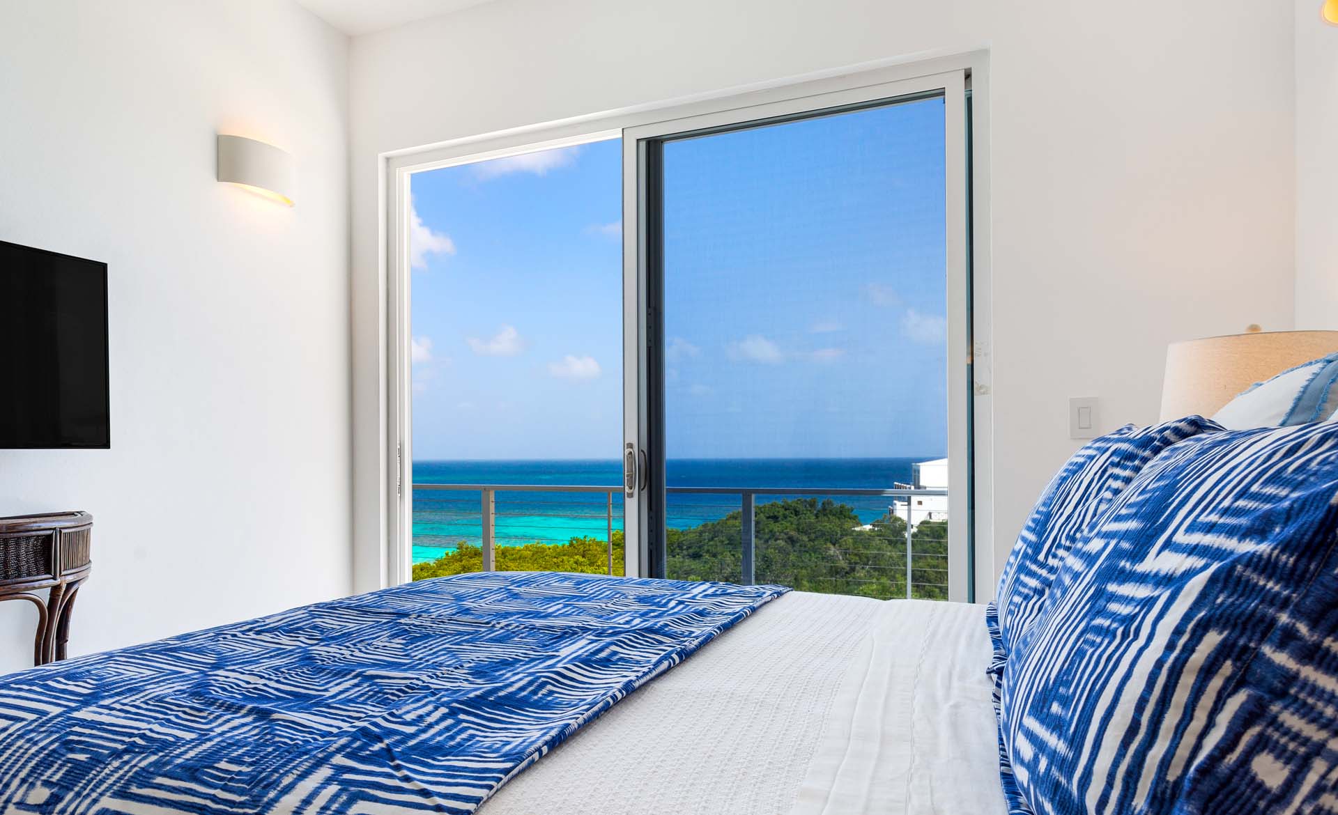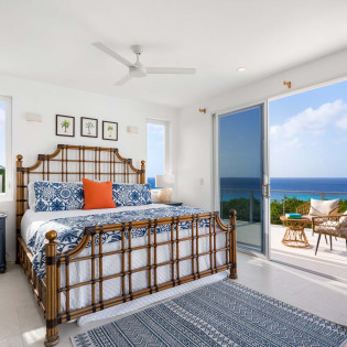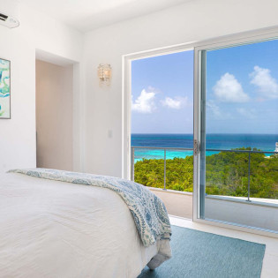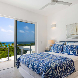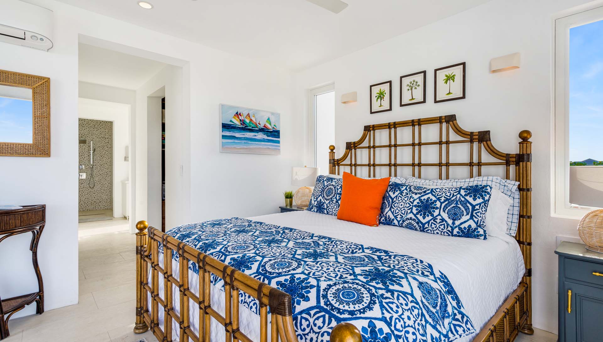 On the second floor, the primary suite takes center stage, commanding mesmerizing views across the glistening Shoal Bay. It features a private terrace with a cozy nook for lounging, a luxurious walk-in closet, and a generously-sized bathroom that epitomizes luxury. The second primary bedroom, adorned with refined decor, opens directly onto the pool deck, with a king-sized bed and an ensuite bathroom.