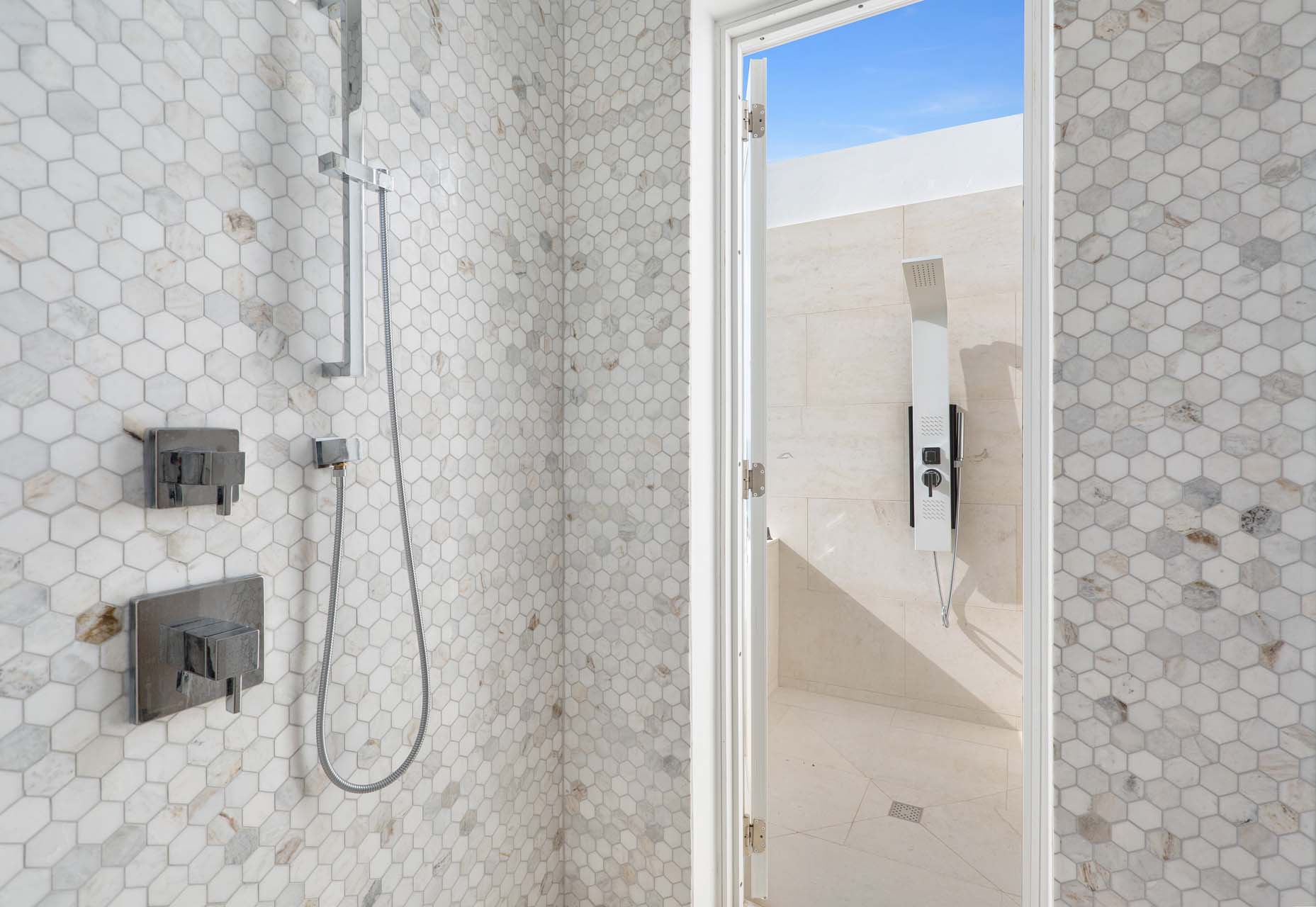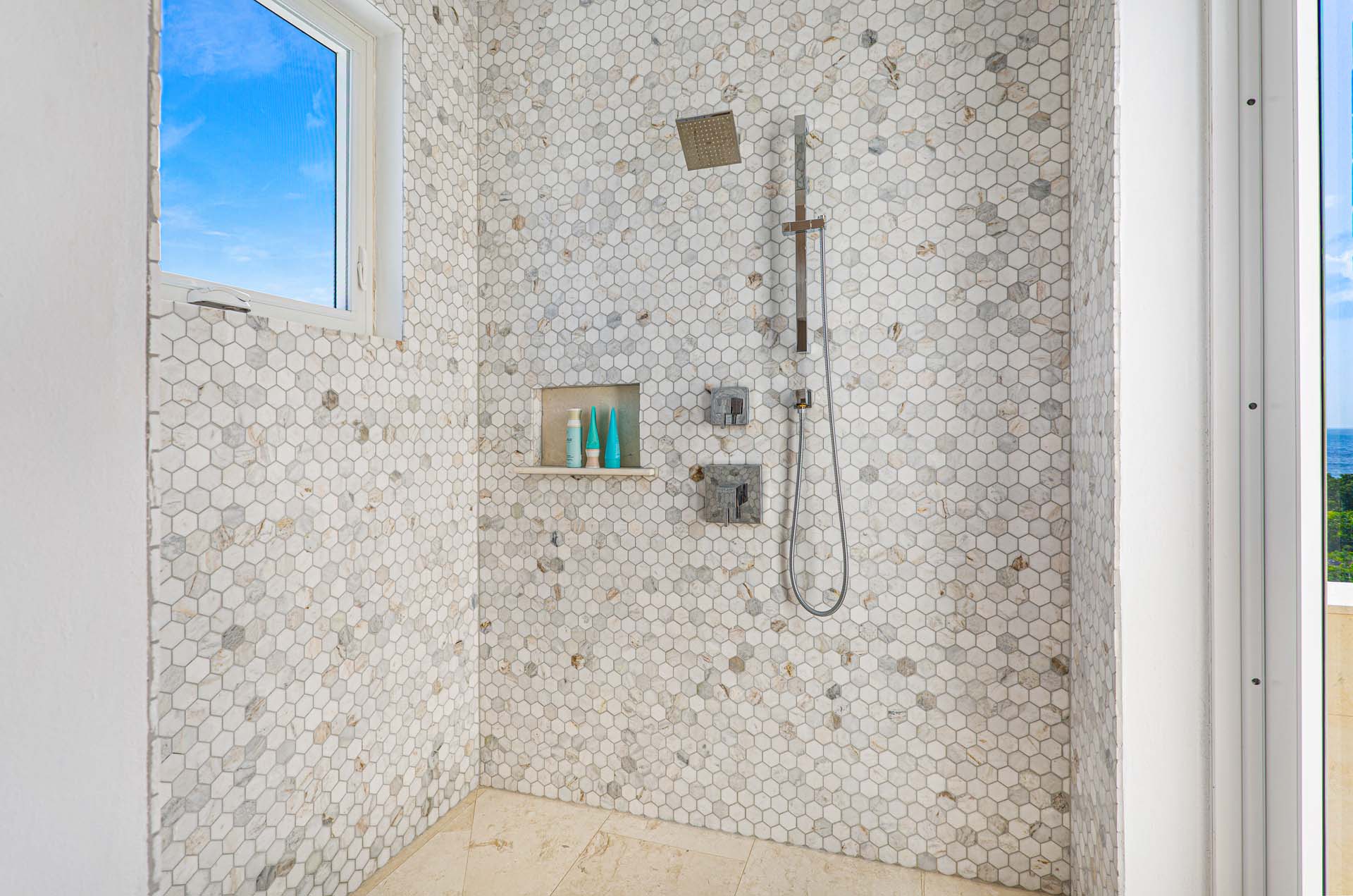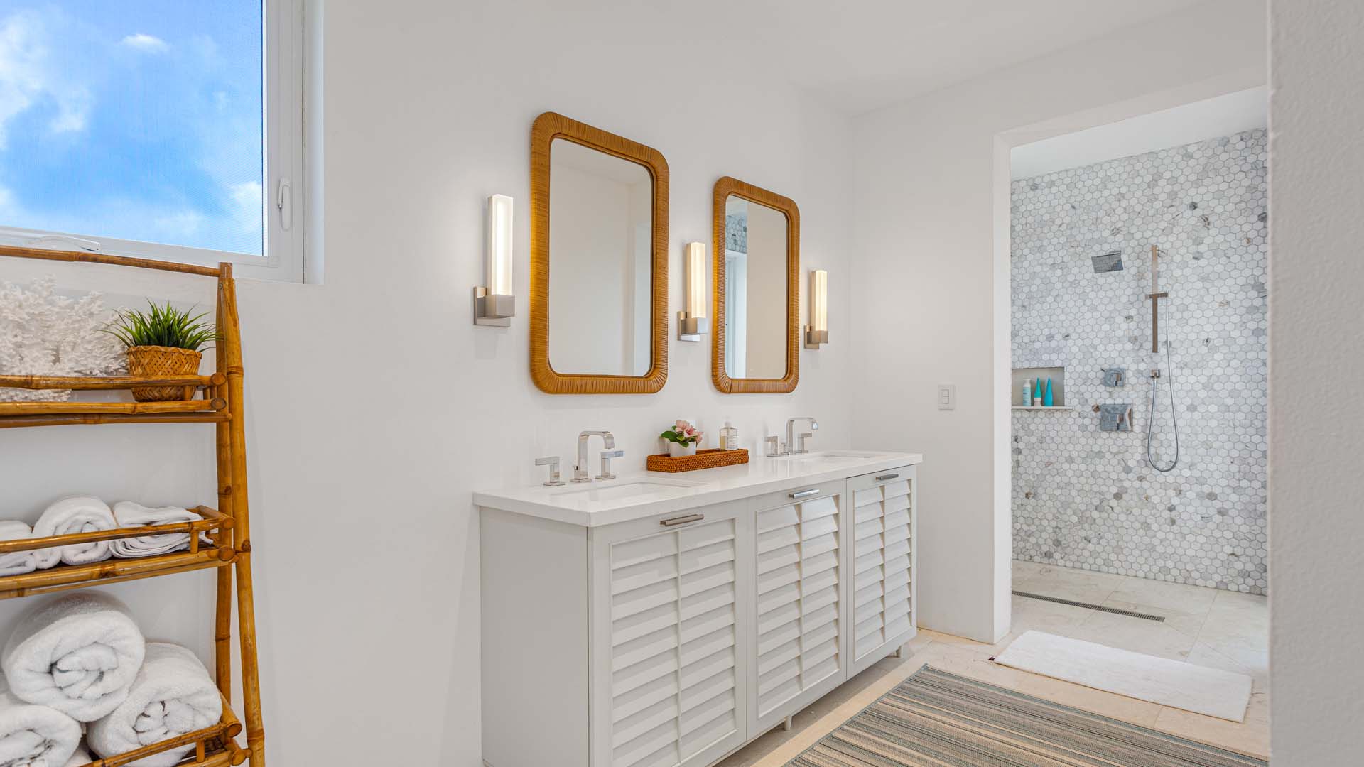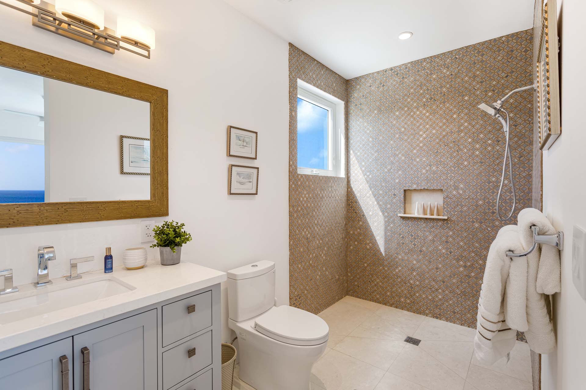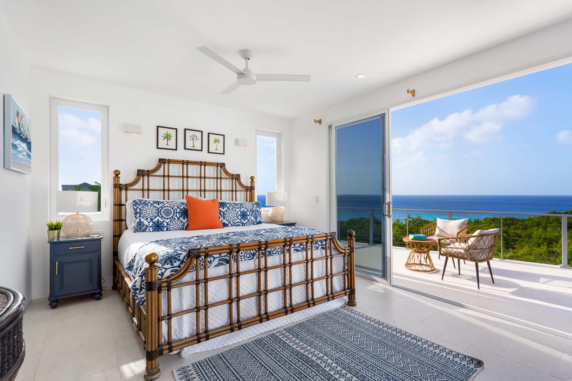 On the second floor, the primary suite takes center stage, commanding mesmerizing views across the glistening Shoal Bay. It features a private terrace with a cozy nook for lounging, a luxurious walk-in closet, and a generously-sized bathroom that epitomizes luxury. The second primary bedroom, adorned with refined decor, opens directly onto the pool deck, with a king-sized bed and an ensuite bathroom.
