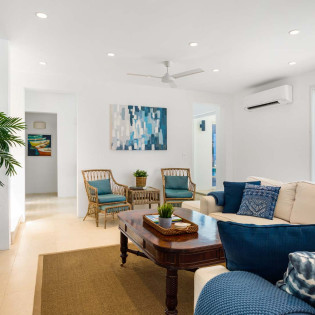 Completing the array of accommodations are two other bedrooms, each adorned with a queen-sized bed, private terraces, and ensuite bathrooms, all of which offer captivating views of the captivating Shoal Bay.
