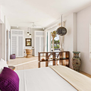 Filled with vibrant colors, tropical texture, and breathtaking sea views, this is the quintessential beachfront experience. The stylish interiors evoke the easy-going relaxation of a day on the sand, combining dark island wood with pops of Caribbean flair. The modern design takes advantage of the incredible sea views and island trade winds.