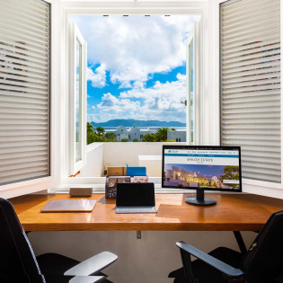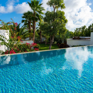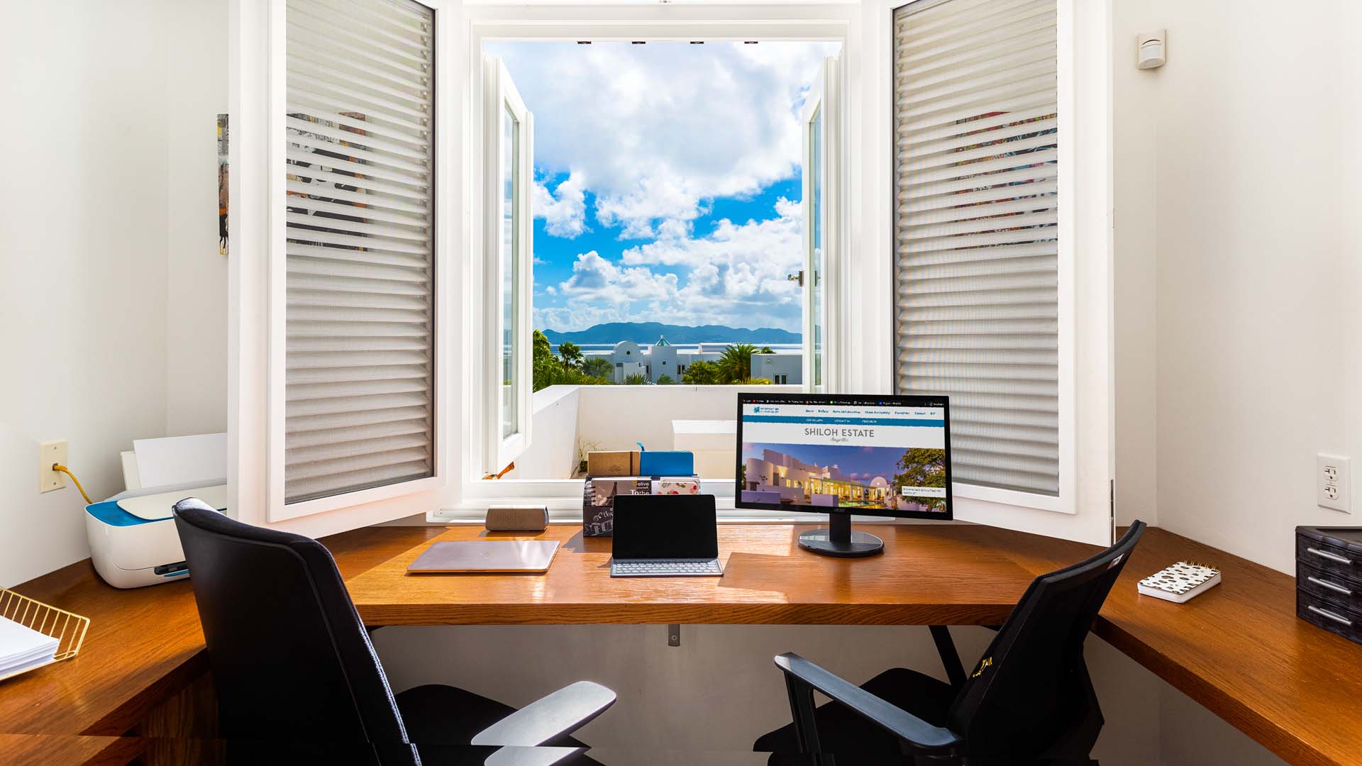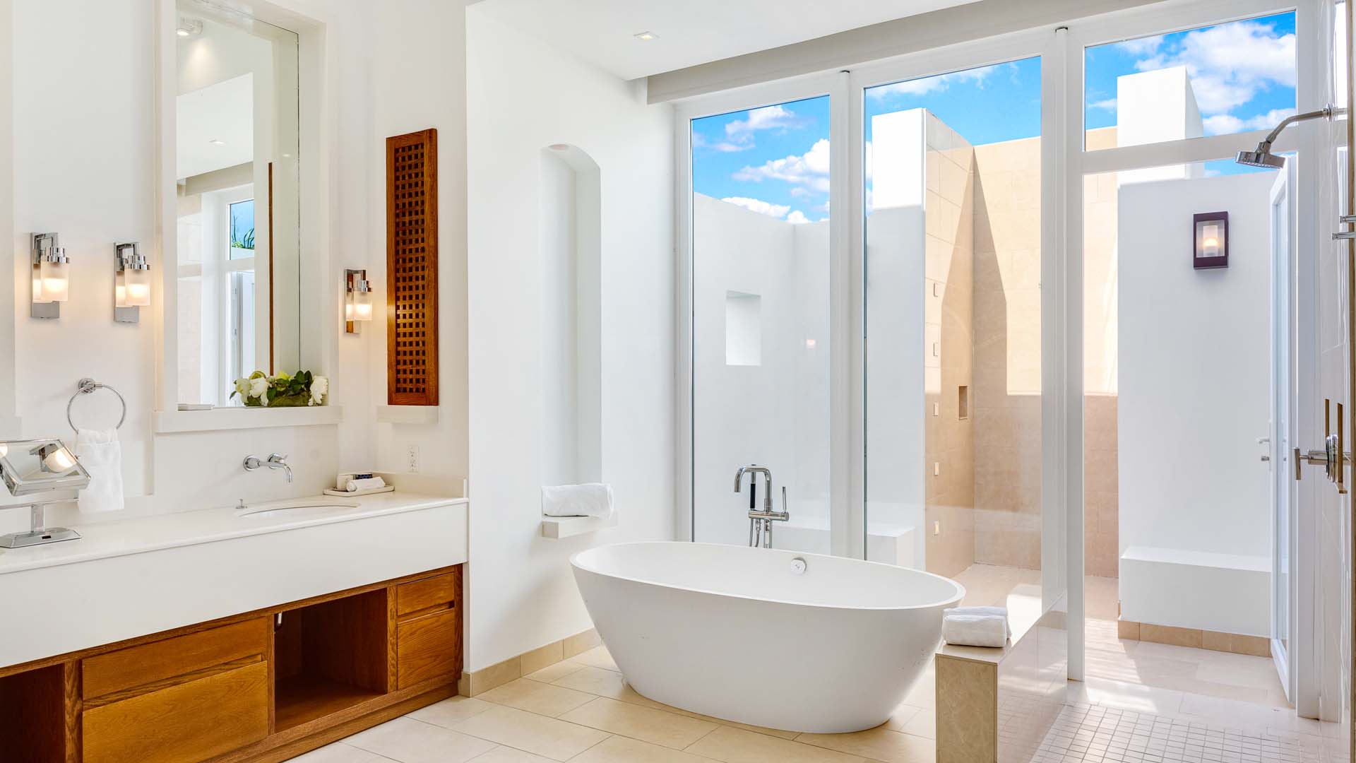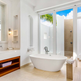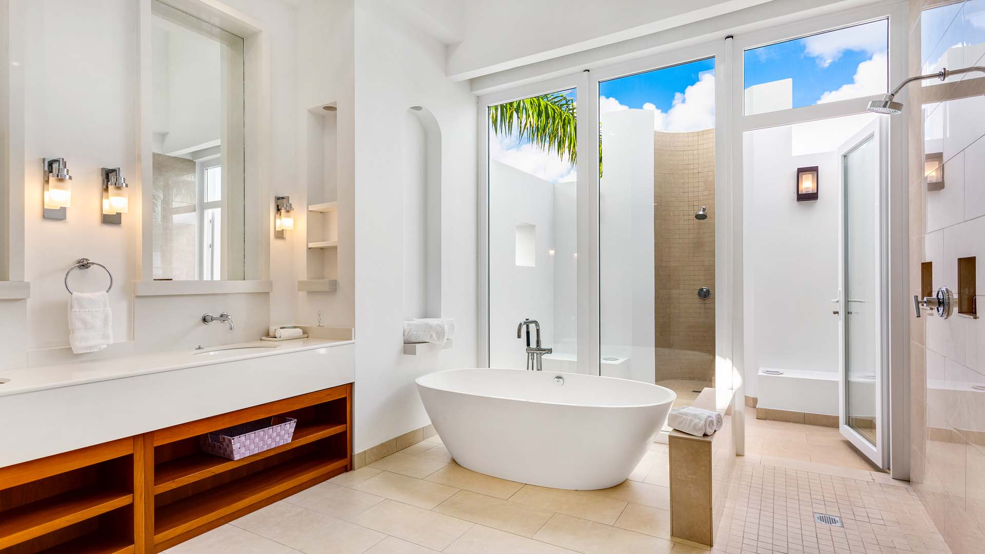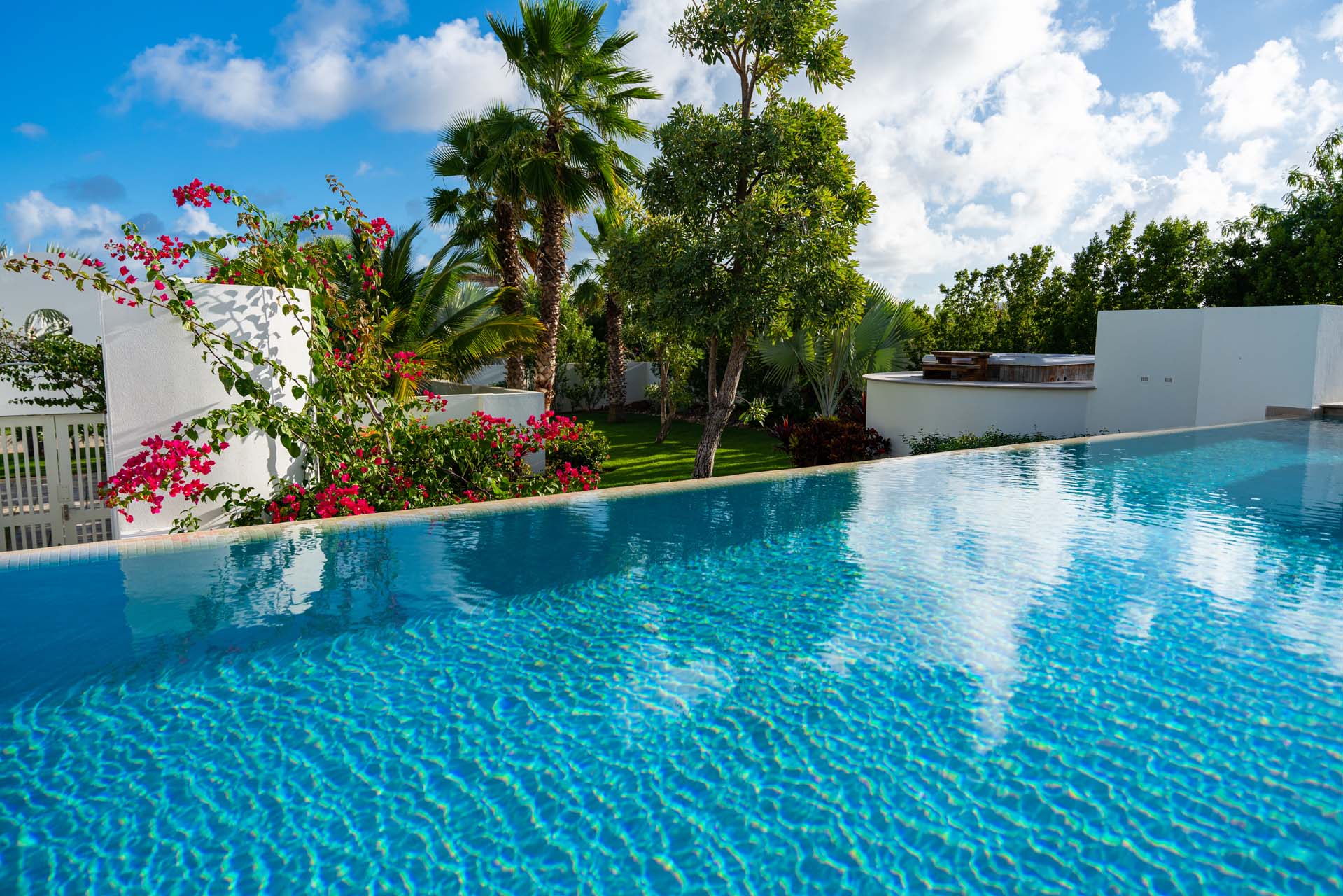 Villa Shiloh’s prime location provides access to both privacy and resort amenities. From the back of the villa, guests can walk into tropical gardens, play a round on the 18-hole golf course, or enjoy ocean views just beyond. As part of the Aurora resort, guests also have access to a white sand beach, a full-service spa, golf, and a variety of fine and casual dining options.