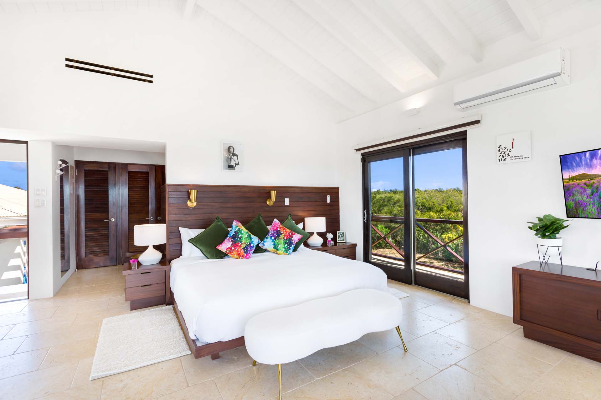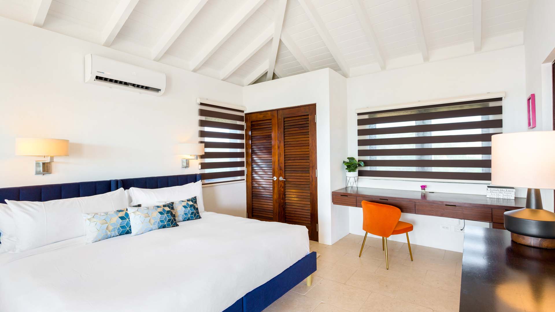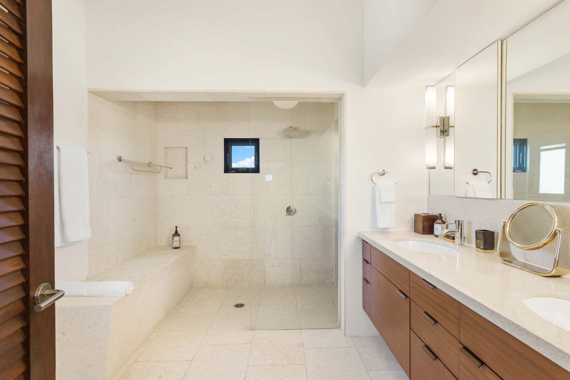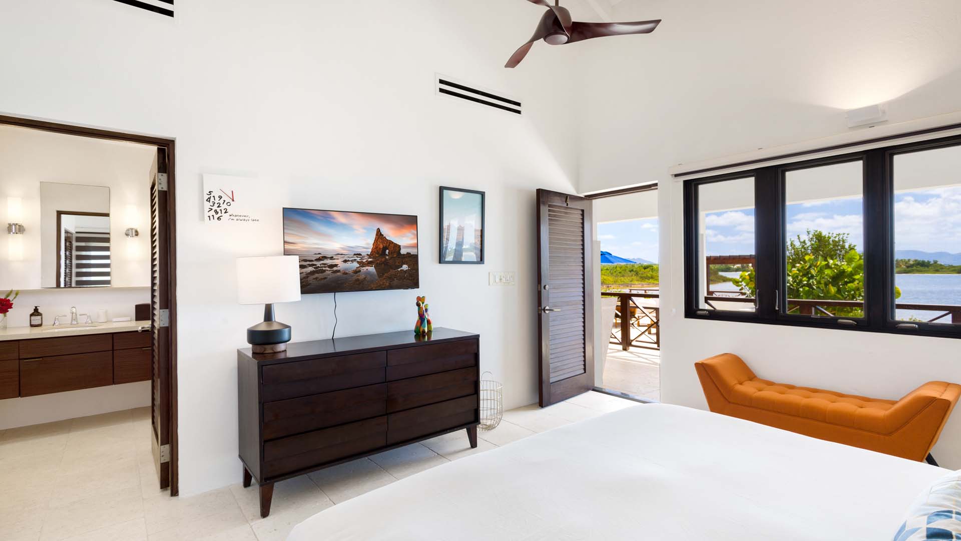 Each of the villa’s bedrooms offer their own peaceful retreat, complete with ensuite bathrooms and individual climate controls. The master suite stands out with its private balcony overlooking Rendezvous Bay, offering a serene escape within the villa’s already tranquil setting.