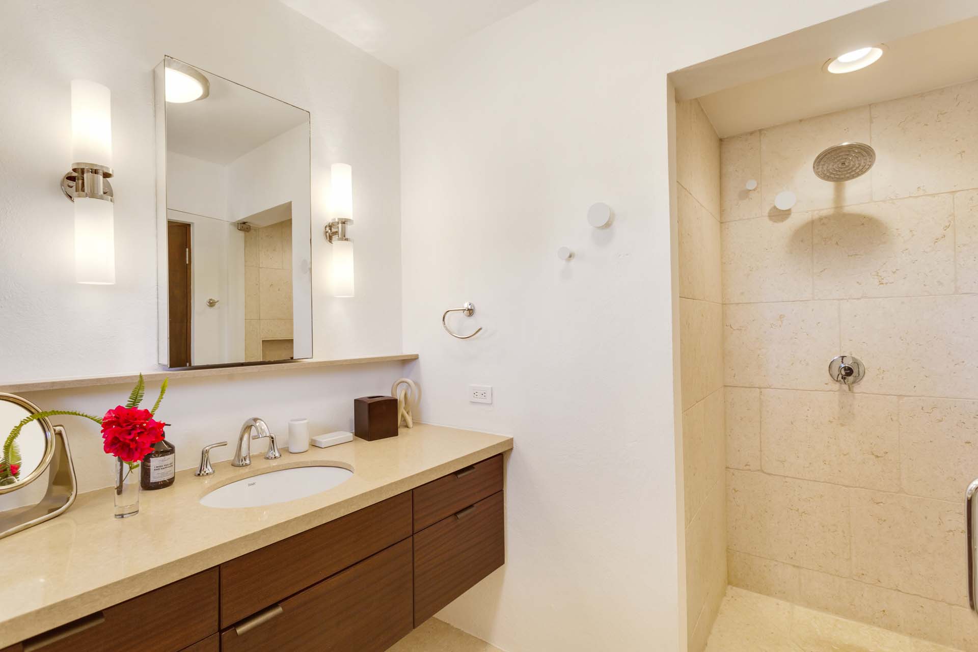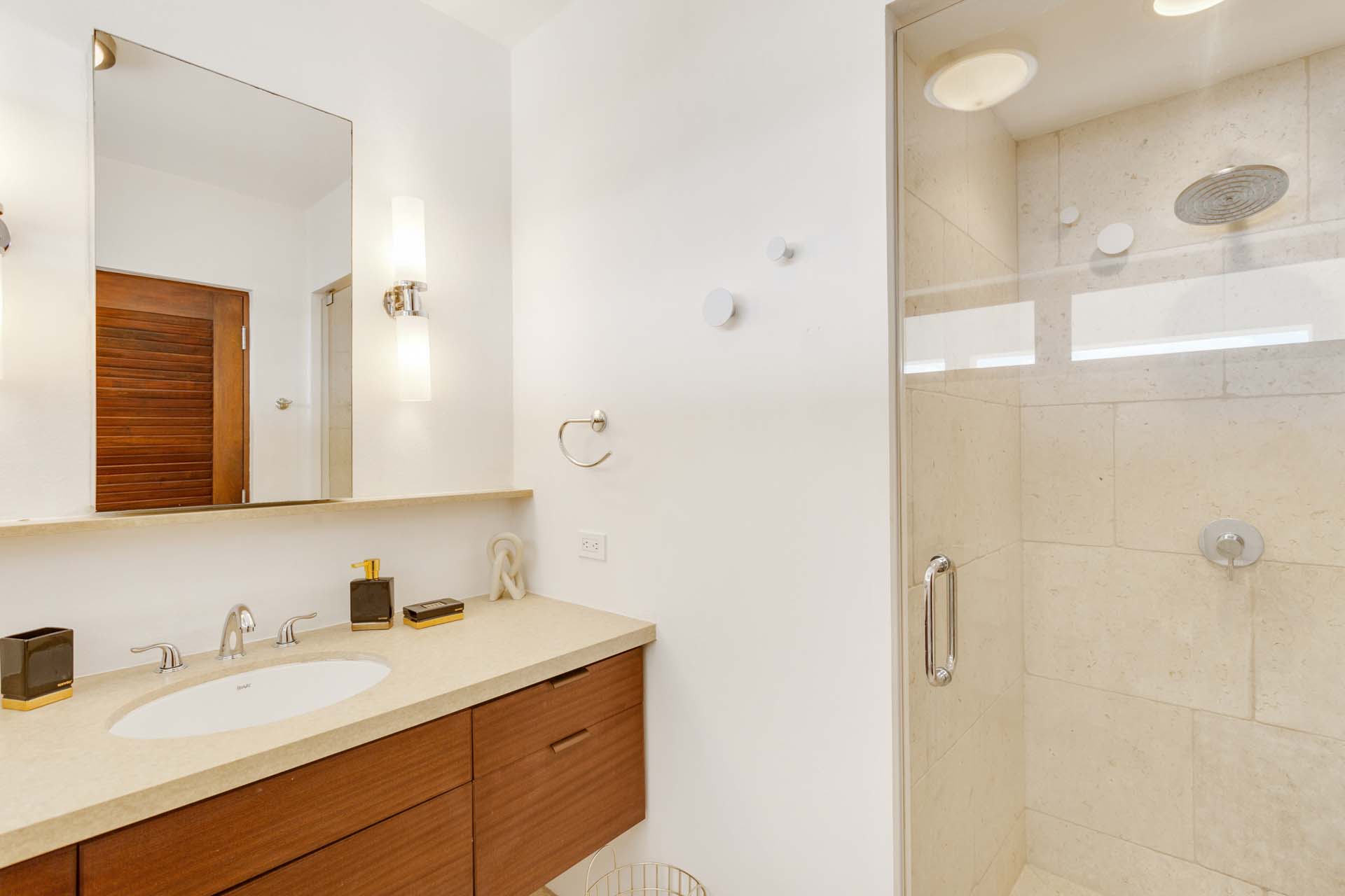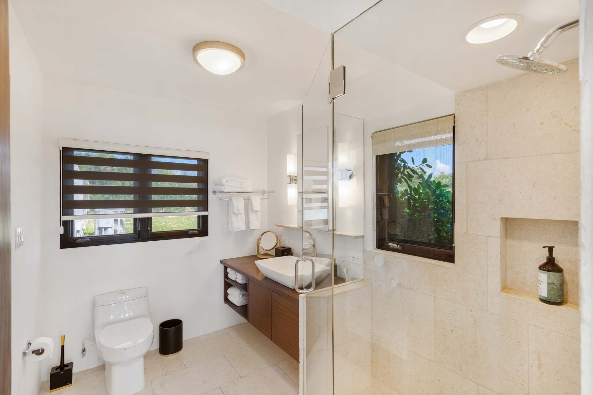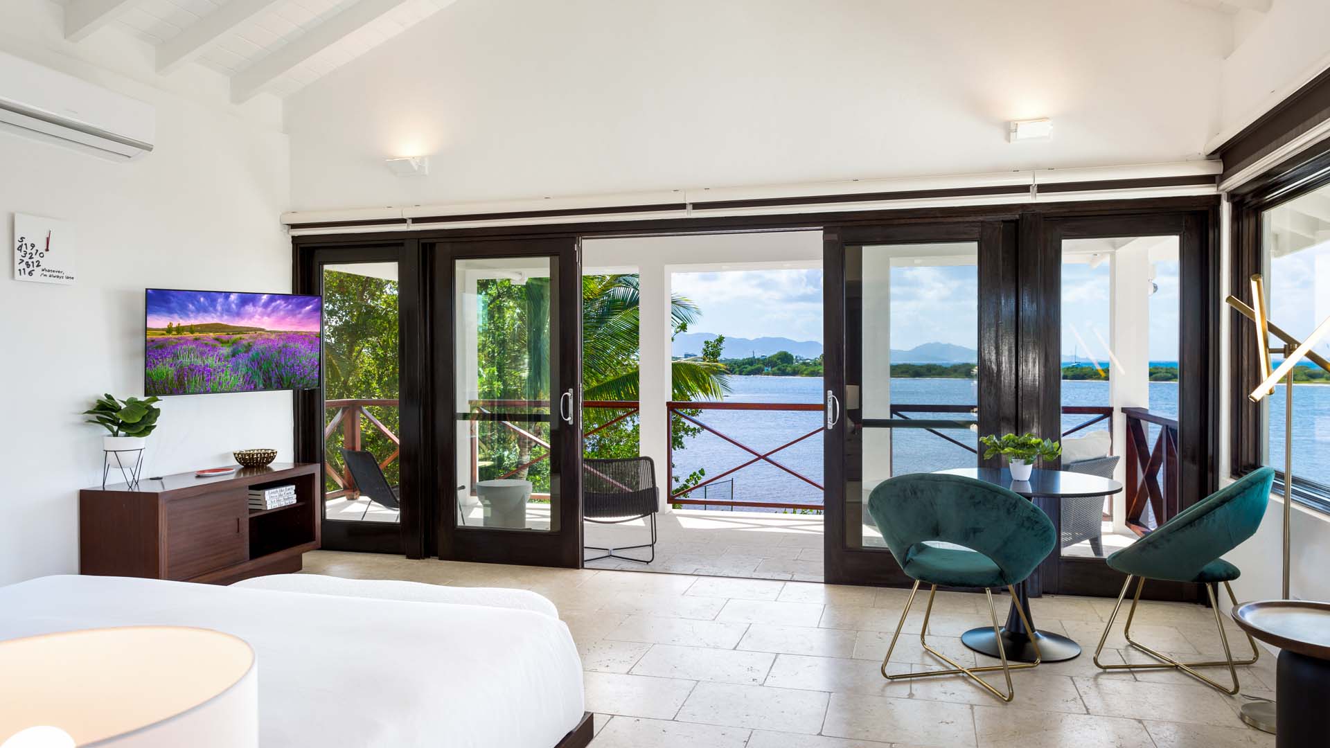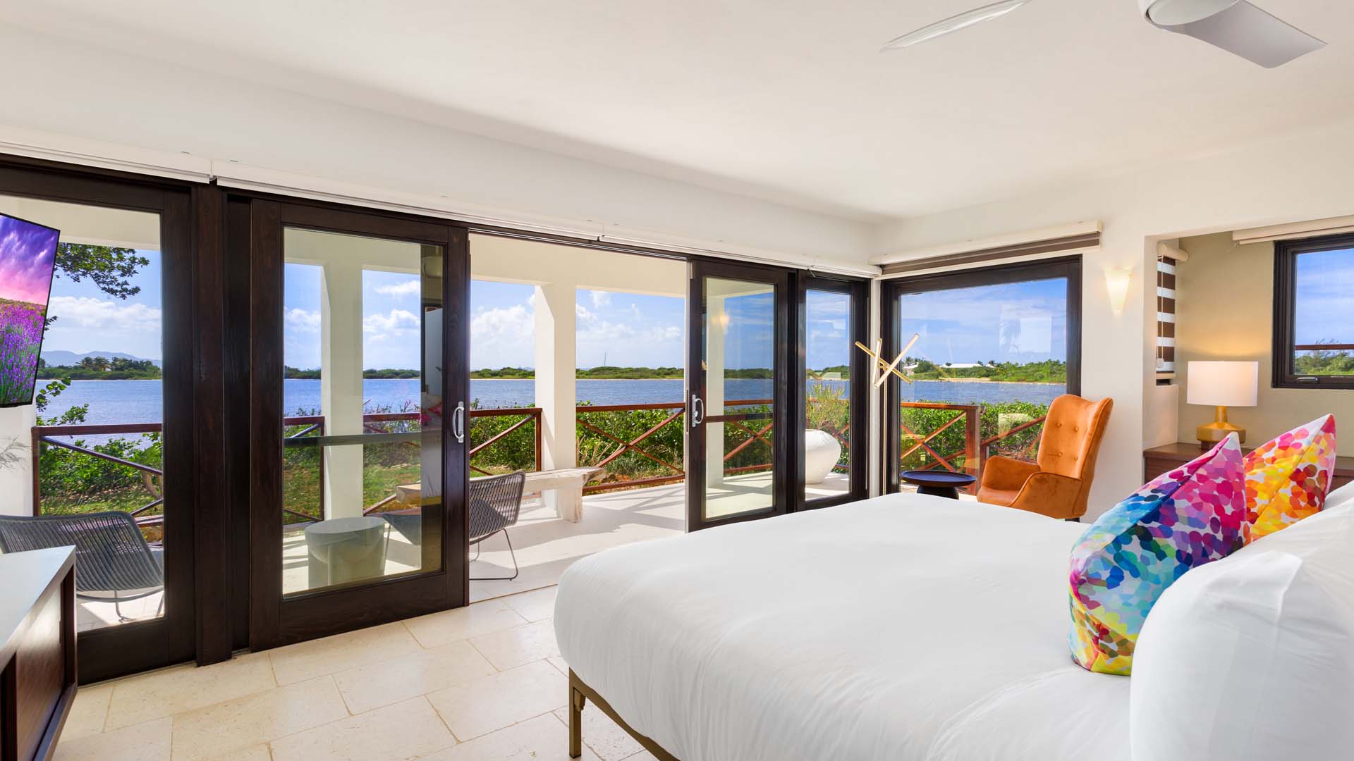 Each of the villa’s bedrooms offer their own peaceful retreat, complete with ensuite bathrooms and individual climate controls. The master suite stands out with its private balcony overlooking Rendezvous Bay, offering a serene escape within the villa’s already tranquil setting.