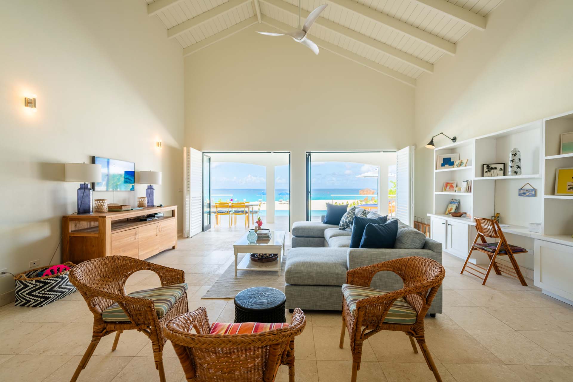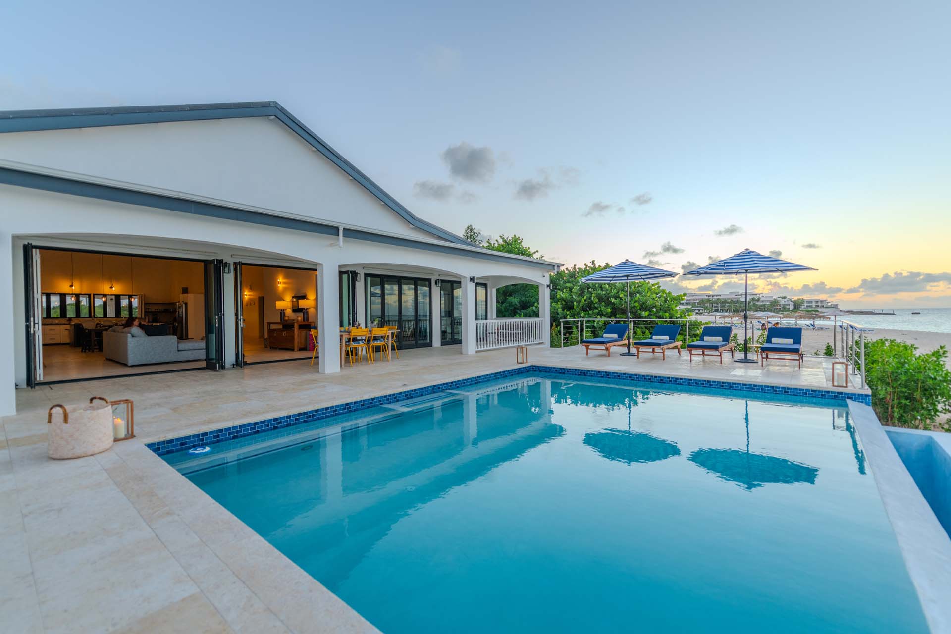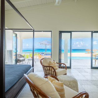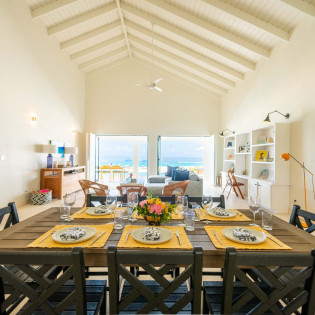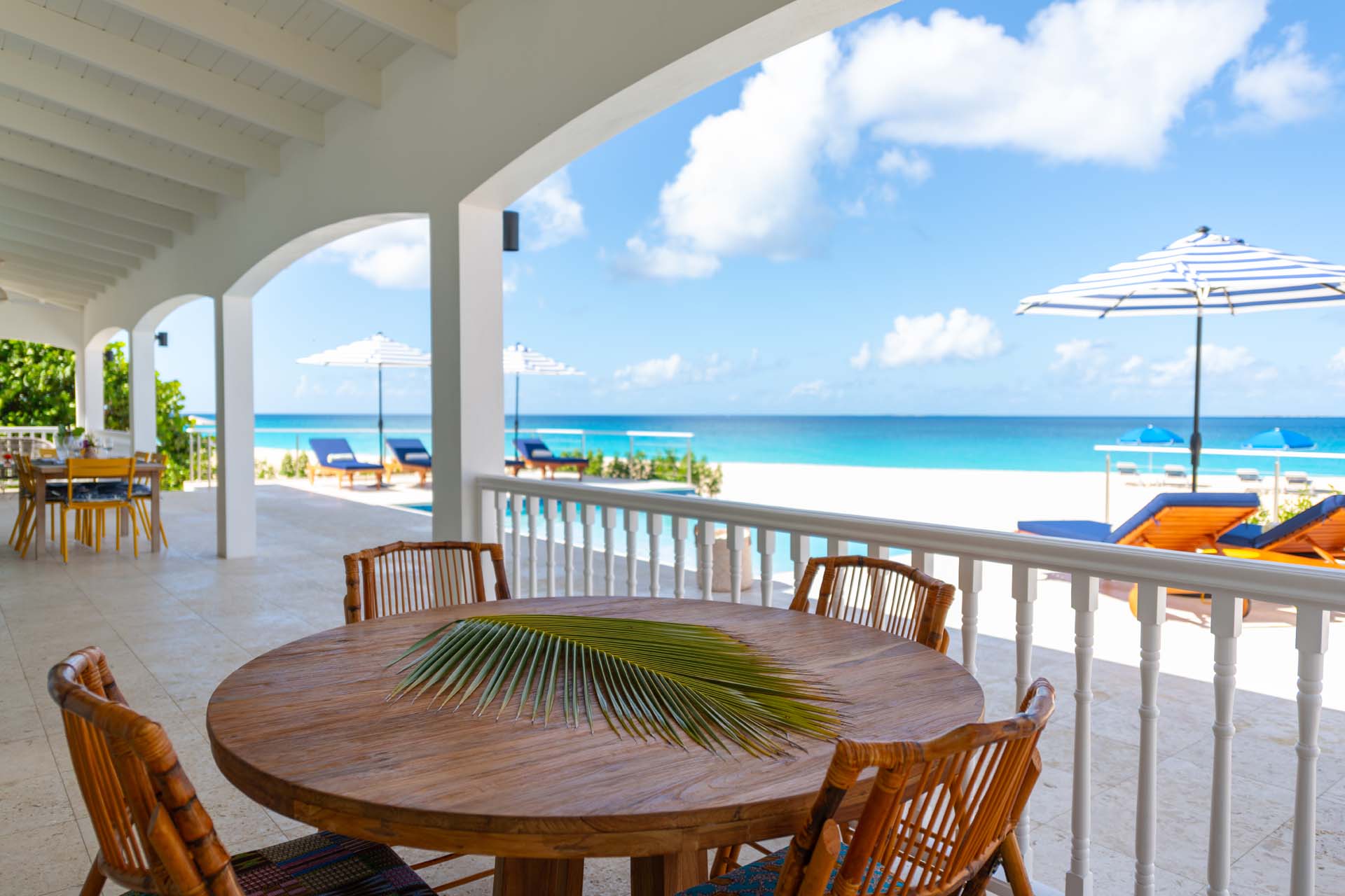 Thoughtfully designed to maximize its spectacular beachfront setting, The Cottage at Meads Bay invites guests to fully embrace the island’s natural beauty. Covered outdoor dining and lounge spaces allow for relaxed breakfasts, leisurely afternoon cocktails, or evening meals under the stars—all while soaking in the warm sea breeze and panoramic ocean views.