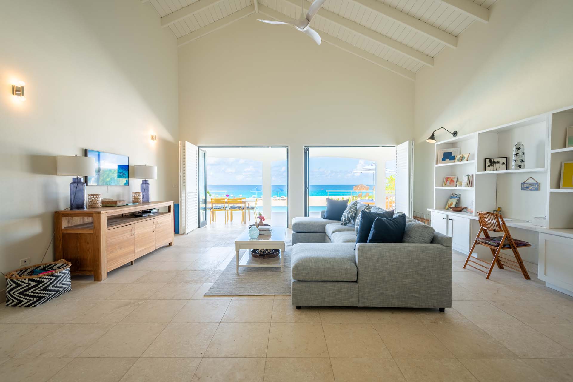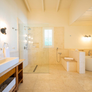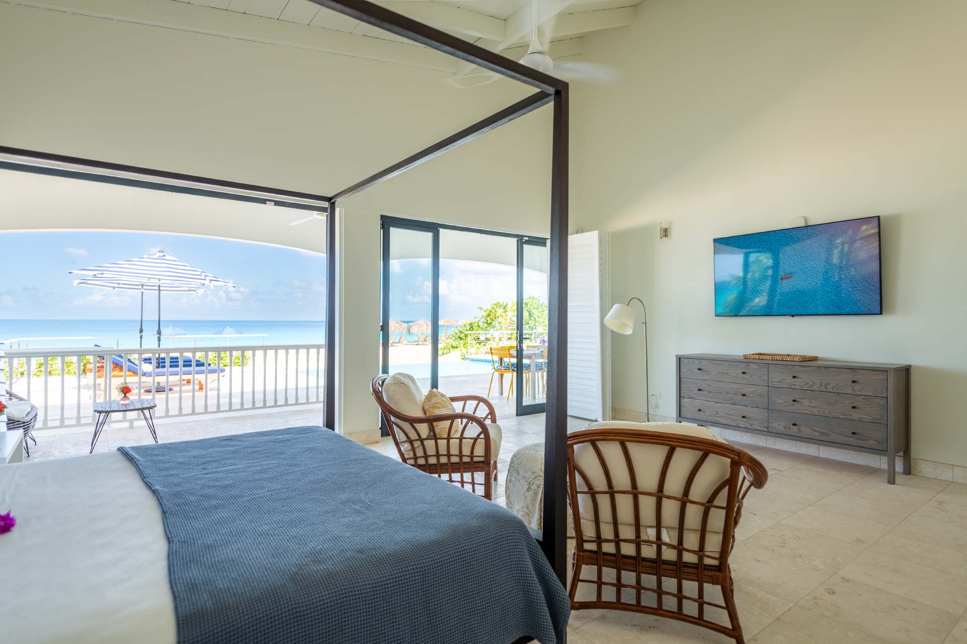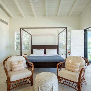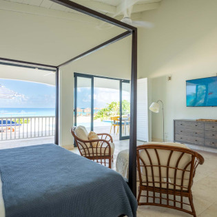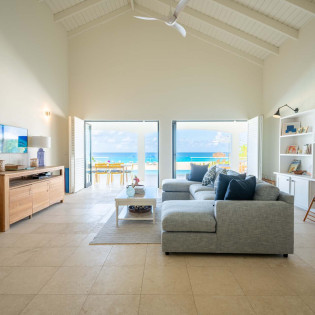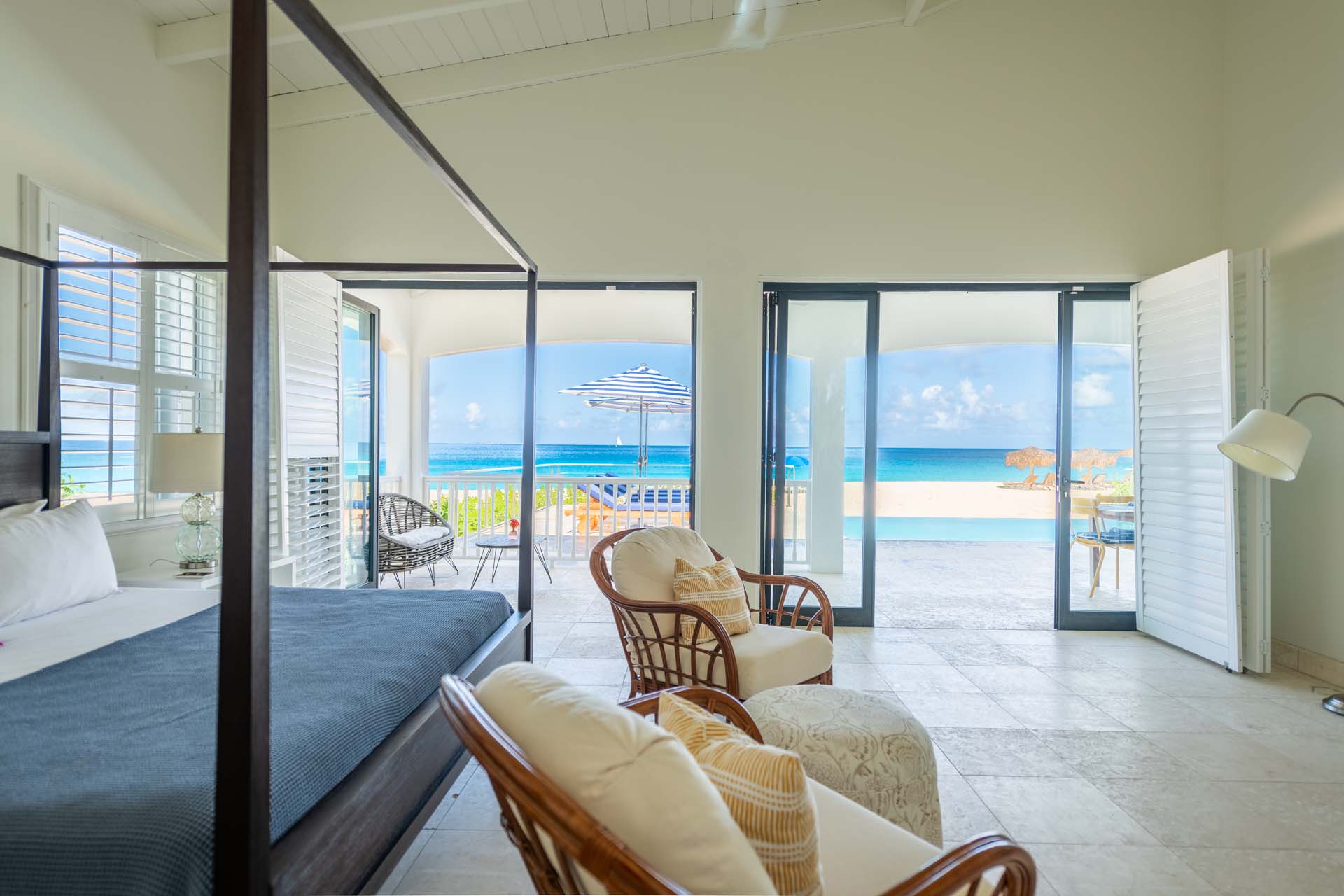 The villa features beautifully appointed bedrooms, each offering a private haven of rest. Two suites boast king-size beds and commanding sea views, so you can wake each morning to the shimmering West Indies Sea. The third bedroom overlooks a lush garden, offering a tranquil contrast to the vibrant beachfront setting—ideal for meditation, reading, or quiet reflection. All bedrooms are paired with spacious, spa-like bathrooms that enhance the villa’s atmosphere of refined comfort.