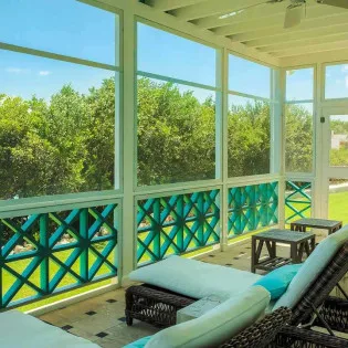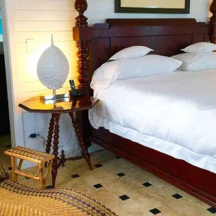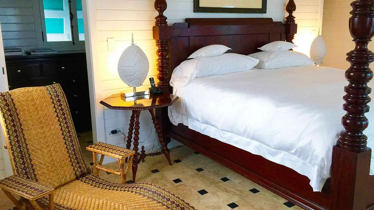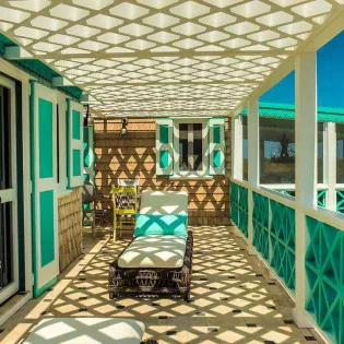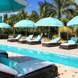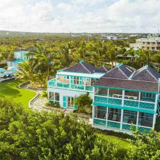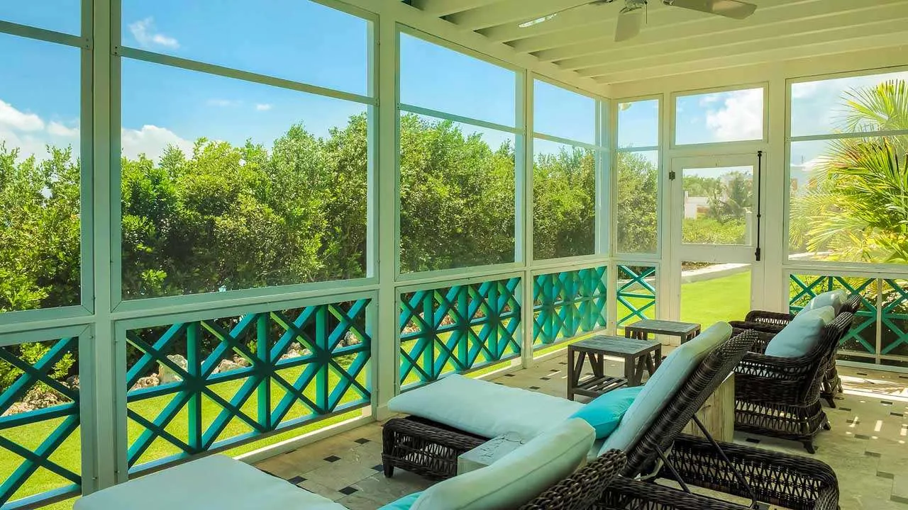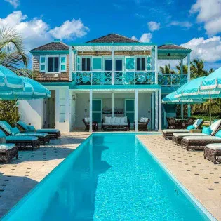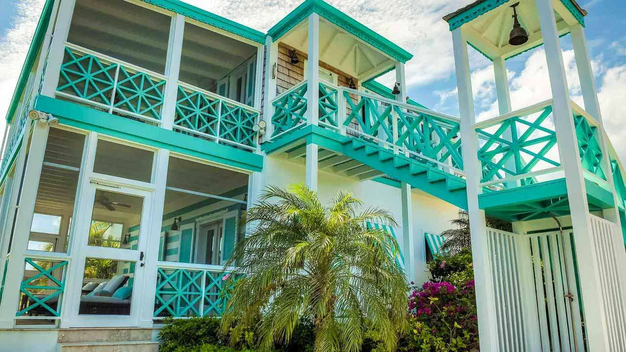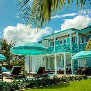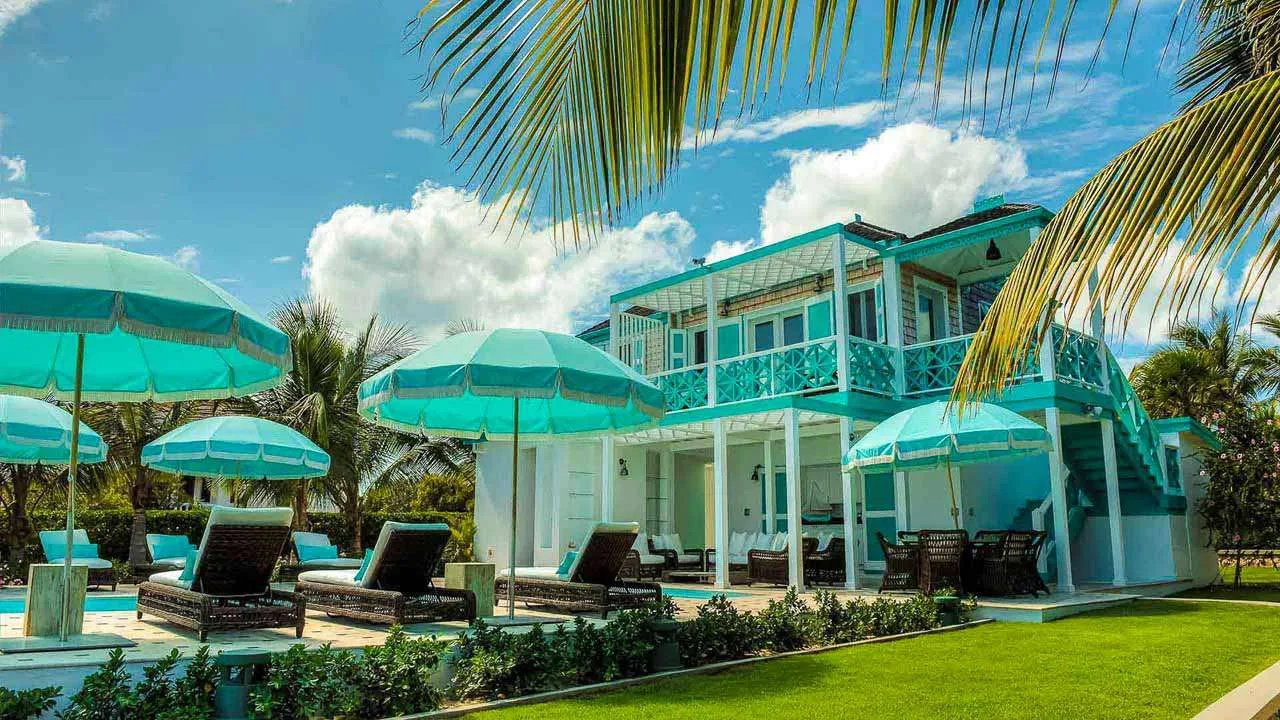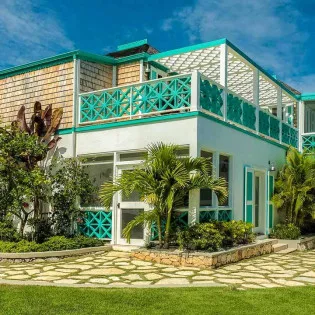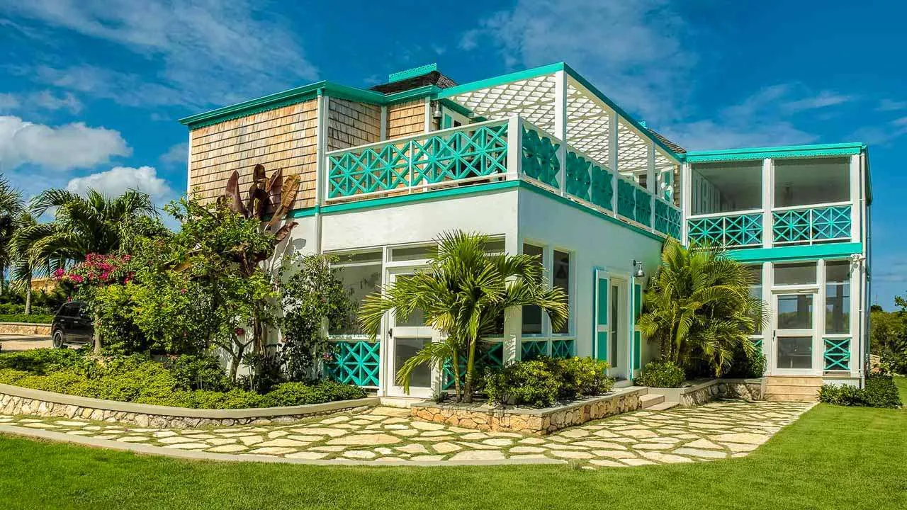 The exterior lattice and shutters are trimmed in vibrant teal and white, while inside this villa will immerse you in the ambiance of days gone by. Wooden details, plenty of Caribbean color, and wicker furnishings will immerse you in the island lifestyle.