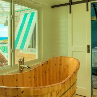 The fourth and final bedroom is on the upper level of Villa Tigh-na-Mara’s pool house. With its own kitchenette, it’s ideal for those after a bit more seclusion. A private terrace is a fantastic spot for a quiet cocktail while watching the beautiful island sunset.