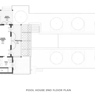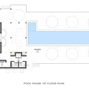 The sparkling lap pool is your own private paradise, lined with large wicker chaises for 12 guests. You could spend all day sunning yourself here, every now and then slipping into the water. The ground floor of the pool house also has a wet bar for cocktails, a screened porch, and an outdoor shower for rinsing after your dip.