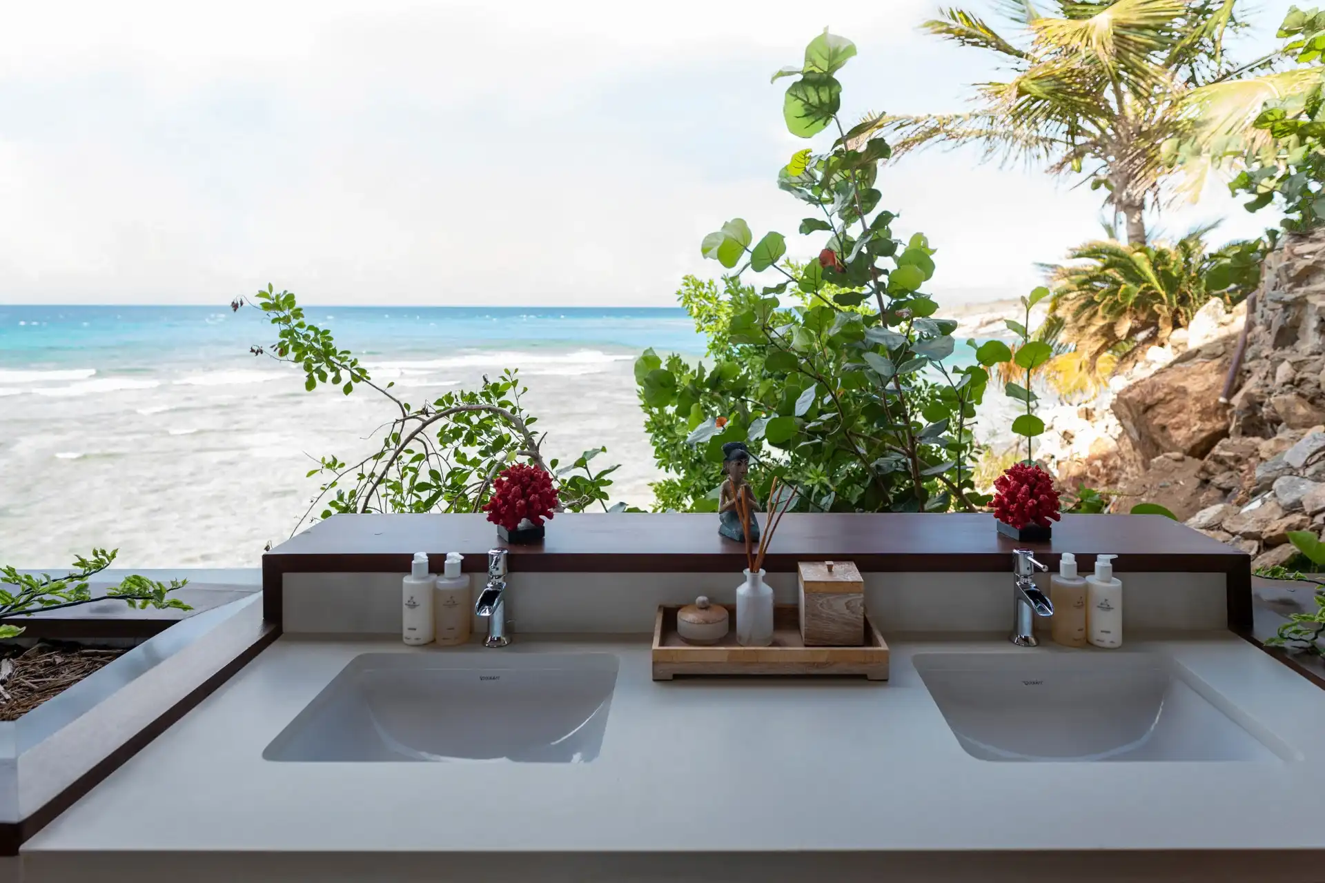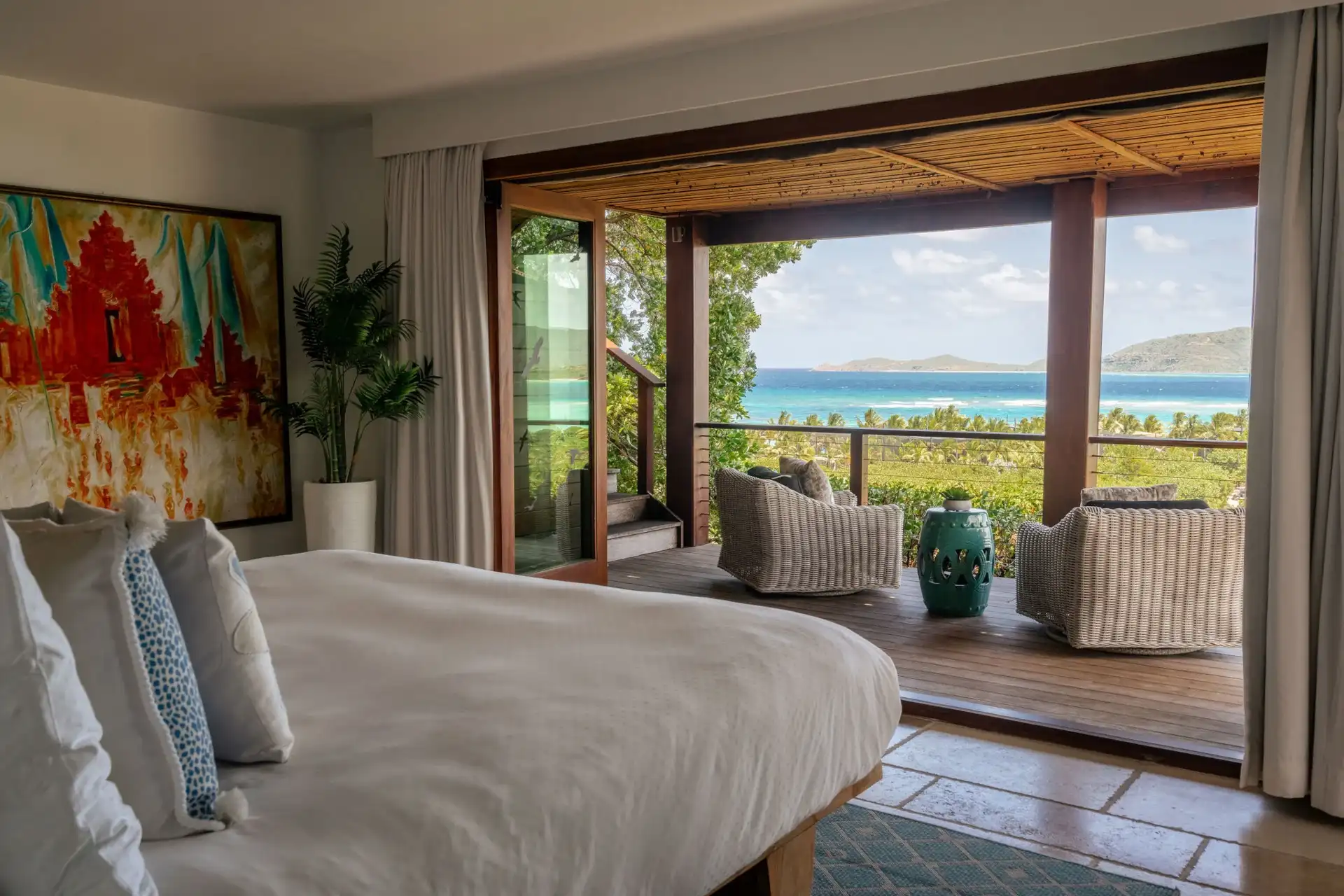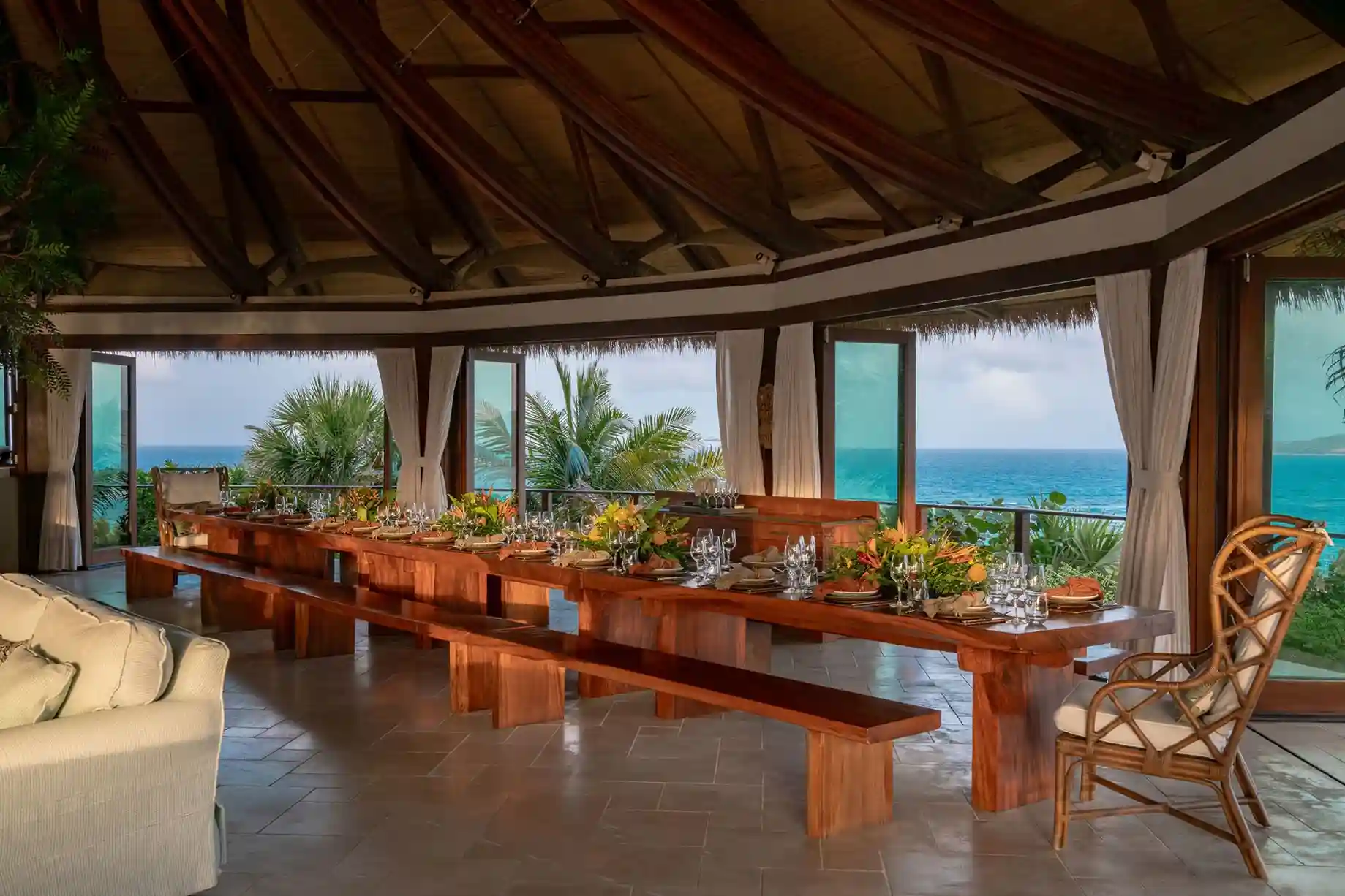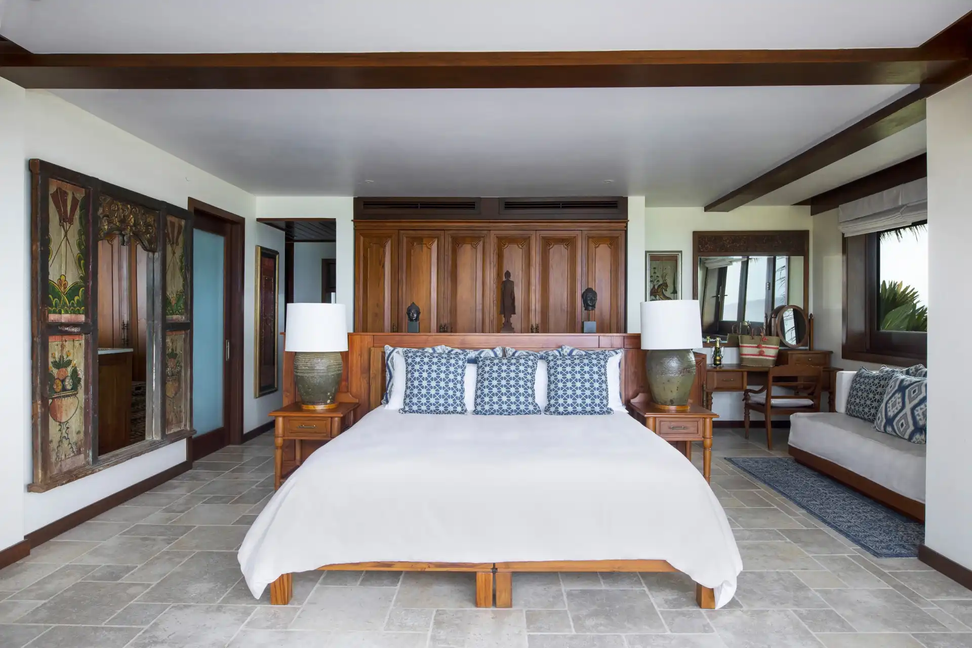 The Great House sits atop the highest point of the island, this spacious Balinese-style house boasts panoramic views of the Caribbean, the Atlantic and neighboring islands. Consisting of eleven bedrooms, including a master suite, sleeping a total of 22 guests. The bedrooms in the Great House have incredible ocean views, king-size beds (most convert to twins), and some feature outdoor showers. A few are interconnecting with a mini bar, making them ideal for families.