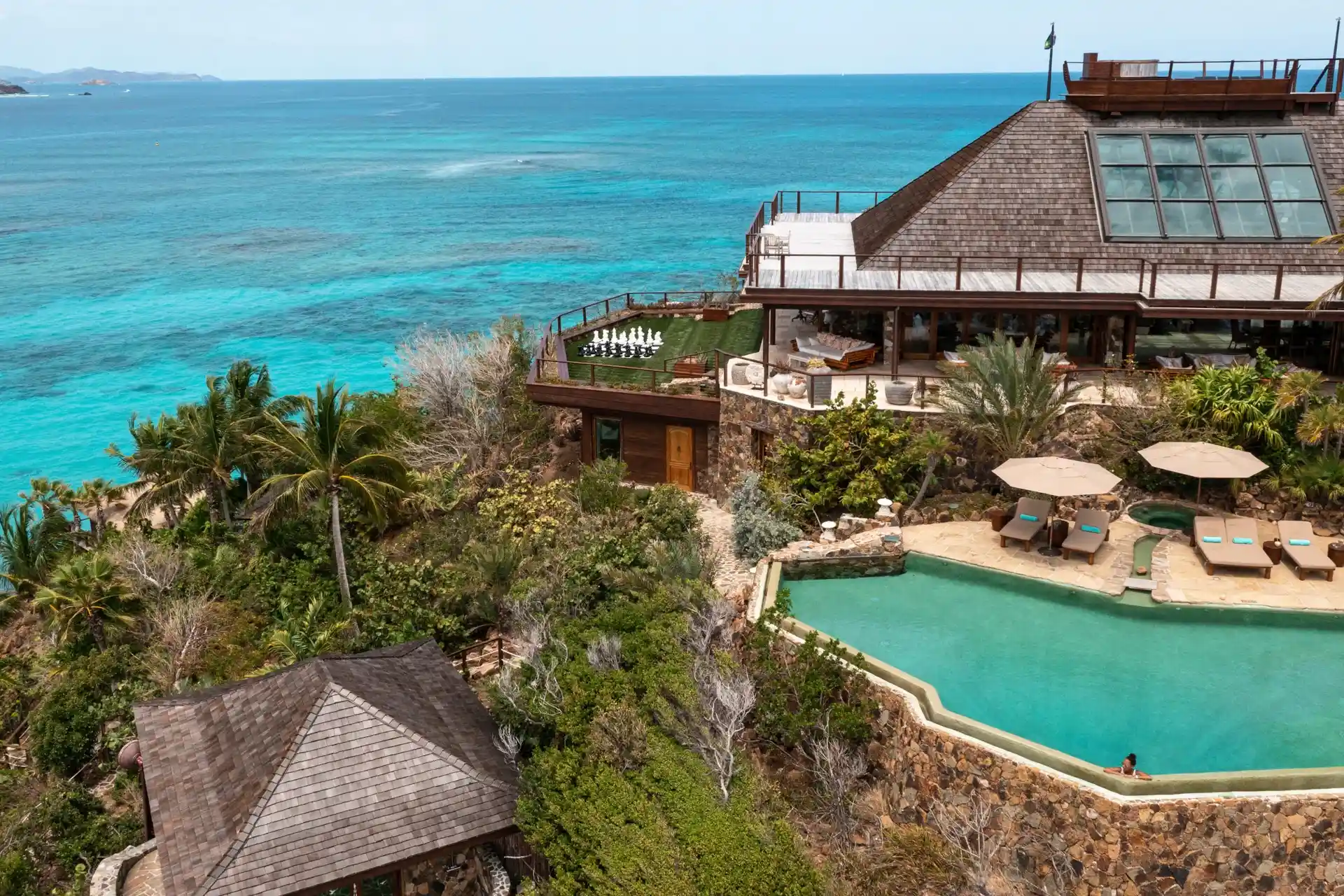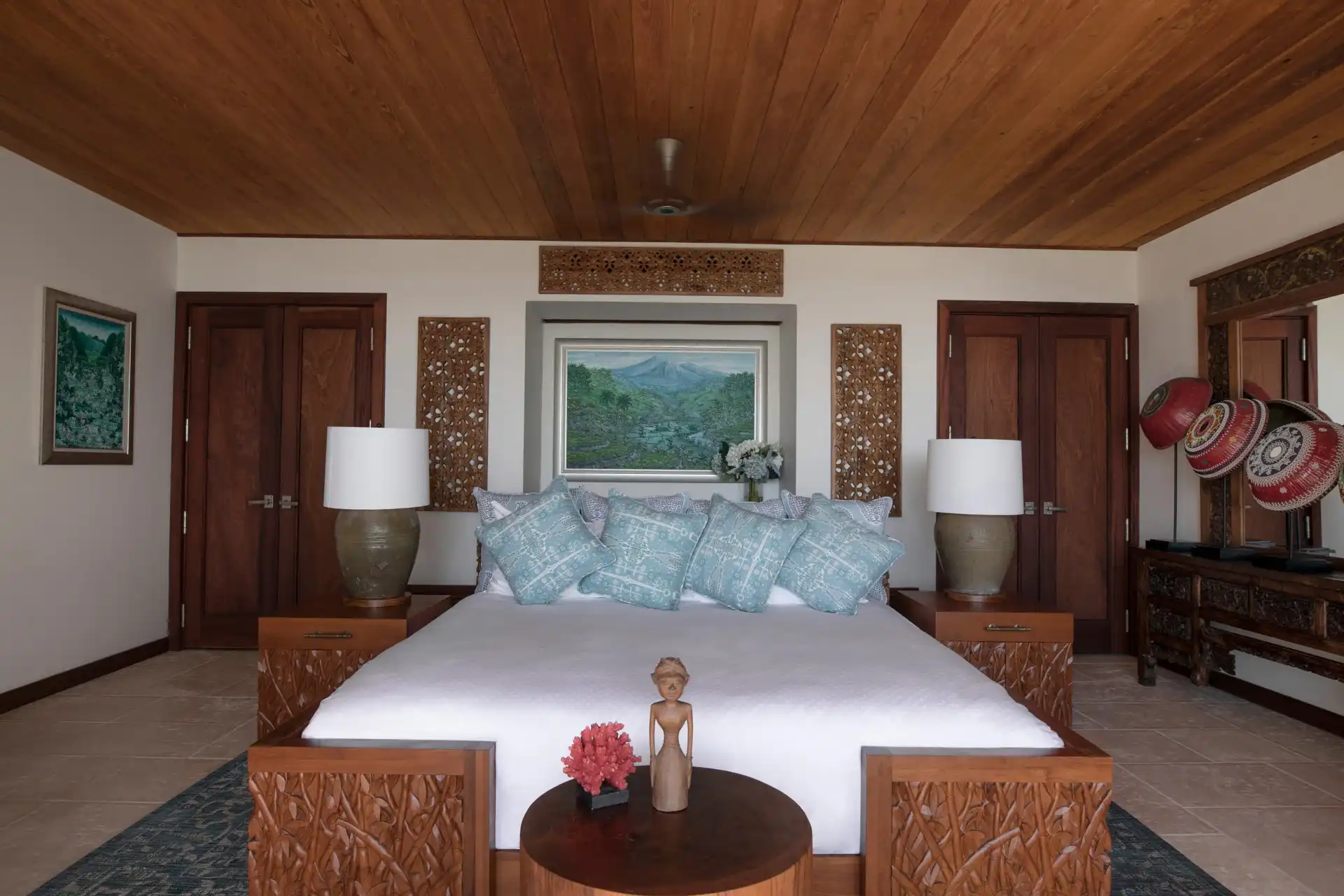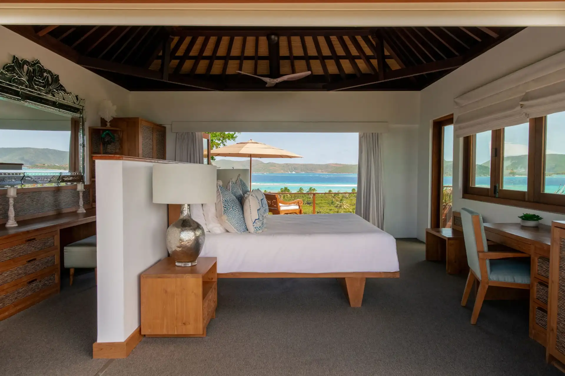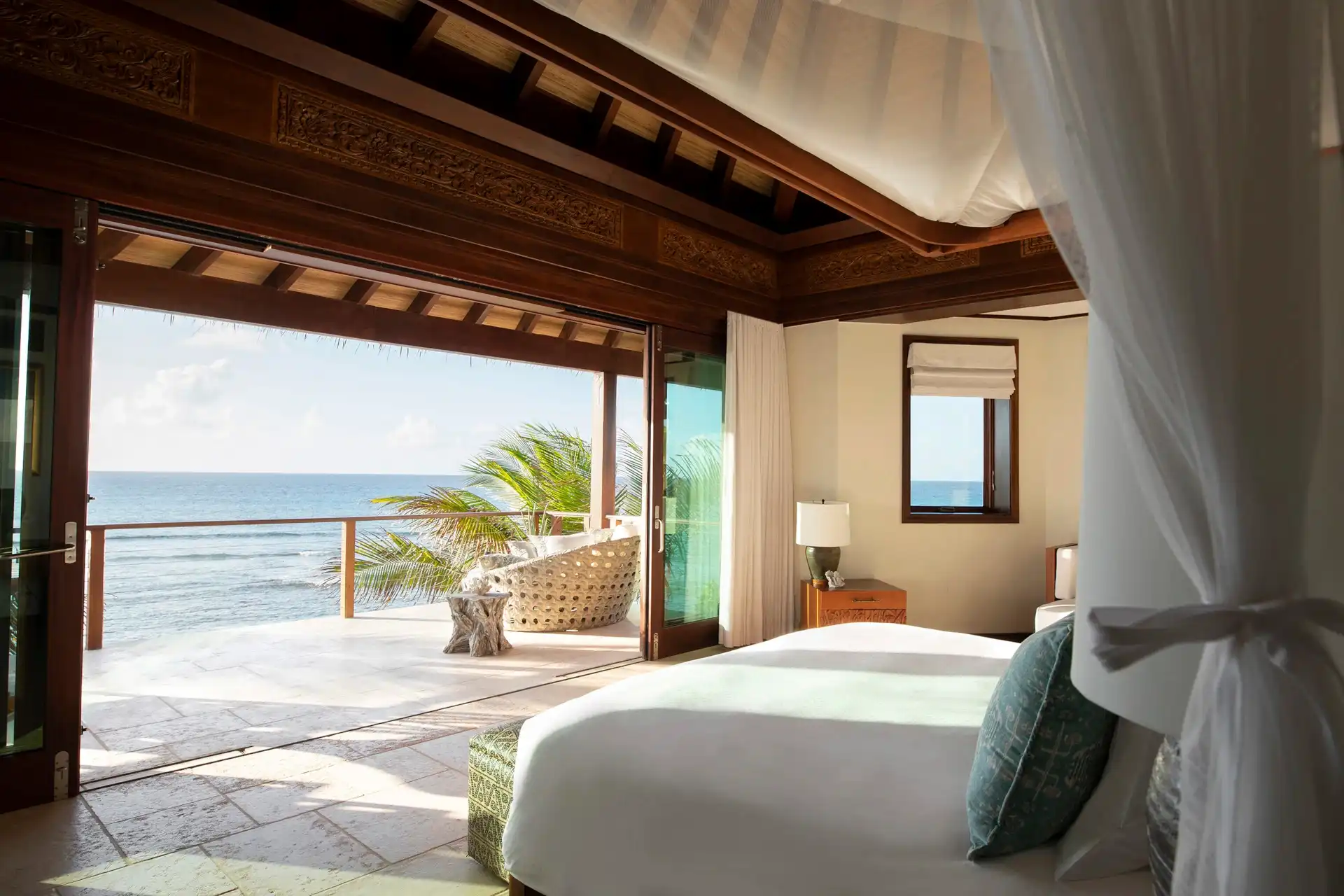 The Great House sits atop the highest point of the island, this spacious Balinese-style house boasts panoramic views of the Caribbean, the Atlantic and neighboring islands. Consisting of eleven bedrooms, including a master suite, sleeping a total of 22 guests. The bedrooms in the Great House have incredible ocean views, king-size beds (most convert to twins), and some feature outdoor showers. A few are interconnecting with a mini bar, making them ideal for families.