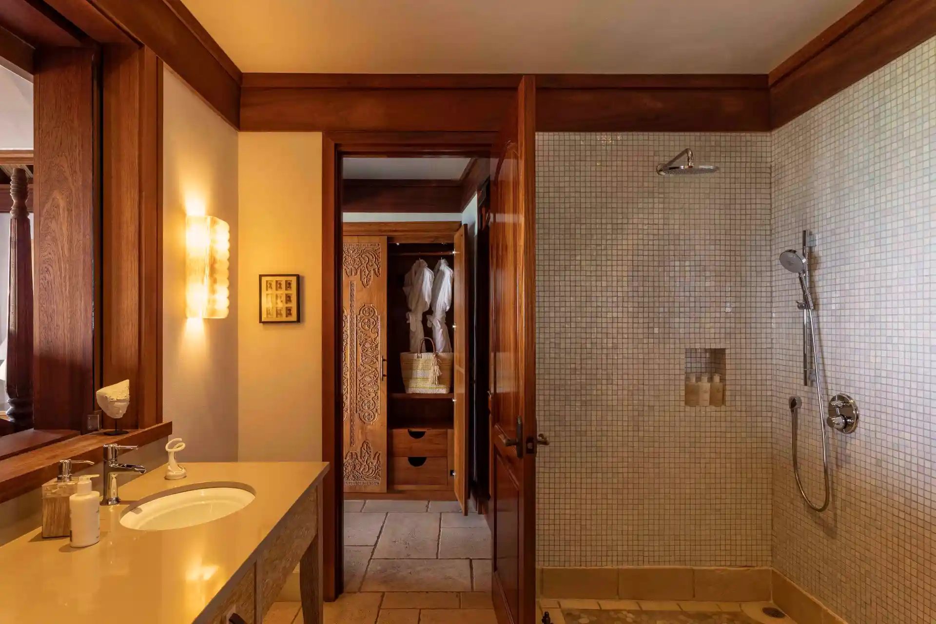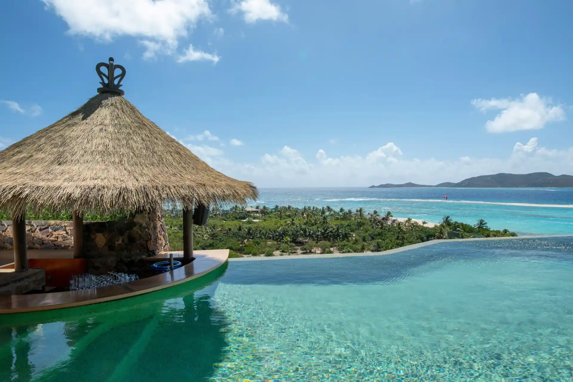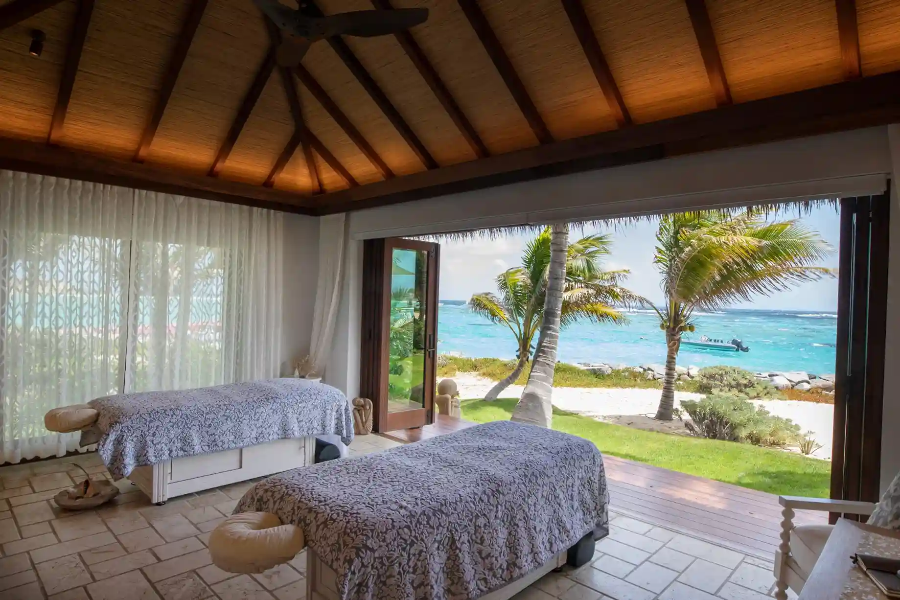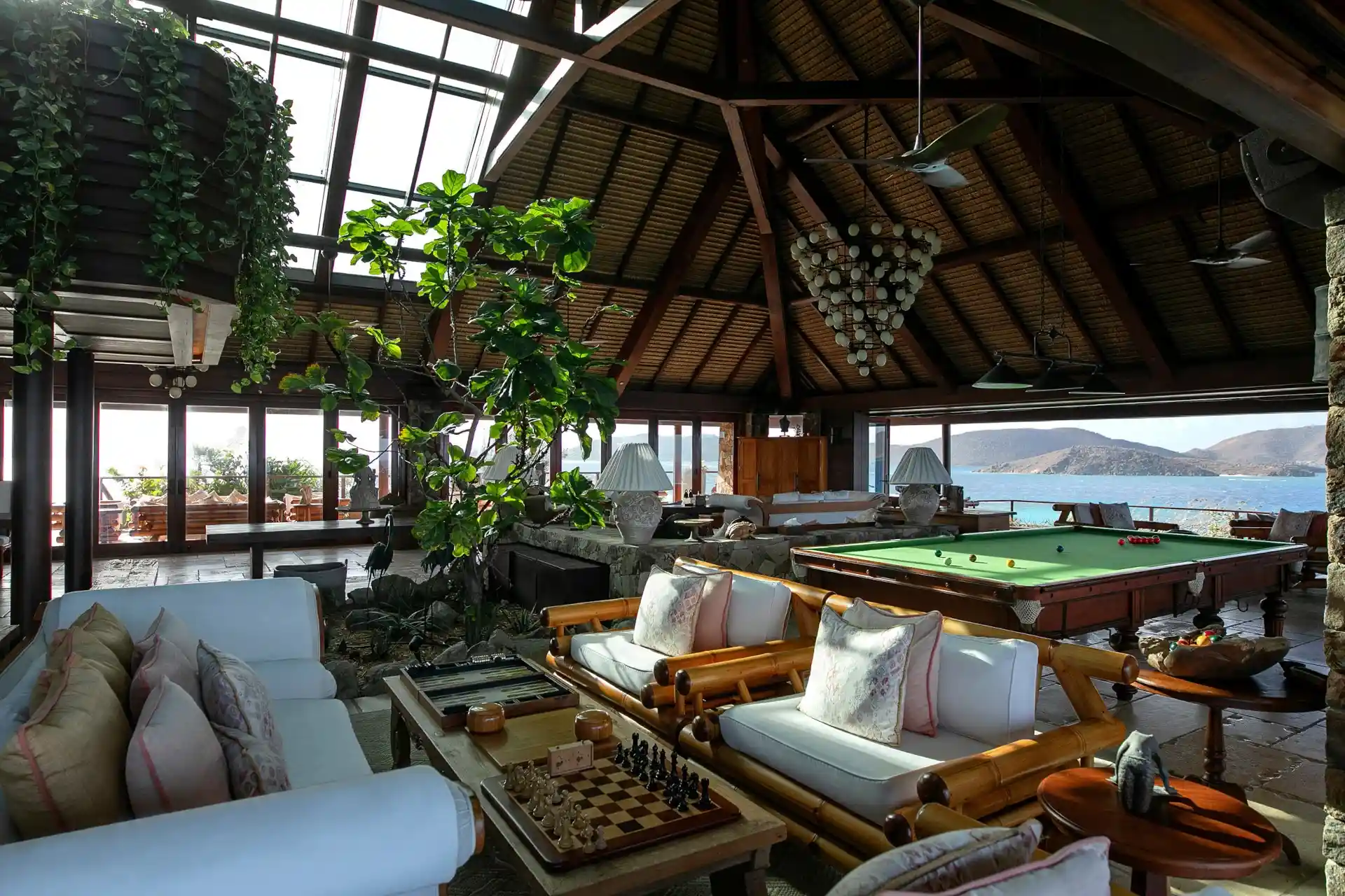 The Great House sits atop the highest point of the island, this spacious Balinese-style house boasts panoramic views of the Caribbean, the Atlantic and neighboring islands. Consisting of eleven bedrooms, including a master suite, sleeping a total of 22 guests. The bedrooms in the Great House have incredible ocean views, king-size beds (most convert to twins), and some feature outdoor showers. A few are interconnecting with a mini bar, making them ideal for families.