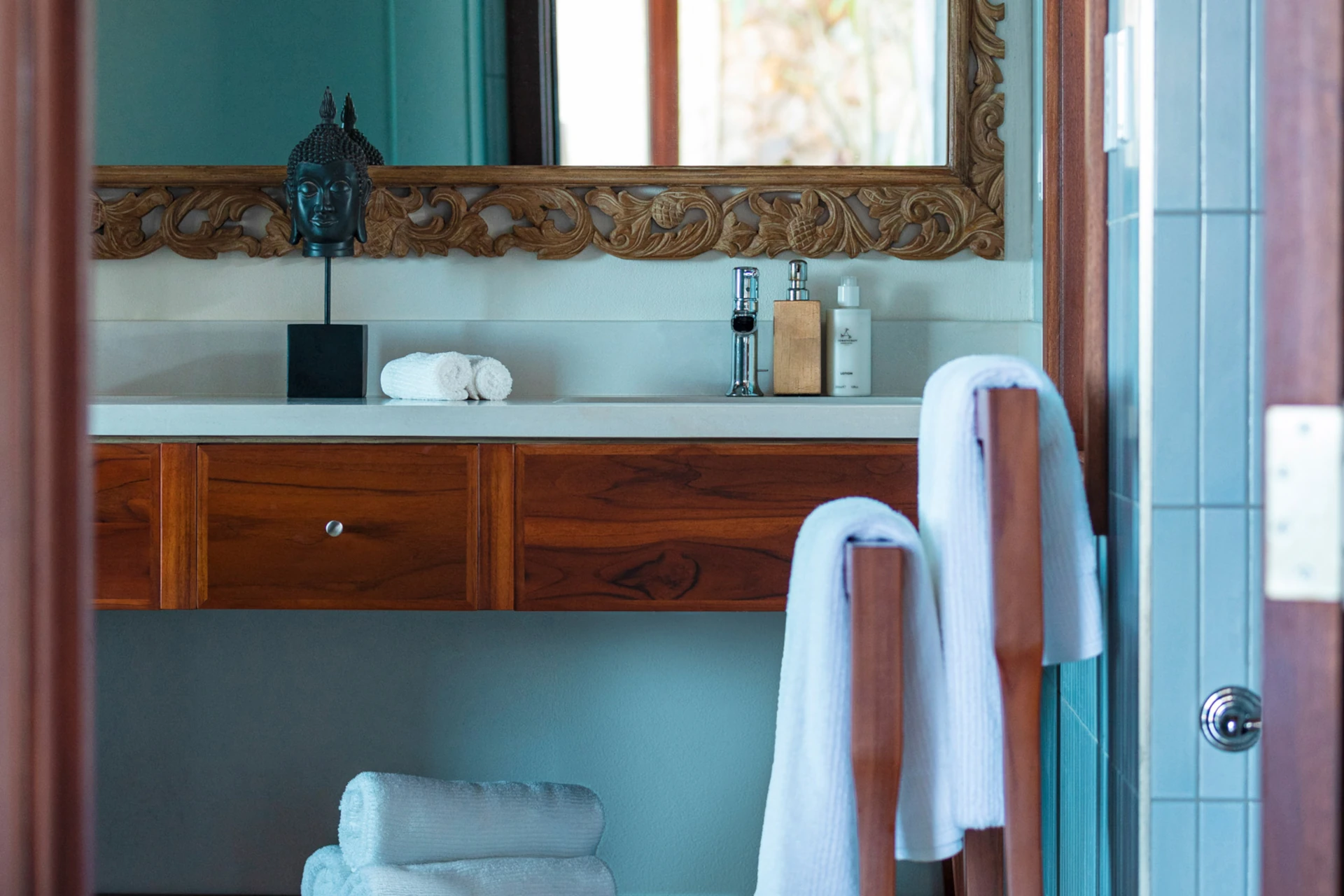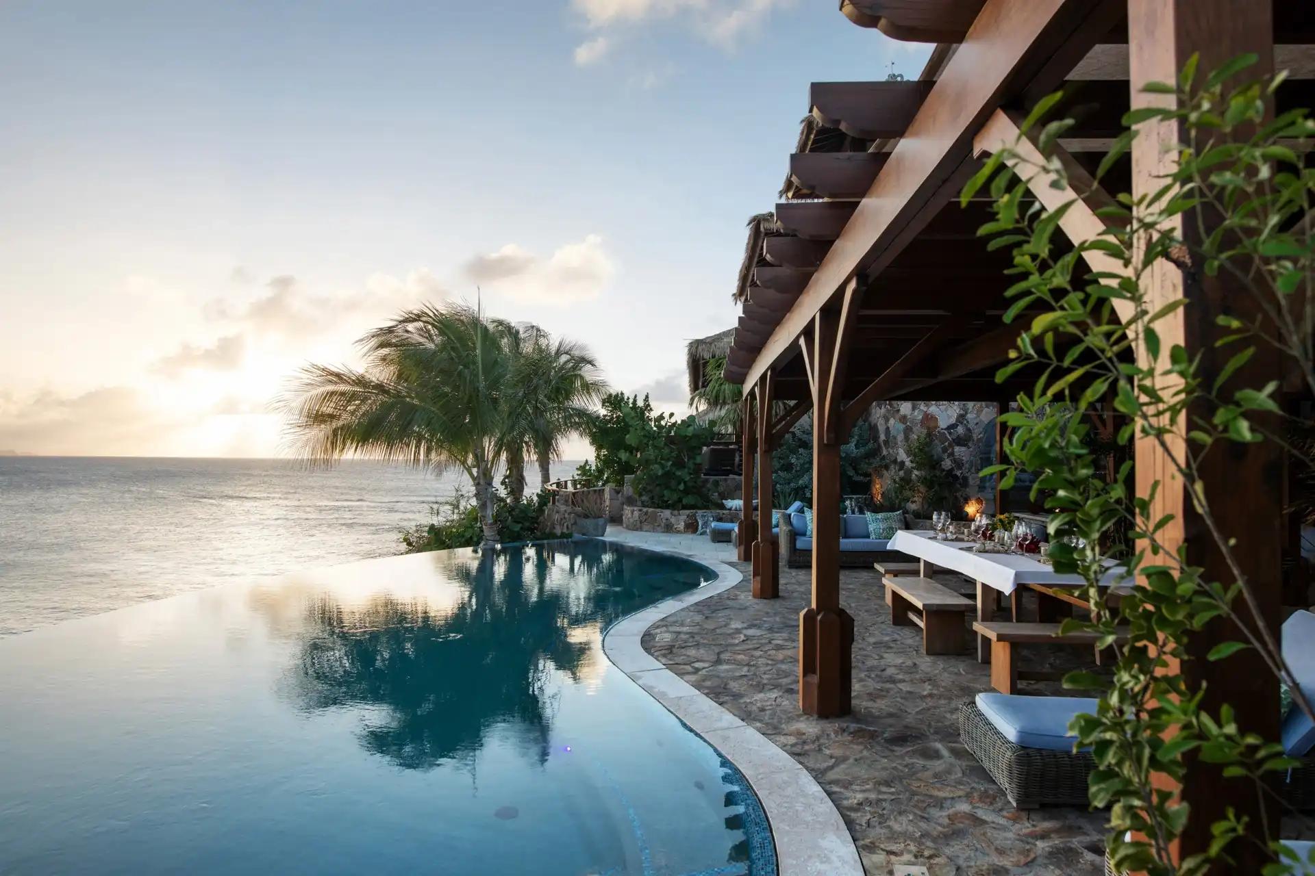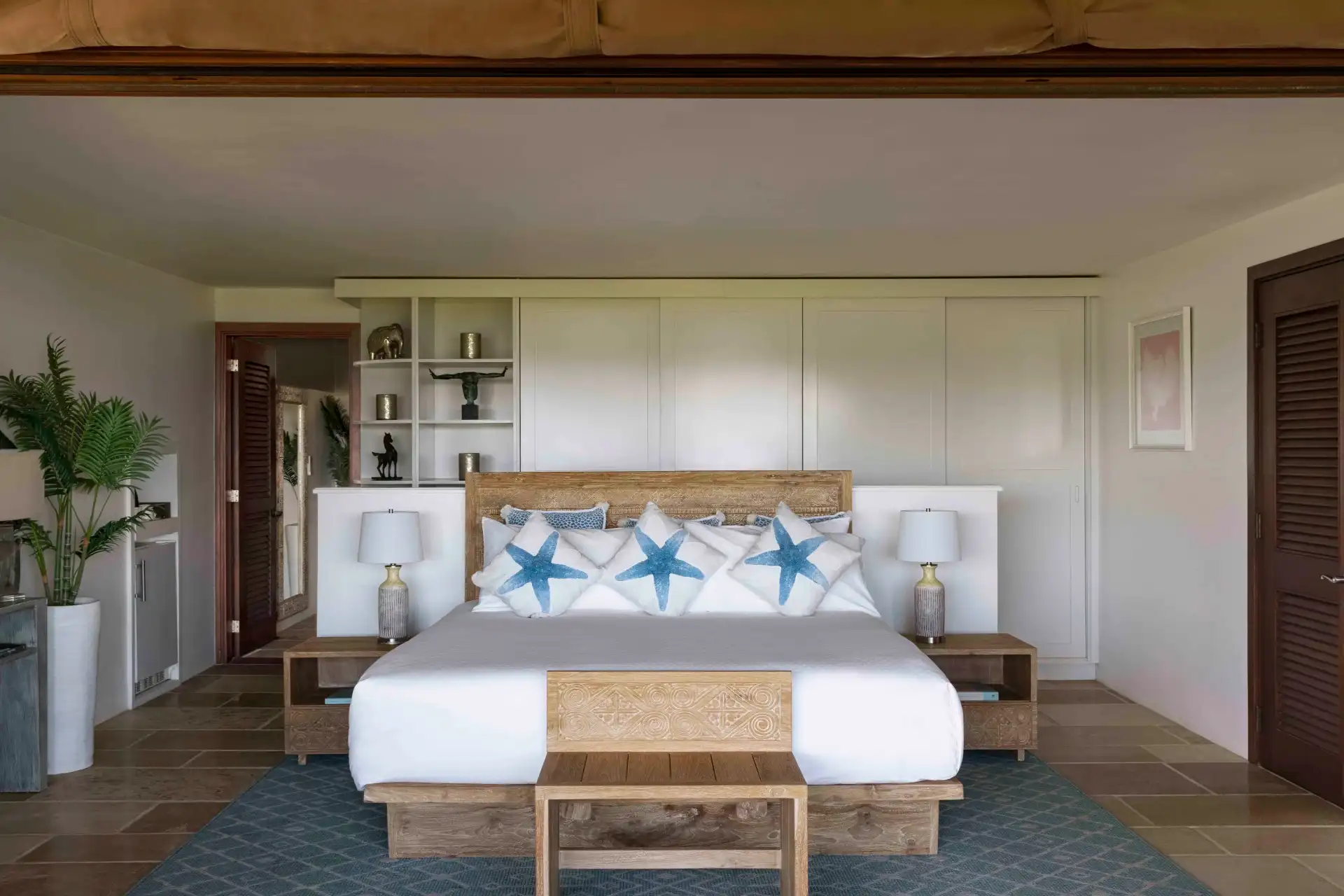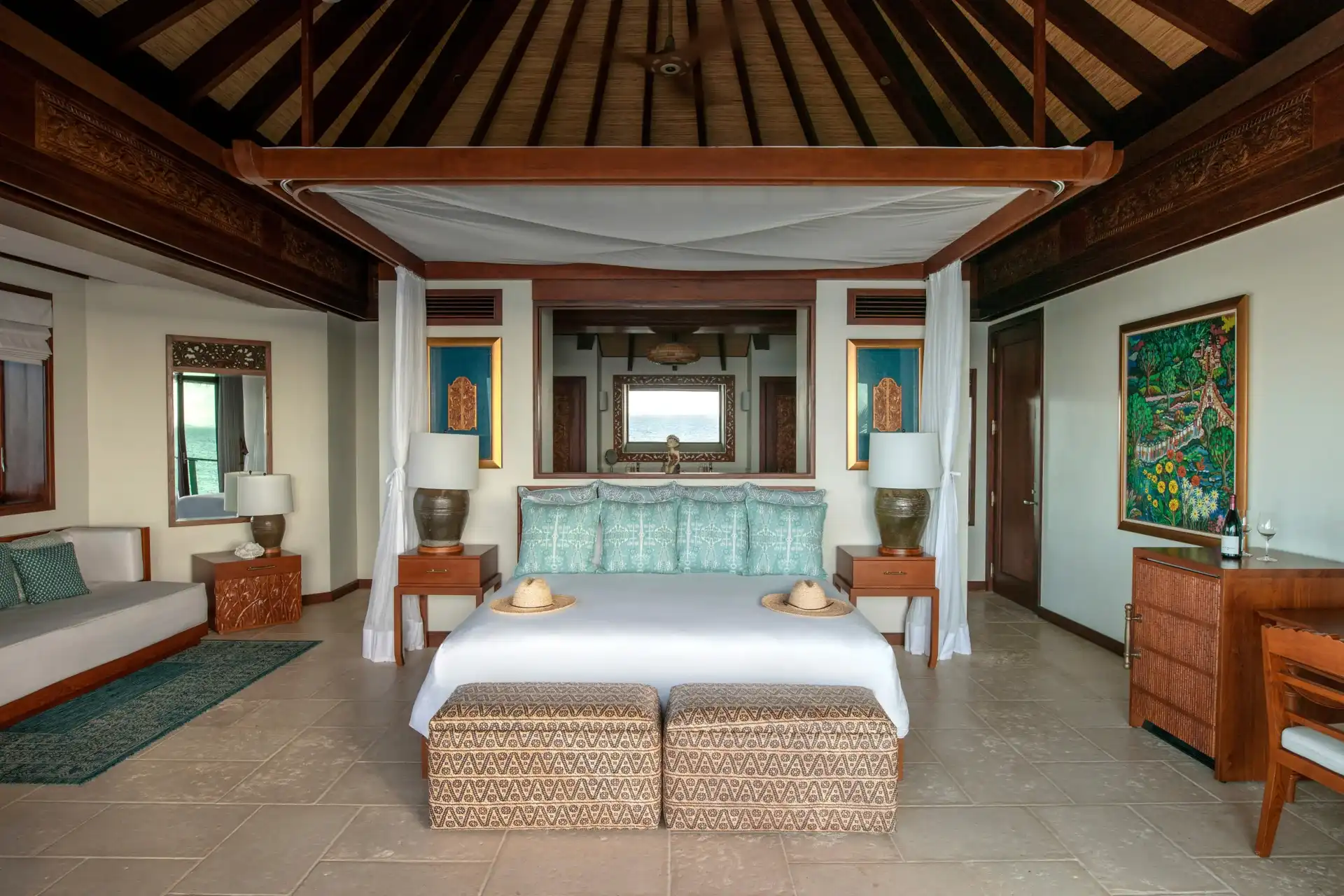 The Great House sits atop the highest point of the island, this spacious Balinese-style house boasts panoramic views of the Caribbean, the Atlantic and neighboring islands. Consisting of eleven bedrooms, including a master suite, sleeping a total of 22 guests. The bedrooms in the Great House have incredible ocean views, king-size beds (most convert to twins), and some feature outdoor showers. A few are interconnecting with a mini bar, making them ideal for families.