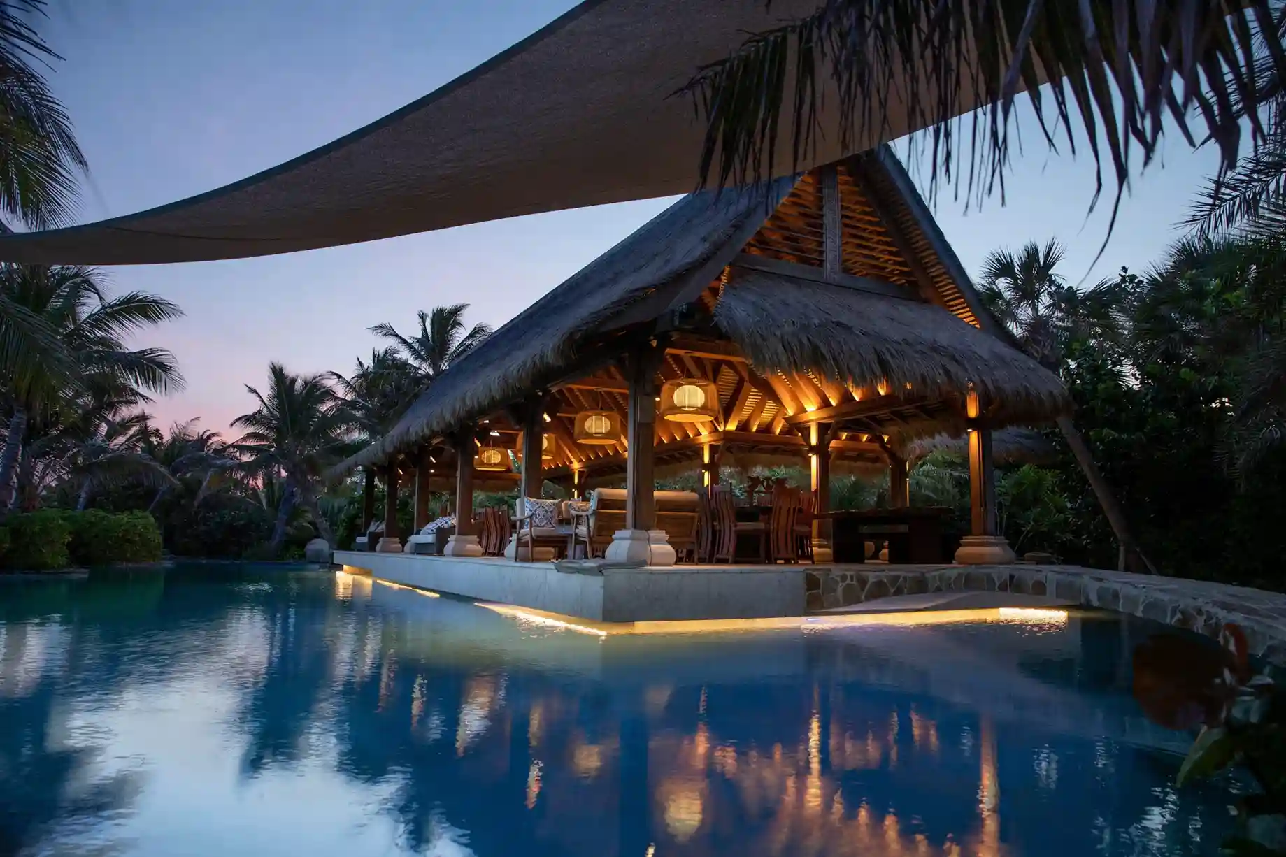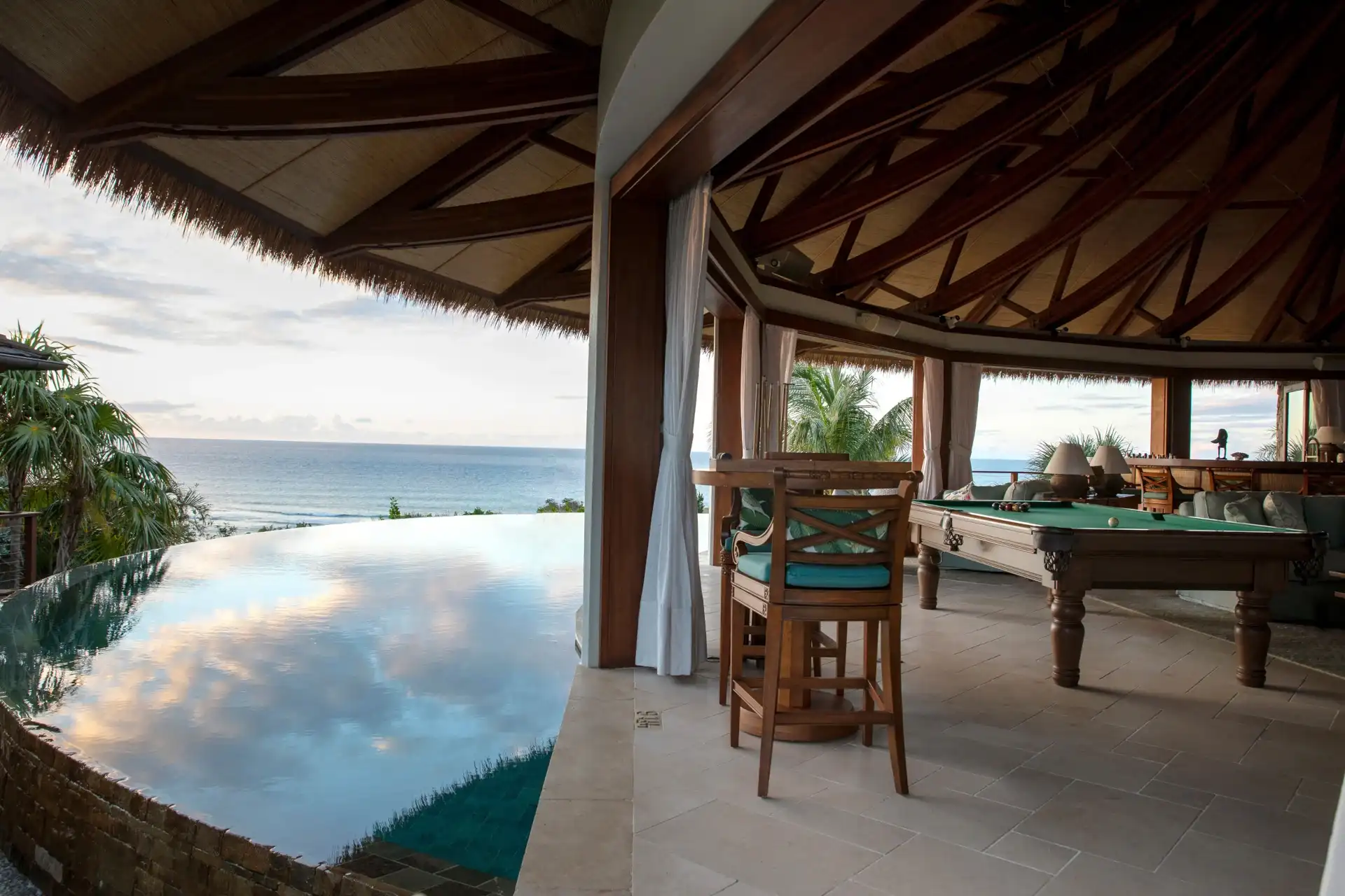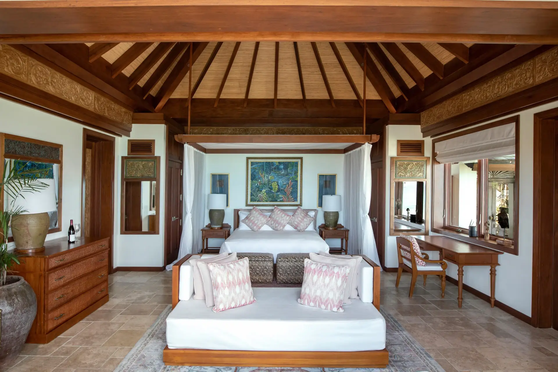 Temple House is situated in the middle of the island, and is made up of four Balinese-style bedrooms and Elders Temple. Elders Temple is a shared space with an infinity pool, huge open-plan dining, bar and lounge area.