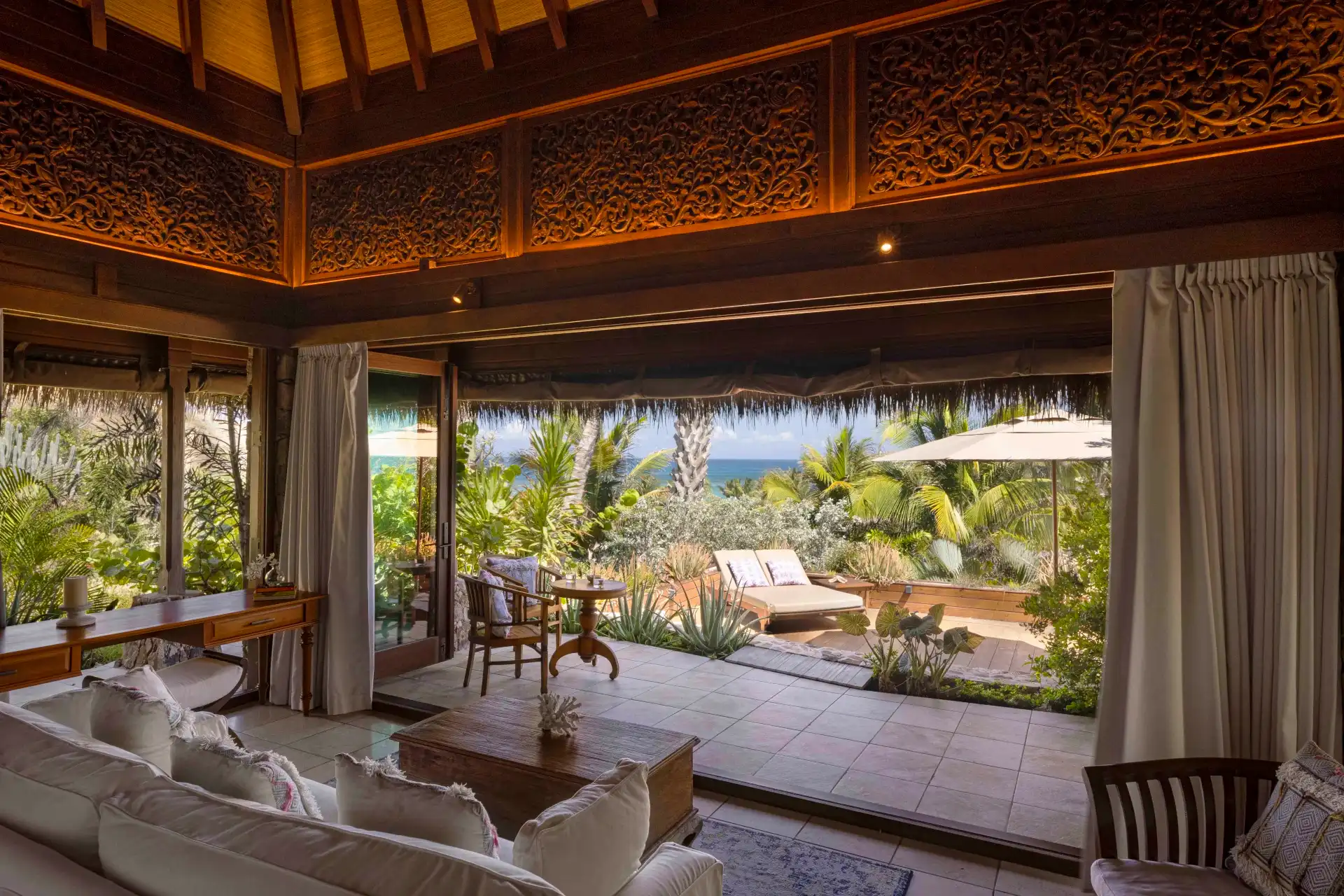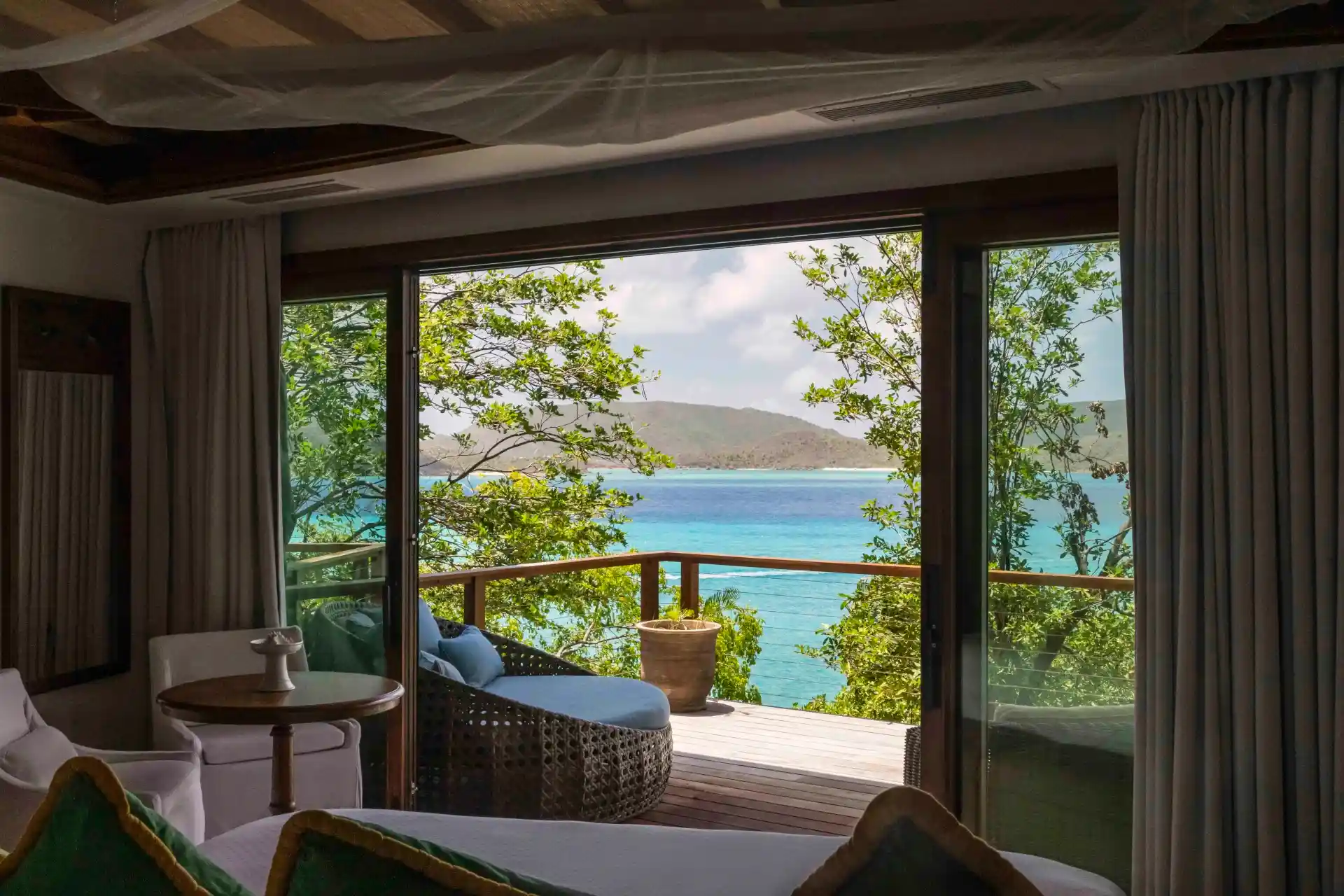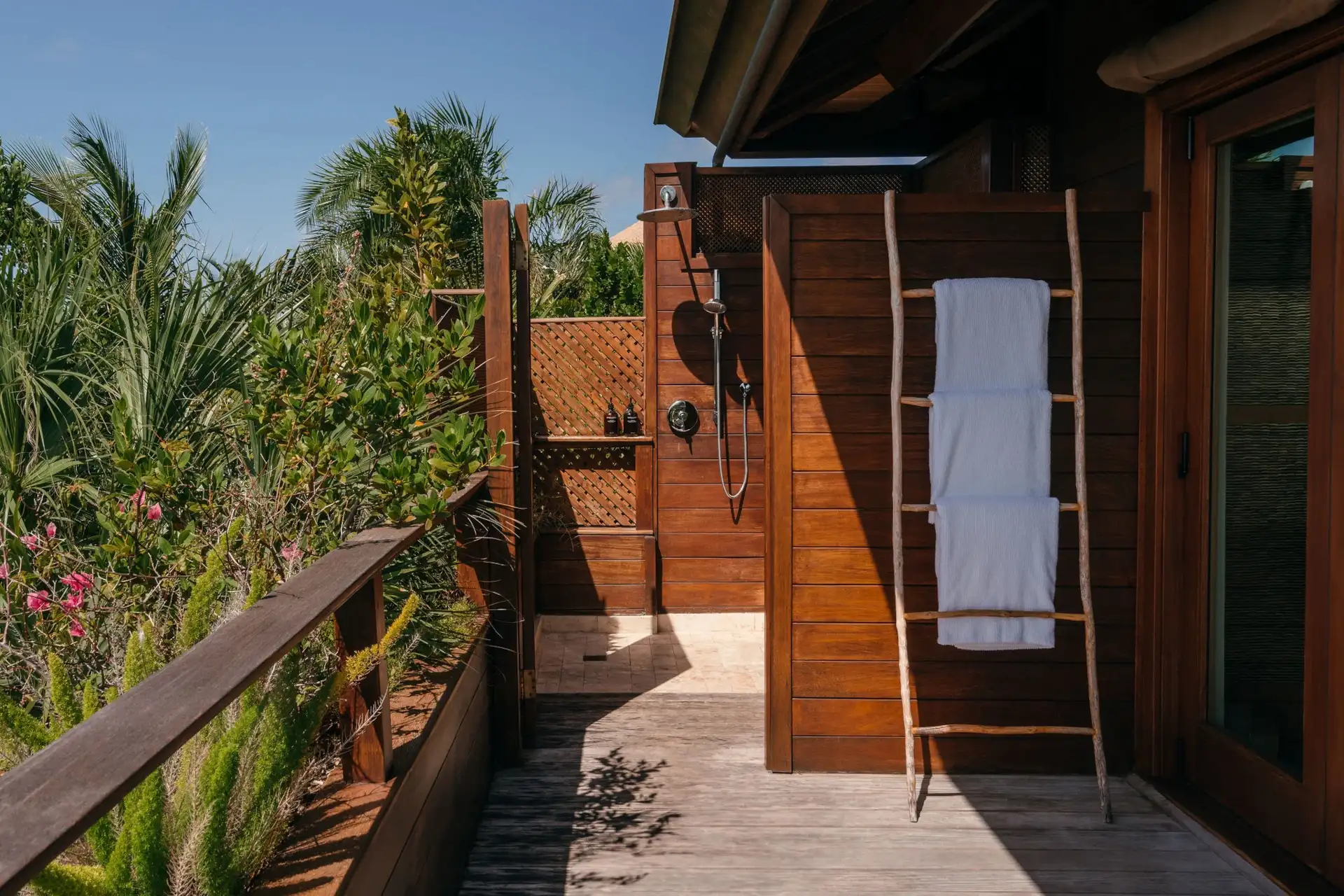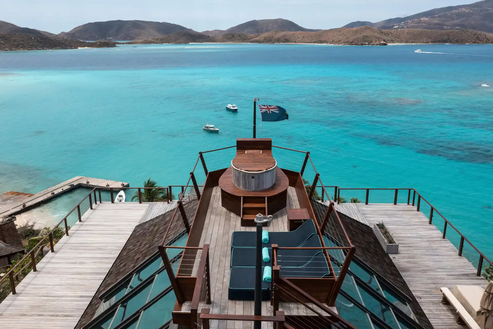Leha Lo is perched high on the rocks, 81 steps above the Great House, this private, standalone double bedroom features a wraparound terrace with breathtaking 180-degree sea views and an outdoor shower.