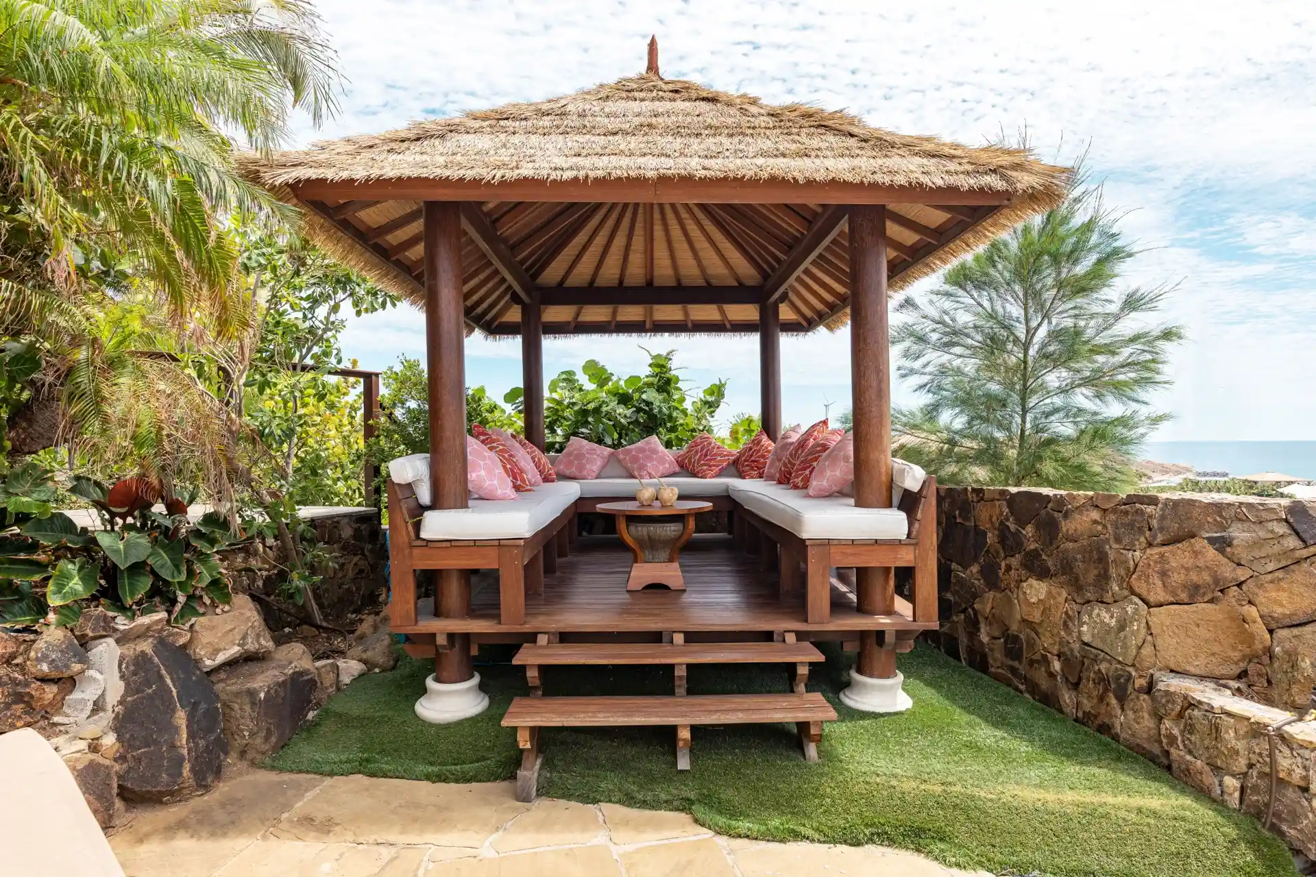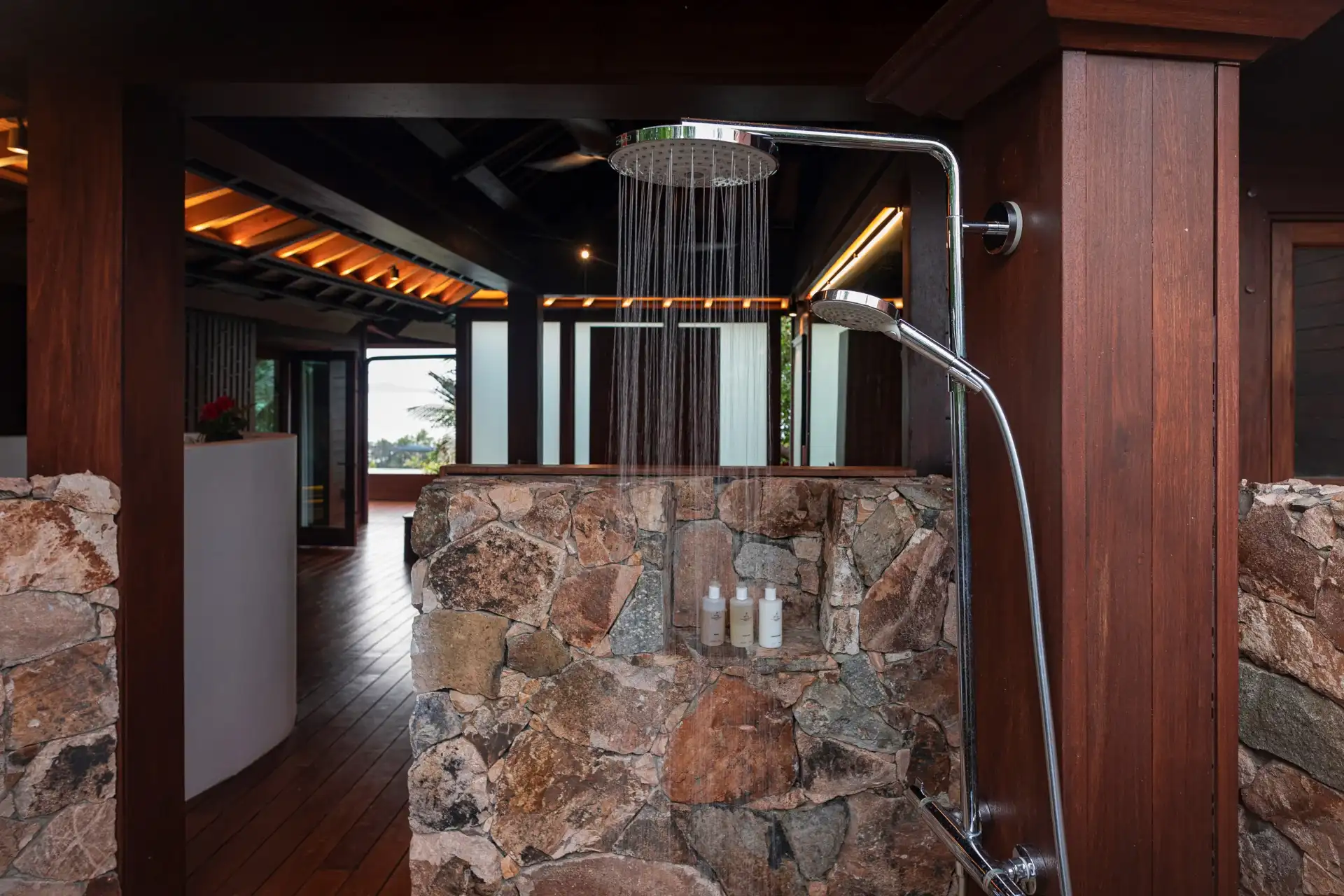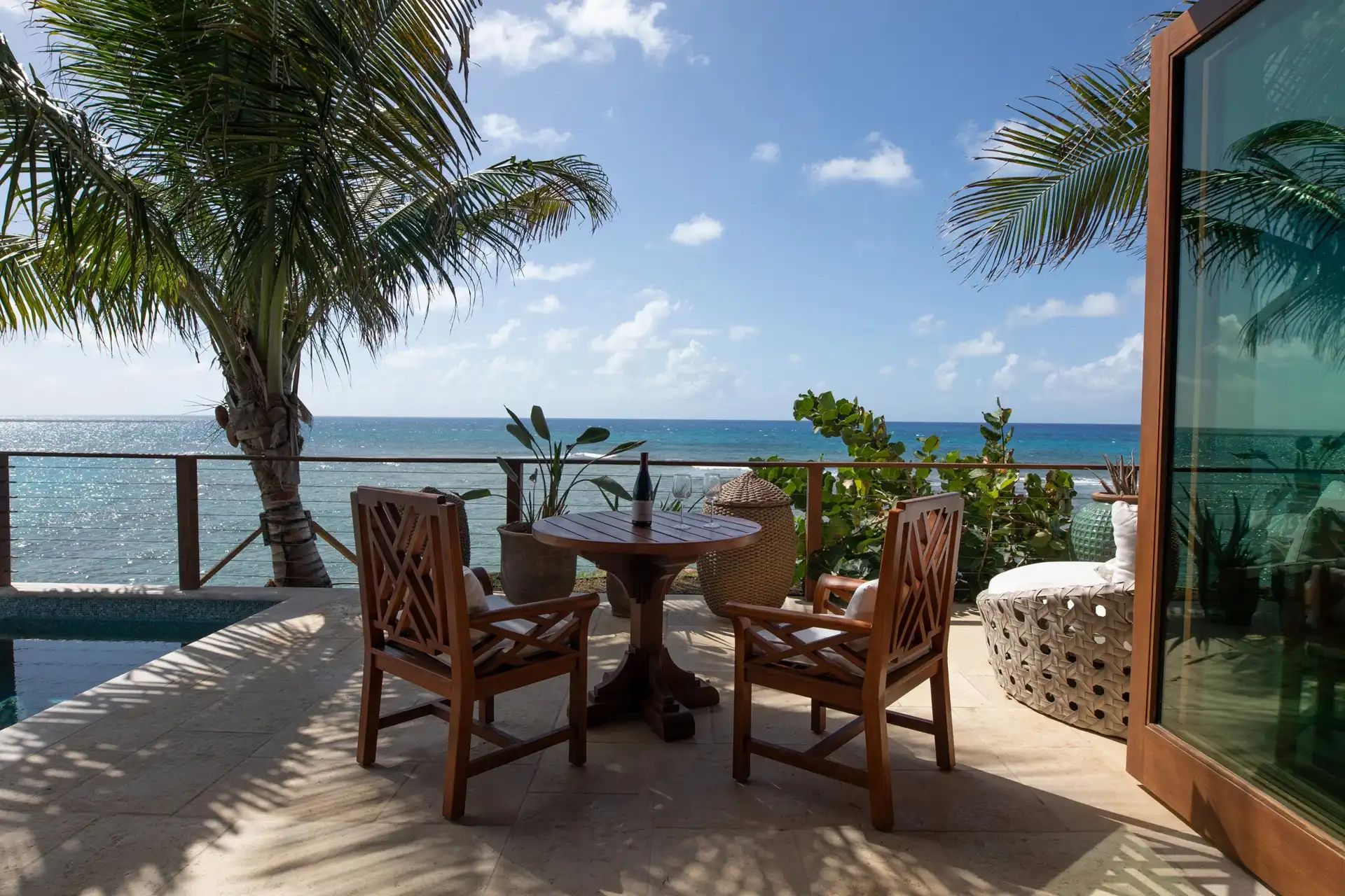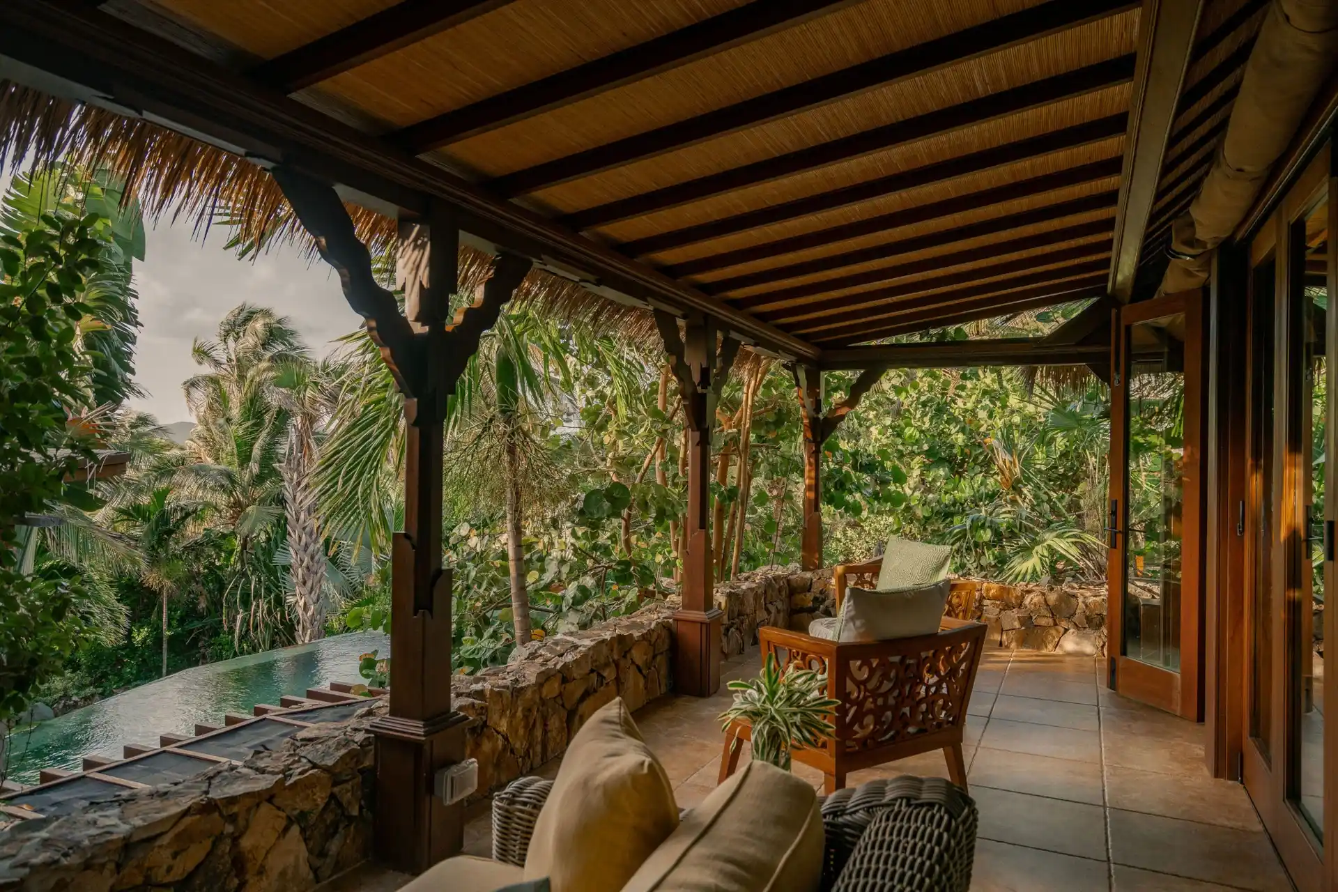 Leha Lo is perched high on the rocks, 81 steps above the Great House, this private, standalone double bedroom features a wraparound terrace with breathtaking 180-degree sea views and an outdoor shower.