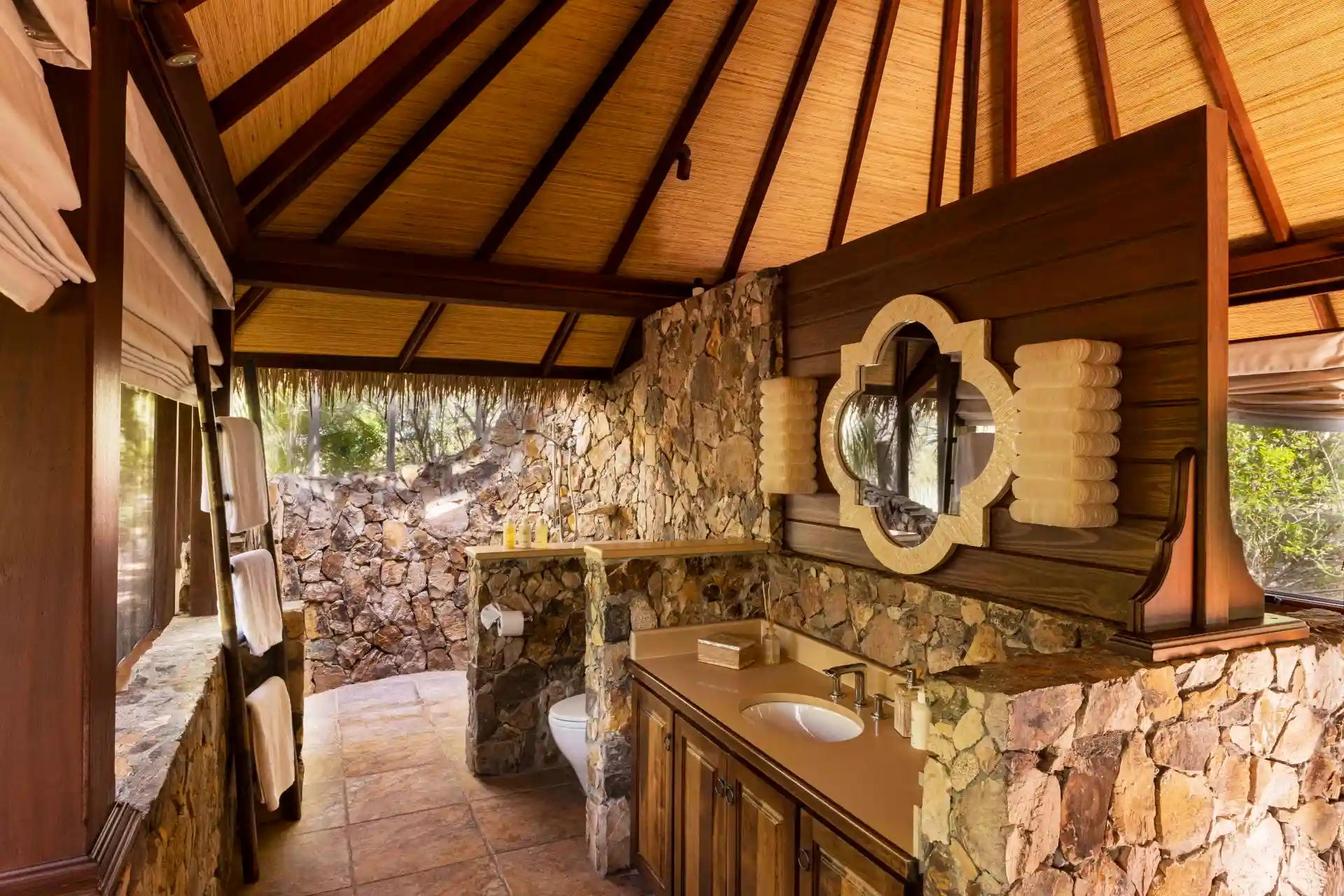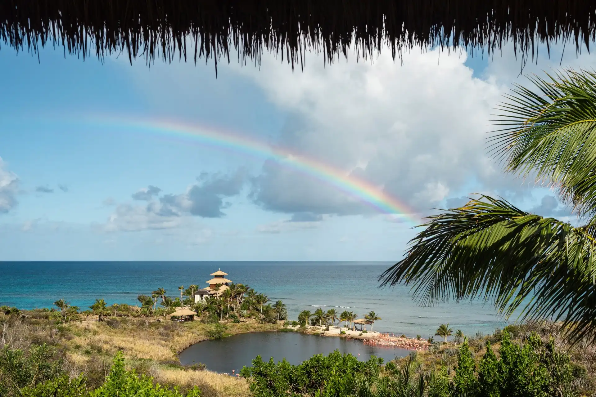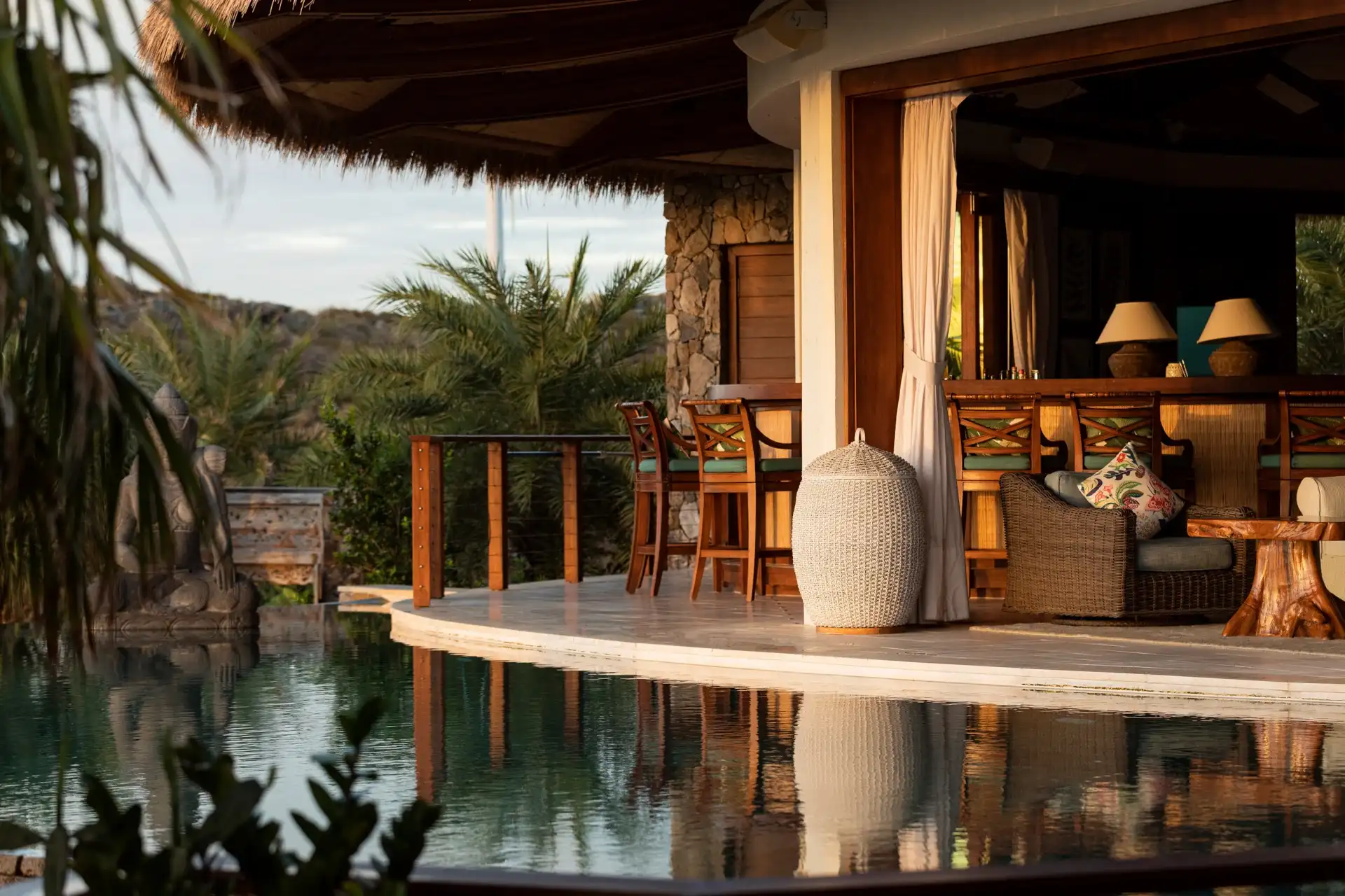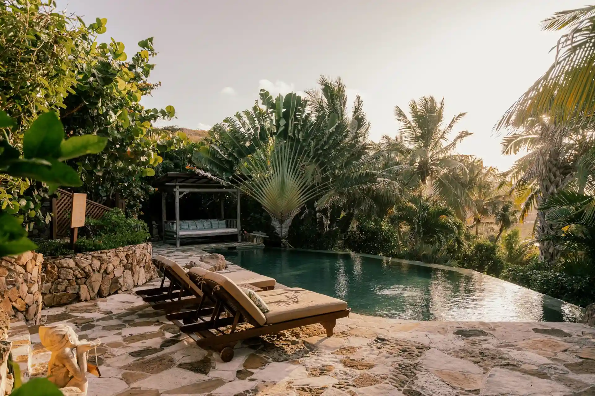 Leha Lo is perched high on the rocks, 81 steps above the Great House, this private, standalone double bedroom features a wraparound terrace with breathtaking 180-degree sea views and an outdoor shower.