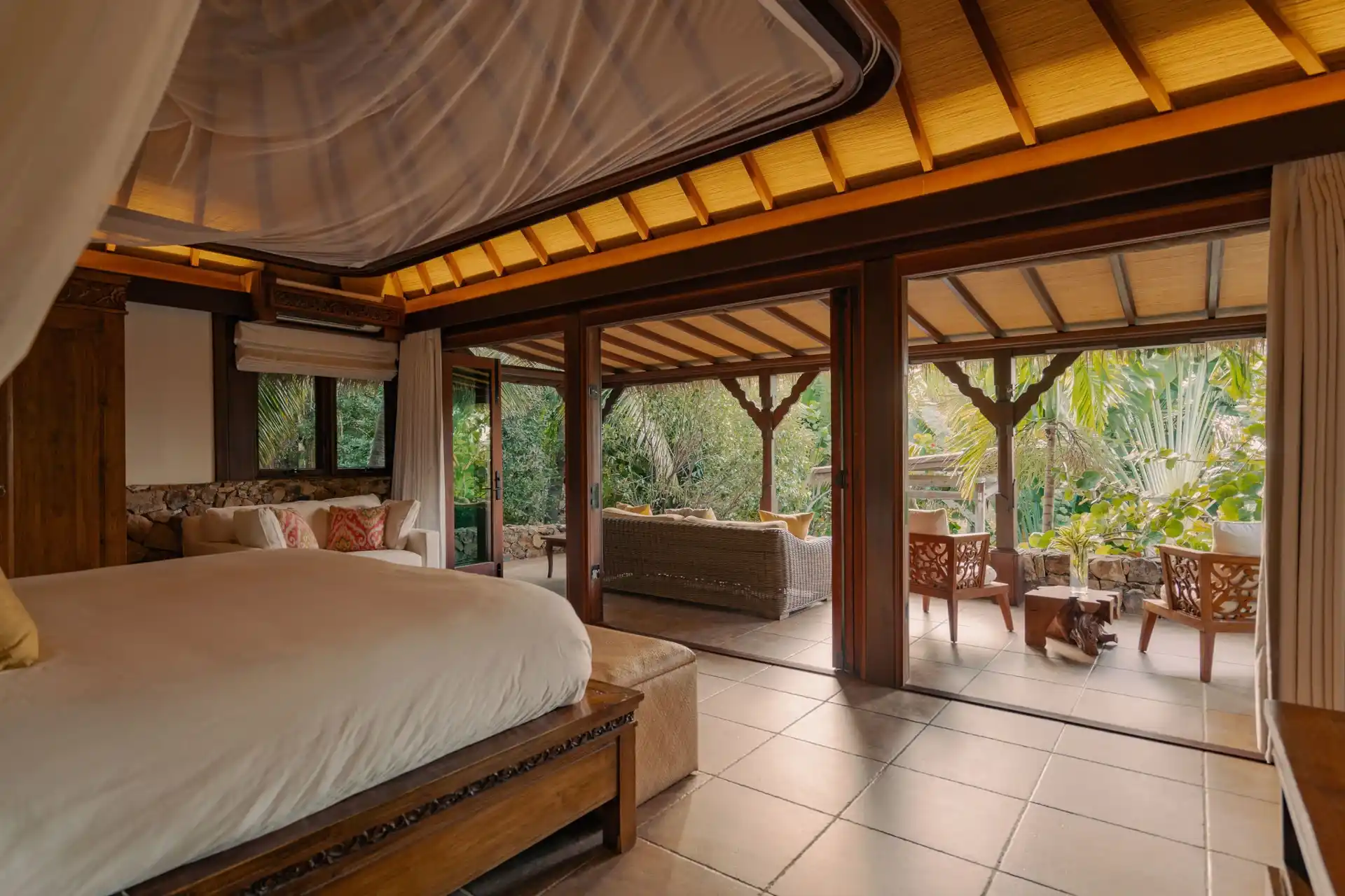 Bali Lo Complex sleeps up to six guests across three Balinese-style houses, and is nestled near the island’s center. Seamlessly blending into the tropical surroundings, this house features a shared pool.