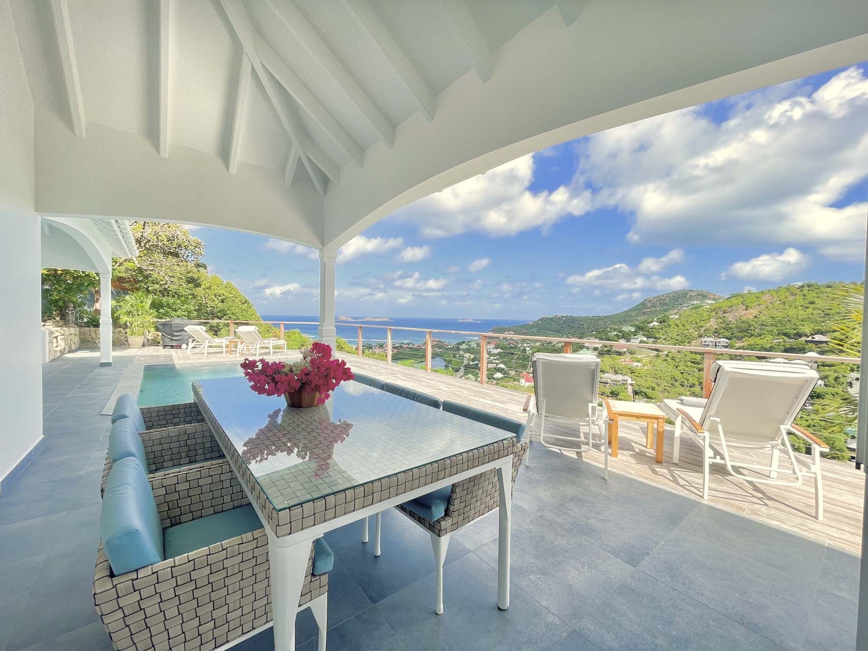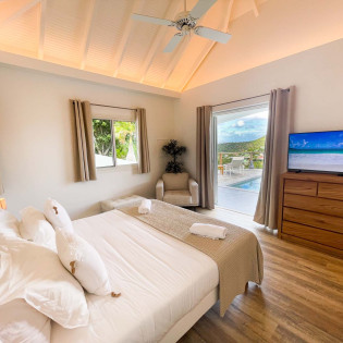 Villa Adal, (villa code: WV DAL) is a charming 2-bedroom villa located on the hillside of St. Jean. The bright and modern interiors feature a fully-equipped kitchen, dining area, and cozy living room that opens onto the pool deck with breathtaking views of the bay and lush greenery. The covered outdoor dining space provides an opportunity to dine al fresco in the tropical breeze.