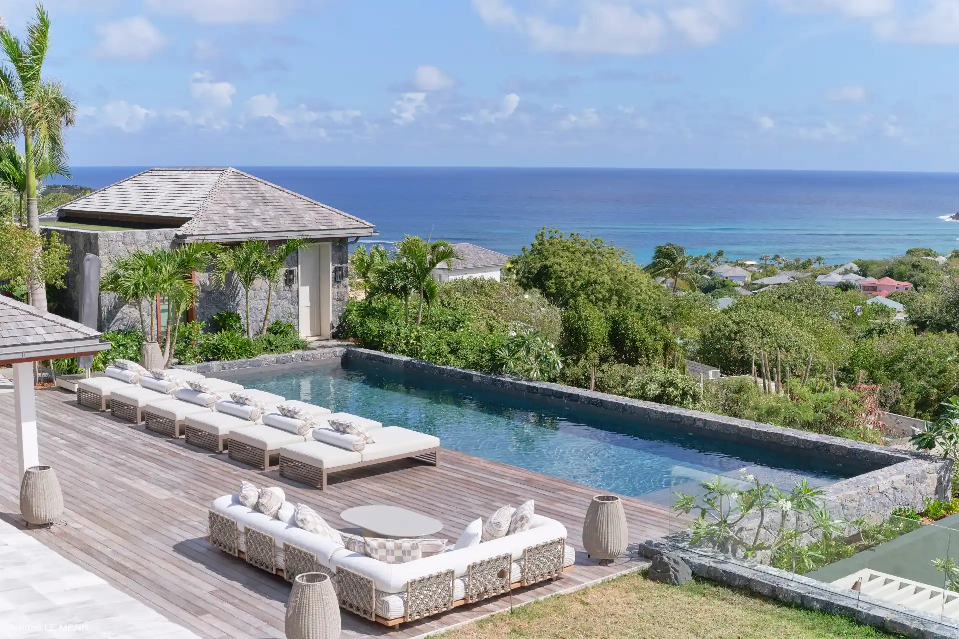 Set on the sought-after heights of Marigot, Villa Alisea (villa code: WV ALI) is a 4+1-bedroom retreat that invites you to experience the true essence of St. Barts, with breathtaking views over the Grand Cul de Sac lagoon. From the moment you arrive, the tone is set: elegant architecture blending stone and wood, noble materials, and a warm atmosphere that feels both refined and inviting.