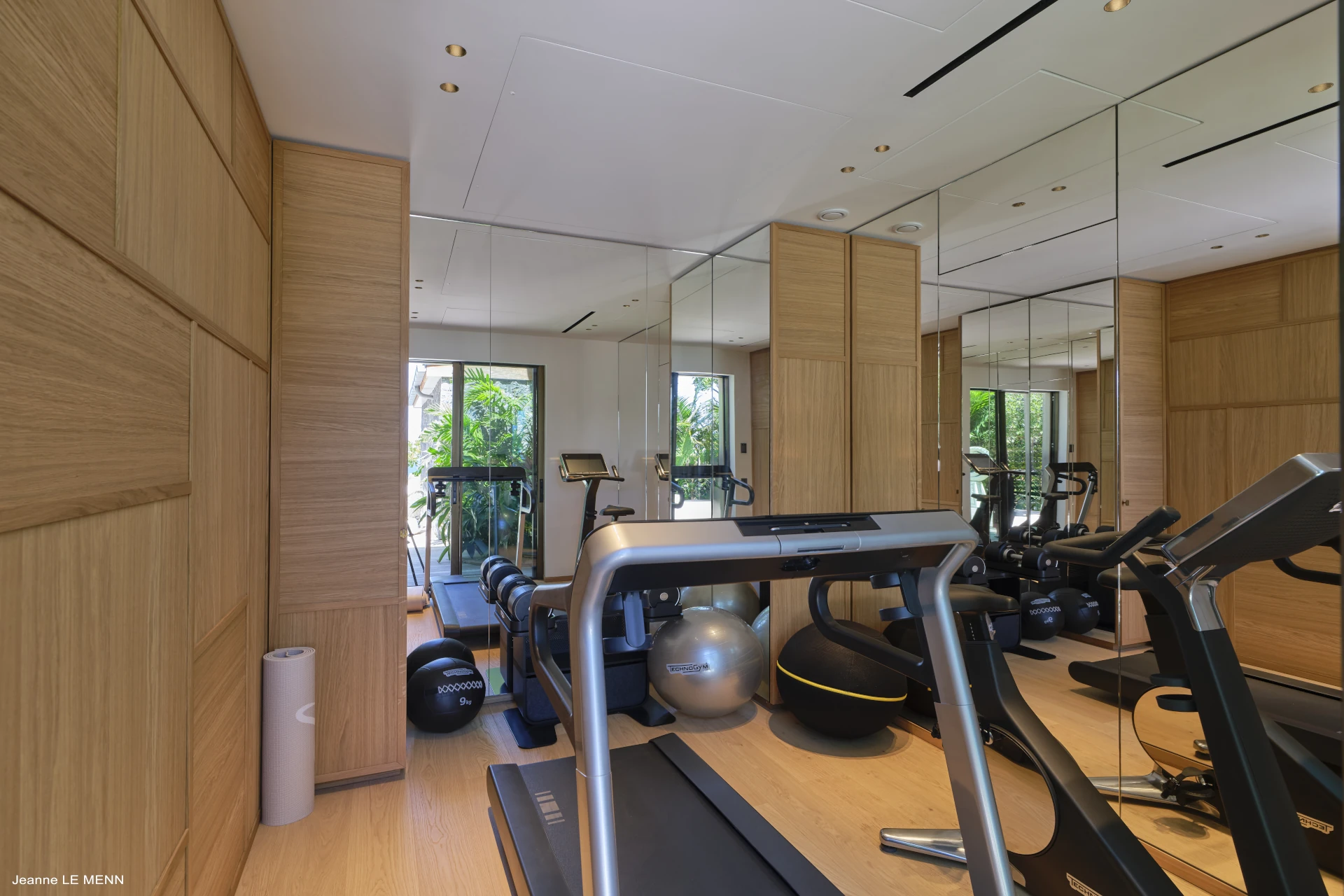 Outdoors, the villa is designed to embrace the Caribbean lifestyle. A spacious wooden deck surrounds the pool, complemented by inviting daybeds for relaxation and a gazebo perfect for alfresco lunches or dinners under the stars. A dedicated yoga or Pilates area enhances the wellness experience, along with a fully-equipped, air-conditioned gym.