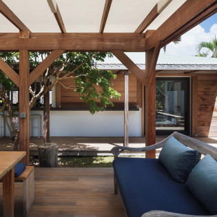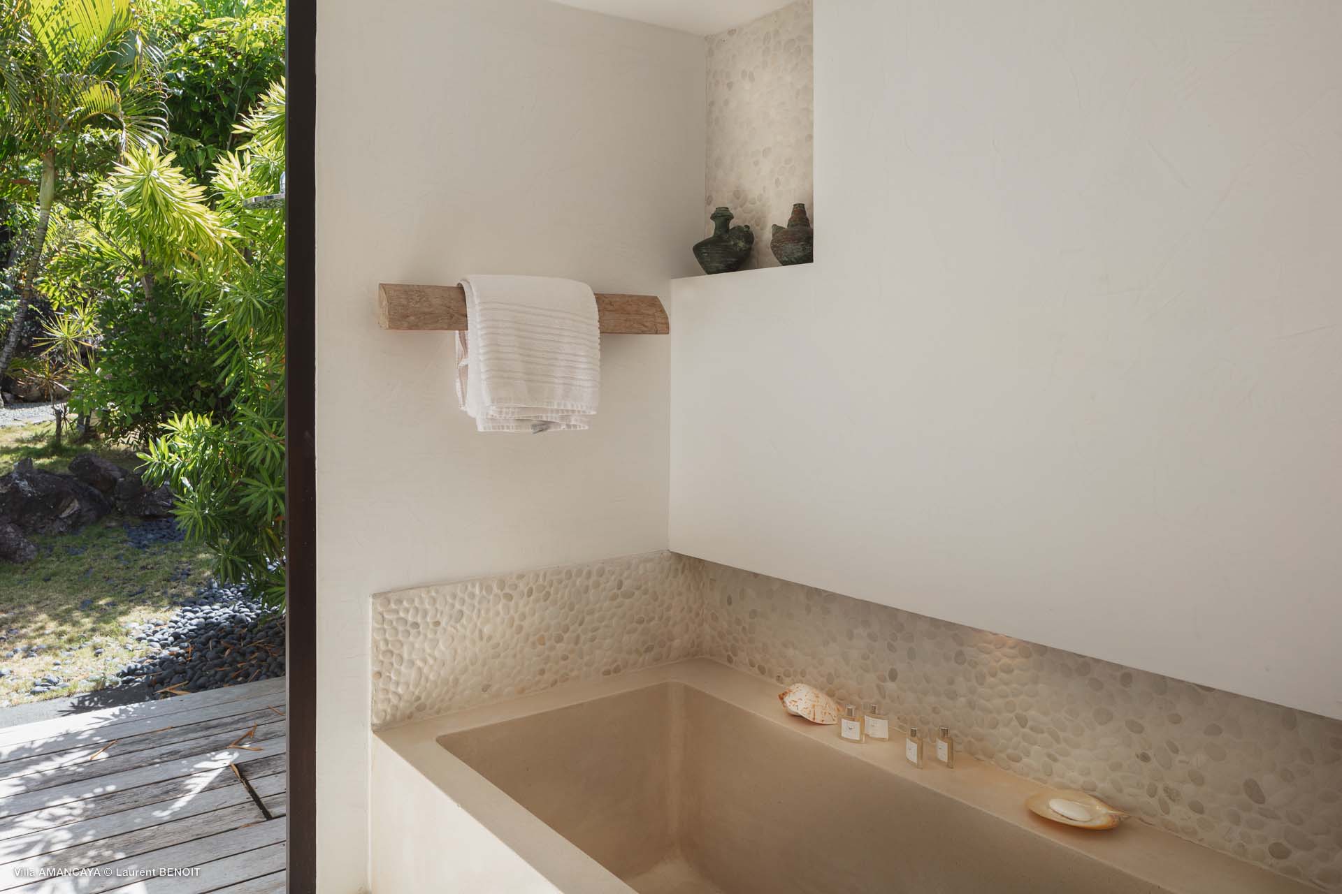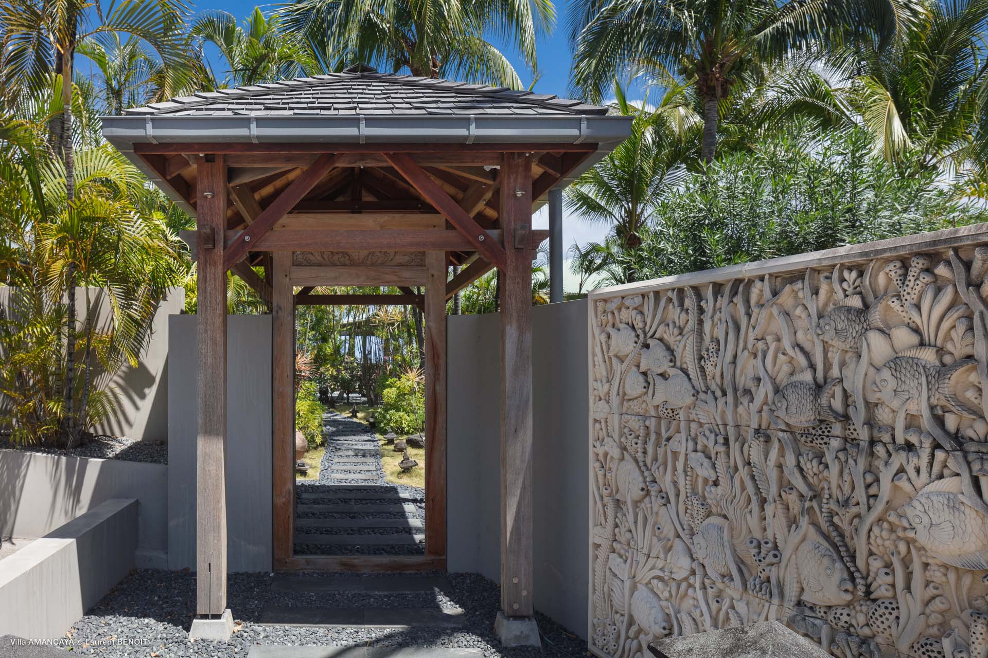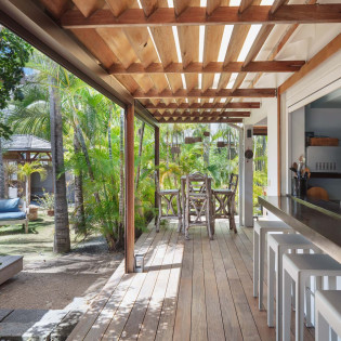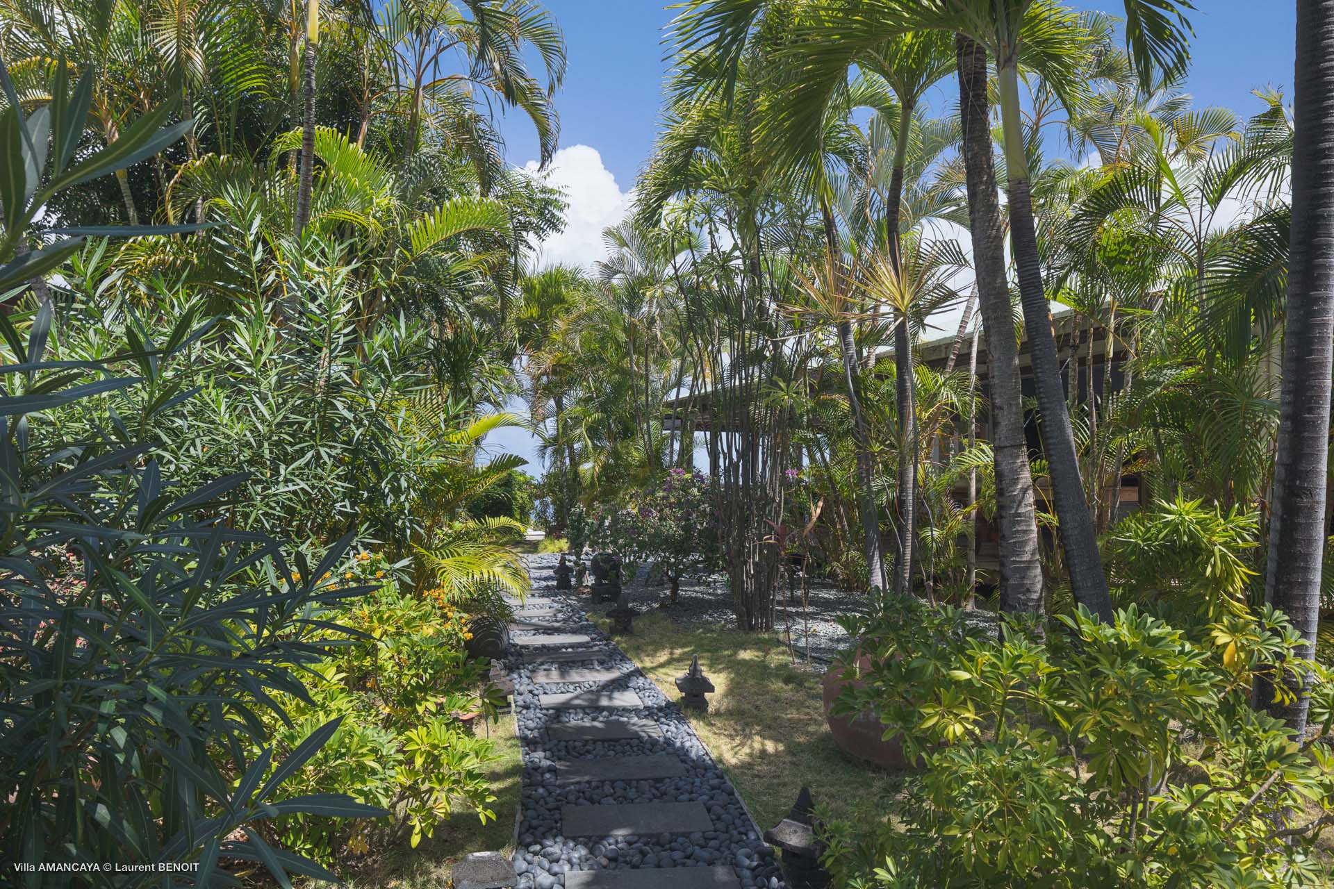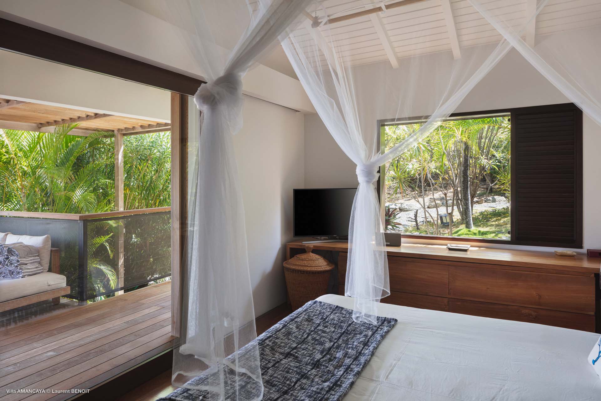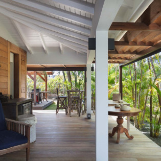 The outdoor spaces at Villa Amancaya are a highlight of this property. There’s a carefree and idyllic feel to the terraces, made from gorgeous natural wood and bordered by lush palms and tropical plants.
