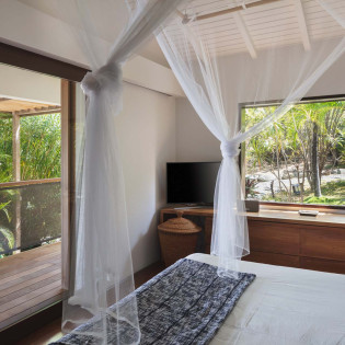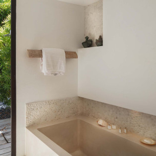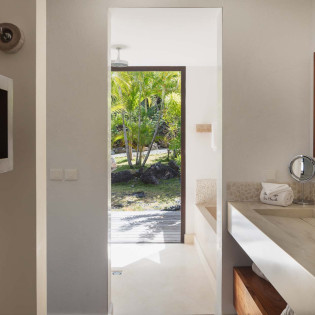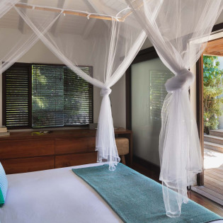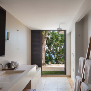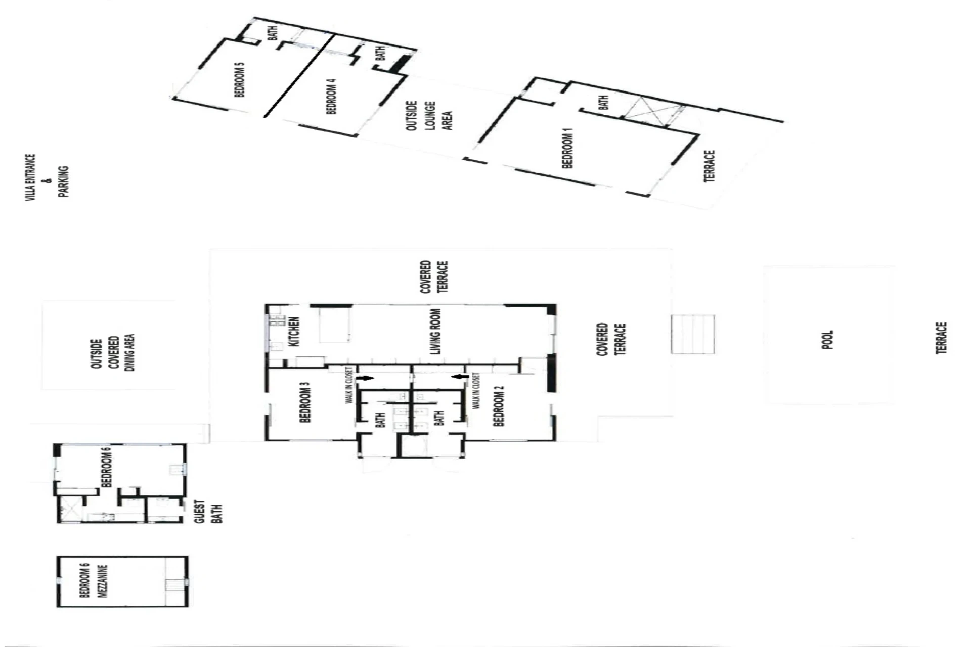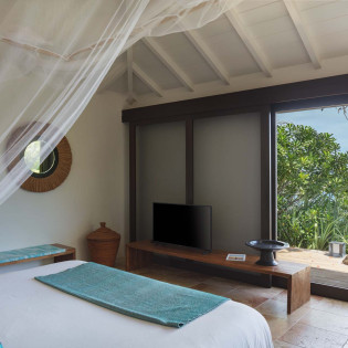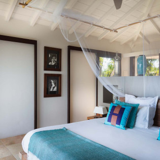 In the main building, there are two bedrooms, each with a king-sized bed and ensuite bathroom with shower. One faces the pool, while the other opens to the villa’s garden. There are three additional bedrooms located in separate bungalows. The master bedroom features a king-sized bed, an ensuite bathroom, and a private terrace with ocean views. An outside lounge area separates the master from another bungalow, which contains two bedrooms, each with a king-sized bed, an ensuite bathroom, and a calming garden view.The 6th bedroom is located at the rear of the garden in another guest cottage, featuring a king or 2 twin beds and an ensuite bathroom.