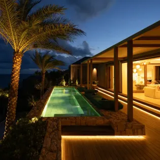Thoughtfully designed to harmonize with its natural surroundings, the villa pairs authentic materials like stone and wood with refined, contemporary architecture. Each space has been carefully crafted to create a soothing, elegant atmosphere where luxury and tranquility blend effortlessly.