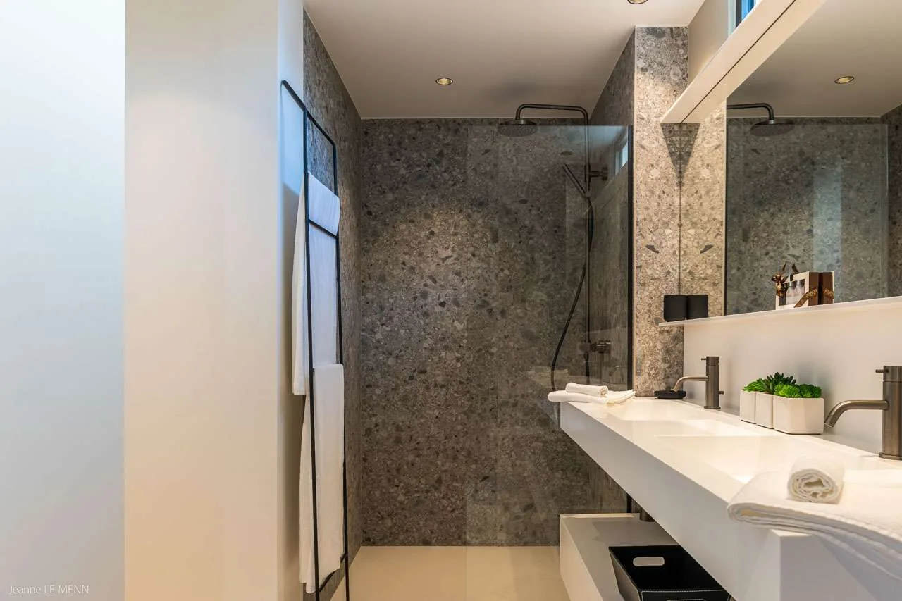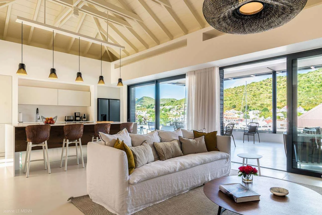 Apartment Prestige, (villa code: WV PTG) is a luxurious, 3-bedroom apartment in a new building, offering gorgeous views of the Gustavia harbor.