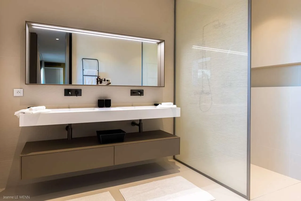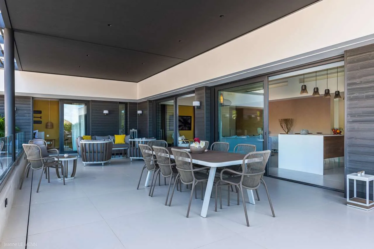 Apartment Prestige is on the second level of the new, two-level, Mardix apartment complex on the southwest side of the harbor. The building also has a large, private, and secured, underground garage with ample parking and an elevator. The large terrace of Apartment Prestige offers excellent and lively views over the entrance to the harbor and streets of Gustavia.
